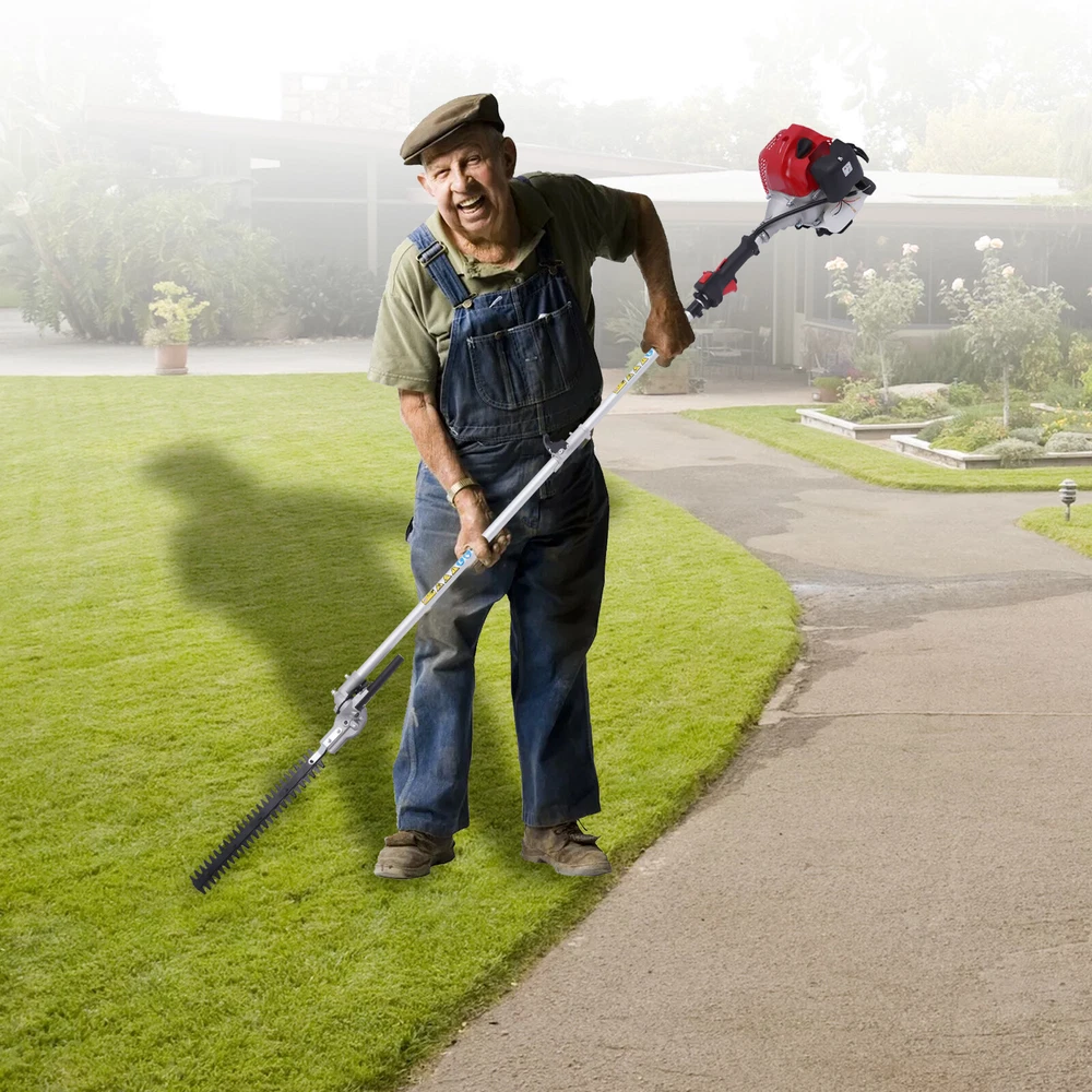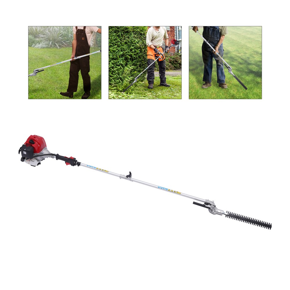 Package Included 1* 2-stroke Motor 1* Rod 1* Extension Rod 1* High Pruning Shear 1* High Branch Saw 1* Working Rod 1* Guide Plate 1* Guide Plate Guard 1* Round Blade 1* 3-tooth Blade 1* English Manual Other Accessories for Assembly 51.7CC Gas Powered Pole Saw Brush Cutter Gas Hedge Trimmer For Tree Weed Garden 51.7CC Gas Power Straight Shaft String Grass Trimmer, Weed Eater Brush Cutter Description If you have a garden maintenance plan and need a handy and effective tool to keep your garden in tip-top shape, this product is your best choice. The 2-stroke lawn mower is made of high-quality plastic and aluminum. The motor has a high power of 1.4kw and a speed of 6500rpm to achieve efficient working, which can save you a lot of time and energy. Package Included 1* 2-stroke Motor 1* Rod 1* Extension Rod 1* High Pruning Shear 1* High Branch Saw 1* Working Rod 1* Guide Plate 1* Guide Plate Guard 1* Round Blade 1* 3-tooth Blade 1* English Manual Other Accessories for Assembly Key Features High-quality Materials: This product is made of high-quality plastic and aluminum, which is strong, durable, and not easy to deform. High Efficiency: The 2-stroke motor has a high power of 1.4kw and a speed of 6500rpm to achieve efficient working, which can save you a lot of time and energy. 4-in-1 Function: Thanks to the quick fasteners, this product can be easily converted from lawn edge cutter to brush cutter, hedge trimmer, or chainsaw to meet your different needs and can be stowed away to save space. Extension Function: The extension bar can extend the product to a fabulous height to help you trim high branches and grass in the distance. Large Cutting Width: It has a durable metal blade with a maximum cutting width of 25cm/9.84inch, which can meet your daily cutting needs. Easy to Clean: Its surface is smooth and each part of this product is detachable, making it easy to clean. Large Fuel Tank Capacity: The capacity of the fuel tank is 1.2L/0.3gal, which is large enough for you to use and can avoid adding oil and petrol frequently. Complete Kit: This product includes several different working rods and complete working accessories, which can meet your different use needs as well as be more convenient and safe to use. Details Heat Dissipation Holes: There are heat dissipation holes on the top of the product, which can dissipate heat in time and prolong the service life of this product. Brush Cutter: The practical brush cutter is ideal for the precise cutting of hard-to-reach grass surfaces, where the use of a lawn mower is no longer or only partially suitable. Grass edges on walls, stairs, or fences are no longer obstacles and can be easily processed. Handle: This item has an ergonomic handle to facilitate your grip, which is very labor-saving and a very thoughtful design. Application It is suitable for cutting and sawing lawn edges, lawns, weeds, high hedges, and thick branches in gardens, parks, yards, etc. Specification Model: CG520 Color: Red, White, Black Material: Plastic, Aluminum Type: 2-Stroke Style: Modern Power: 1.4kw Speed: 6500rpm Displacement: 51.7cc Oil Petrol Mixing Ratio: 1: 25 Fuel Tank Capacity: 1.2L/0.3gal Net Weight: 16.5kg/36.38lbs Gross Weight: 17.5kg/38.58lbs Package Size: 99.5*31.5*21.5cm/39*12*8inch Product Length with Rod: 2.27m/7.44ft Extension Rod Length: 83cm/32.67inch High Branch Saw Length: 83cm/32.67inch Working Rod Length: 83cm/32.67inch Round Blade Diameter(Max Cutting Width): 25cm/9.84inch Guide Plate Length: 34cm/13.38inch Motor Size: 20*30*30cm/7.87*11.81*11.81inch Notes Please read the manual completely before installation and use, and pay particular attention to the safety instructions included. Please allow the slight color difference caused by the shooting light and 1-3cm error due to manual measurement, and make sure you do not mind before ordering. Payment Delivery details Terms of sales About us Contact us Payment We accept ebay payment 。 Fees such as import duties, taxes are not included in the item price or shipping costs. These charges are the buyer's responsibility. Delivery details Shipping: 2-9 working days to: USA Terms of sales We maintain high standards of excellence and strive for hundred percent customer satisfaction. Feedback is very important to us. We hope that you contact us immediately before you give neutral or negative feedback, so that we can address your concerns. It is impossible to address issues if we do not know about them! About us Your satis faction is our ultimate goal. We work hard to earn your trust and future business. Our certified technicians have tested each item before shipping. The unit comes with 1 year limited warranty on all manufacturing defects. a) If you receive a defective item, you may return it or ask for a discount. Please contact us within 14 days after you receive the package. b) What you returned must be intact and in its original packaging as re? u. Customer is responsible for shipping costs of the returned item. c) We will cover the cost of shipping back t with the shipping rate indicated in the registration page. We will send you a new unit or refund the full payment you paid. Thank you. Contact us Business Hour Business Hour: Monday To Friday: 8:30 AM to 5:00 PM (Beijing China time) Due to time zones, our reply to your questions may not be immediately. But within above working time, we will reply your email within 24 hours. If it's non-workdays, please kindly be patient and wait till Monday. Please contact us with ebay message. Please feel free to contact us if you have any questions. Monday To Friday: 8:30 AM to 5:00 PM (Beijing China time) Due to time zones, our reply to your questions may not be immediately. But within above working time, we will reply your email within 24 hours. If it's non-workdays, please kindly be patient and wait till Monday. Please contact us with ebay message. Please feel free to contact us if you have any questions. 2Feature※ High Performance, High Safety, Good Stability * Feature