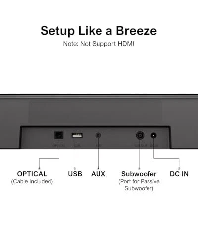 Item Weight: 4.3 Kilograms Is Electric: Yes Model Name: Aura A30 Item Length: 1 Connectivity Protocol: Bluetooth Wireless Technology: Bluetooth 5.3, App Control Connectivity: Does Not Apply Material Type: Plastic Audio Driver Type: Dynamic Driver Compatible Devices: Television Item Dimensions D x W x H: 15.75"D x 3.54"W x 2.76"H Additional Features: Does Not Apply EAN: Does Not Apply Model: Does Not Apply Speaker Maximum Output Power: 250 Watts Item Height: 1 Manufacturer: Does Not Apply Subwoofer Connectivity Technology: Wired gtin13: Does Not Apply Audio Output Mode: Surround Included Components: 8 x Wall Mount Kit, 4 x Wall Bracket, 4 x Mounting Screw on Speak Connectivity Technology: Bluetooth 5.3, Optical, AUX, USB, (not support HDMI) Model Number: U2501 Bluetooth Range: 15 Meters Control Method: App, Remote Color: Black Is Waterproof: FALSE Item Width: 1 Number of Audio Channels: 5.1 MP3 player: No Package Type: Flat Free Package (FFP) Power Source: Corded Electric Type: Does Not Apply Specific Uses For Product: Televisions or smart TVs Warranty Type: Limited Water Resistance Level: Not Water Resistant Speaker Type: Surround Sound Brand: Does Not Apply Number Of Circuits: 5 Number of Items: 1 Controller Type: App, Remote Control UPC: Does Not Apply Mounting Type: Tabletop Mount, Wall Mount MPN: Does Not Apply Recommended Uses For Product: For Televisions