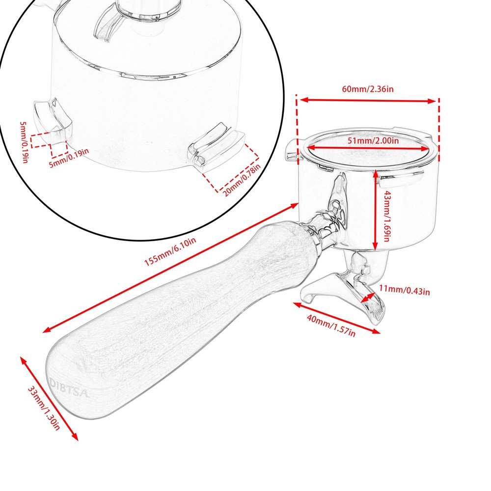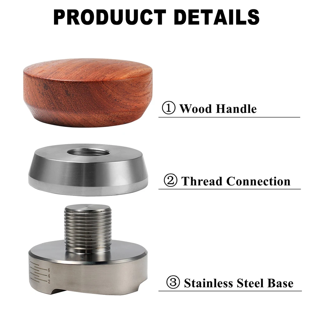 51mm Distributor Portafilter Set For Delonghi Dedica EC680 EC685 SMEG ECF01 51mm Coffee Portafilter --51mm 3 EARS DESIGN PORTAFILTER: It is compatible with Delonghi Dedica Style Series EC680 and EC685, SMEG ECF01. But NOT fit for EC9335, EC966,EC9115. --PORTAFILTER WITH SPLIT SPOUTS: This coffee portafilter is design with double spouts, which allows you to make two espresso cups at the same time without coffee residue. Perfect for use at cafe or home which with many members, can improve the efficiency of coffee making --304 STAINLESS STEEL PORTAFILTER BASKET: This 51mm portafilter filter basket is made of food-grade 304 stainless steel, its exceptional resistance to oxidation, corrosion, and rust, which ensures that your coffee stays free from any unwanted impurities. The filter basket and wood handle of this portafilter can be disassemble, convenience to clean. Coffee Distributor --51mm Coffee Distributor : The coffee distributor is fit for any portafilter filter baskets of 51mm diameter. It’s use for distributing fresh coffee powder before tamping , fully even distribute the coffee powder for a richer and more flavorful coffee brew. --Depth Adjustable Distributor : Height is easily adjustable by it's screw mechanism ( NO tool required ) to suit different doses , After Loosening the anti-slip ring of the distribution tool and adjusting its height, fix back the ring for tightening. --4-leaf 304 Stainless Steel Base : The base of the coffee powder leveler designed with 4-Leaf distributes the coffee consistently and evenly by spinning around in circular motion. This ensures that microchannels are reduced and flat and consistent compaction is formed. Specification: Material: Wood & Stainless Steel Color: As pictures shown Base diameter: 51mm Package: 1*Coffee Portafilter+Tamper