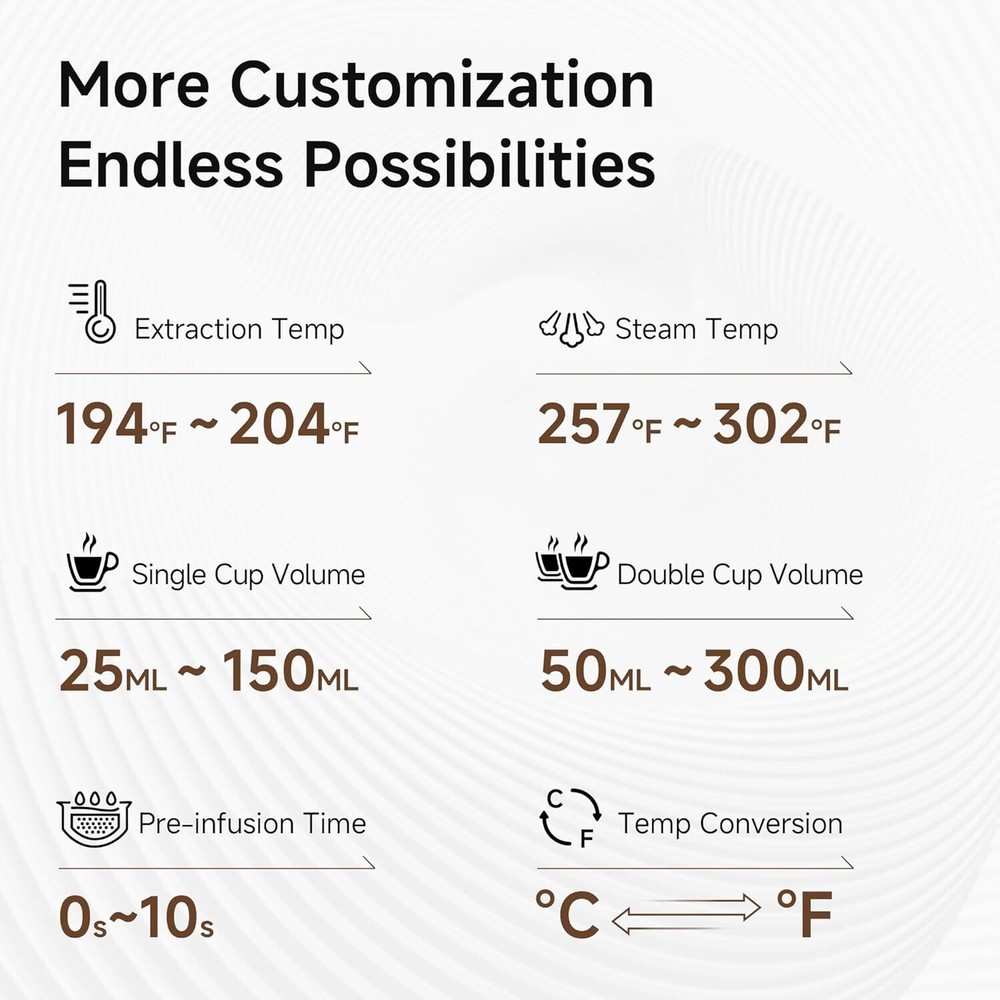 Absolutely love how this machine elevates my morning routine! The programmable settings make it so easy to get that perfect shot every time, and the smart display is super intuitive. The build quality feels premium and it's a breeze to keep clean. Best home barista investment ever!