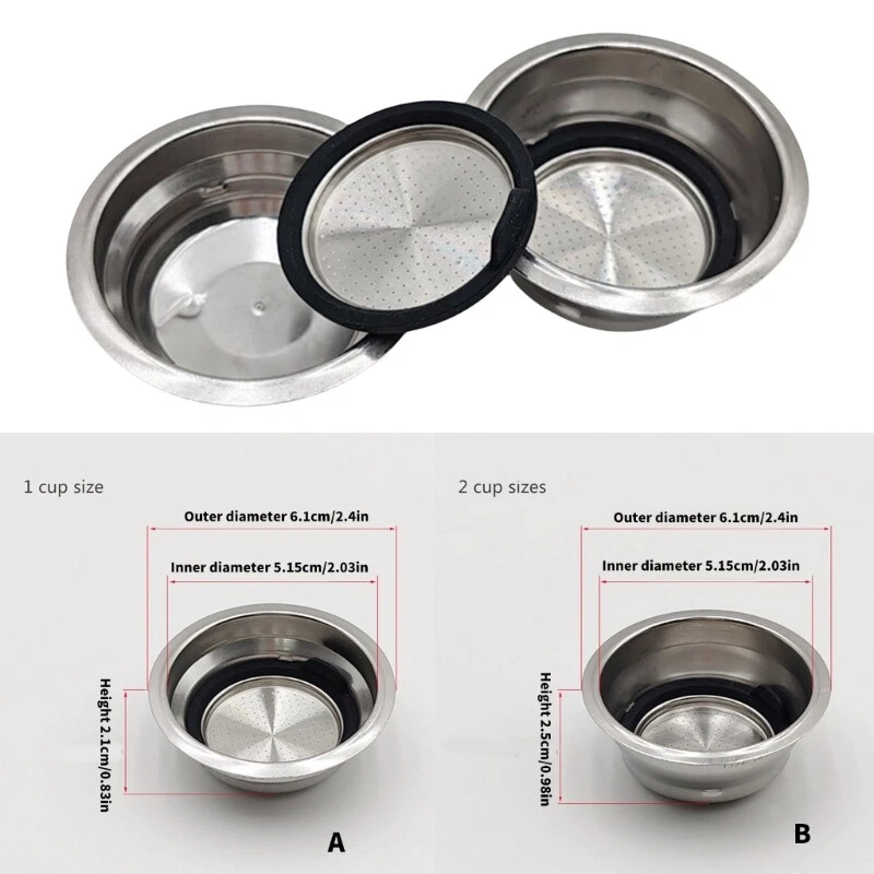 Features: the purest taste of coffee with our 51mm stainless steel coffee filter basket, designed to effectively sift out coffee grounds for a brew. Our detachable powder cup feature simplifies and makes coffee powder replacement a while the universal 51mm diameter ensures compatibility with various espresso machines. Suitable for coffee enthusiasts, home baristas, and owners who appreciate the art of crafting the cup of coffee. for use in any setting, from your kitchen to the offices break room, or even a busy coffee shop, this filter basket is multifuntional for all your coffee making moment. Elevates your espresso game with this precisions crafted accessory that promises consistency and in every shot pulled. Specifications: Texture: Stainless Steel Outer Diameter: Approx. 2.4inch(6.1cm) Inner Diameter: Approx. 2.03inch(5.15cm) A Height: Approx. 0.83inch(2.1cm) B Height: Appprox. 0.98inch(2.5cm) Package Includes: 1x Coffee Filter Portafilter Basket note: Please allow 1-2cm errors due to manual measurement. Due to the differences between different monitors, the picture may not reflect the actual color from the item.