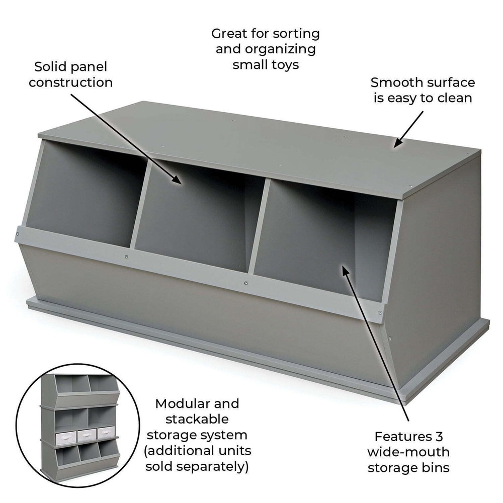 5.2 Cu Ft Kids Wooden 3-Bin Stackable Storage Cubby Organizer for Home