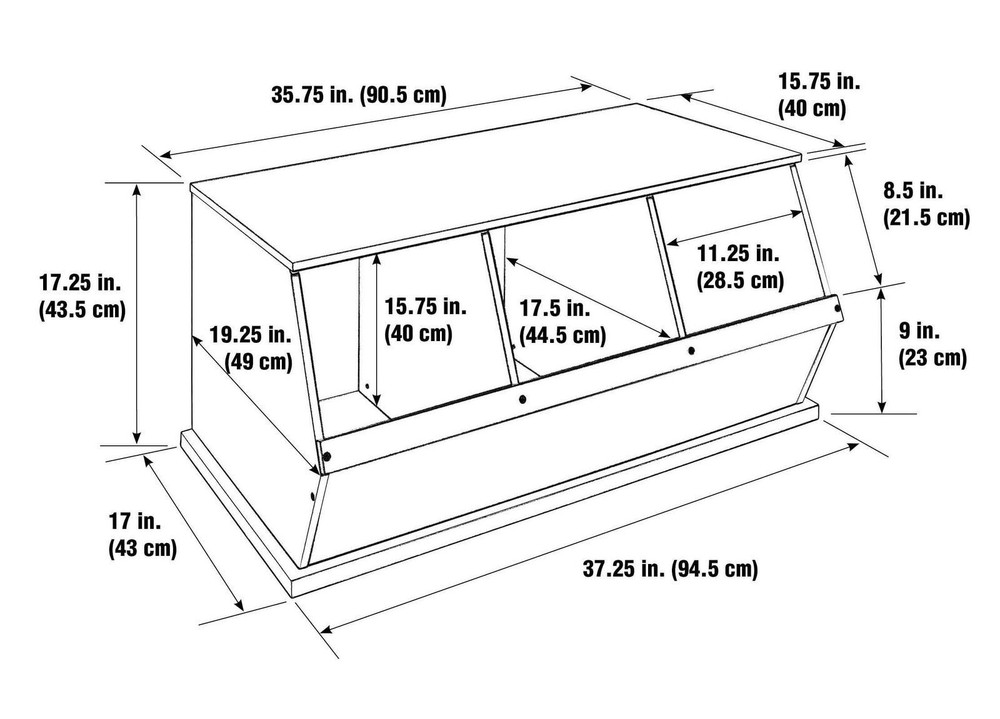 You may also like Set of 6 Jute Storage Baskets Durable Resin Organizer W/ Handles Home Decor New 27.81 USD 29.27 USD Free shipping 5% off Multi-Drawer Storage Cart Rolling Trolley Lockable 12 Compartment Organizer Unit 84.8 USD 89.26 USD Free shipping 5% off Extra Large Durable Storage Basket Jute Style Decorative Bin W/ Handles New 16.73 USD 17.61 USD Free shipping 5% off Large Plastic Storage Bin Stackable Nesting Garage Organizer Durable Handles New 20.3 USD 21.37 USD Free shipping 5% off 3 Pack Clear Plastic Open Front Organizer Bin Stackable Storage Closet Bedroom 40.21 USD 42.33 USD Free shipping 5% off Medium Stacking Baskets Plastic Storage Bin Organizer Space Saver Home Office US 8.01 USD 8.43 USD Free shipping 5% off Large Natural Maize Decorative Storage Basket W/ Jute Handles Home Organization 20.46 USD 21.54 USD Free shipping 5% off Woven Strap Storage Tote Basket Durable Organizer W/ Liner Portable Handles New 29.39 USD 30.94 USD Free shipping 5% off Kids Sliding Bin Organizer W/ 4 Storage Bins Toy Organizer Easy Cleanup New 78.26 USD 82.38 USD Free shipping 5% off Extra Large Woven Storage Basket Round Polyester Metal Frame Home Organizer New 47.42 USD 49.92 USD Free shipping 5% off 4-Piece Storage Basket Set Durable Plastic Organizing Bins Ideal Home Use 15.89 USD 16.73 USD Free shipping 5% off 3 Pack Space Saving Ice Cube Storage Bin BPA Free Narrow Design Dishwasher Safe 10.66 USD 11.22 USD Free shipping 5% off Badger Basket's Three Bin Stackable Storage Cubby is a sturdy, modular storage solution great for sorting and organizing toys, crafts, and more. Stack with additional bins to expand your storage capacity. Solid panel construction. Three, wide-mouth bins allow you to easily separate and categorize your stuff. Assembles with a screwdriver. Wipe clean. Overall size 37.25 inches L x 19.25 inches W x 17.125 inches H. Adult assembly required. Three bin stackable toy storage unit Great for organizing and sorting kid's toys and belongings Easy to access large open mouth bins Stack on additional two or three bin Badger Basket Storage Cubbies (each sold separately) Top surface doubles as a shelf for small toys and other treasures Smooth, easy-to-clean surface Solid panel construction helps to keep items in place Overall measurements 37.25 inches L x 19.25 inches W x 17.125 inches H You may also like Extra Long Collapsible Utility Wagon Heavy Duty Folding Cart All Terrain Wheels 141.33 USD 148.77 USD Free shipping 5% off Slim Rolling Utility Storage Cart 3 Tier Organizer Trolley Home Office Kitchen 45.56 USD 47.96 USD Free shipping 5% off Dry Cat Food Adult Cats 7 Plus Chicken Brown Rice 5lb Healthy Nutrition New 25.71 USD 27.06 USD Free shipping 5% off Folding Round Bistro Table Portable Indoor Outdoor Compact Space Saving 2 Adults 27.41 USD 28.85 USD Free shipping 5% off 2 Pack Heavy Duty Metal Folding Tank Top Hanger Closet Organizer Space Saver New 20.39 USD 21.46 USD Free shipping 5% off 4-Piece Ergonomic Memory Foam Travel Neck Pillow Eye Mask Earplugs Set New 27.76 USD 29.22 USD Free shipping 5% off Mid-Century Modern Accent Chair Wooden Frame Soft Fabric Foam Living Room New 93.26 USD 98.17 USD Free shipping 5% off 32-Piece Square Dinnerware Set Stoneware Microwave Safe Plates Bowls Mugs New 152.43 USD 160.45 USD Free shipping 5% off Hand-held Digital Rechargeable EMF Meter Radiation Detector Home Office Testing 58.88 USD 61.98 USD Free shipping 5% off 44pc Precision Screwdriver Bit Set Slotted Phillips Hex Star Y Type Durable Case 12.4 USD 13.05 USD Free shipping 5% off 27Qt Cast Aluminum Caldero Cooking Pot Kitchen Essential Rice Beans Stews New 83.51 USD 87.9 USD Free shipping 5% off Ceramic Knife Set 6-Piece Ergonomic Lightweight Ultra Sharp Kitchen Knives New 28.13 USD 29.61 USD Free shipping 5% off