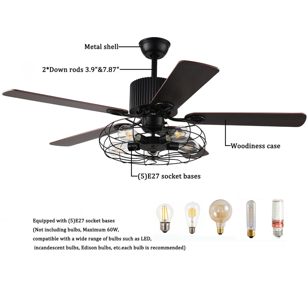 52'' Farmhouse Ceiling Fan Lamp Industrial Rustic Cage Metal LED Light W/ Remote 52'' Farmhouse Ceiling Fan Lamp Industrial Rustic Cage Metal LED Light W/ Remote Product description Specification: Name: Ceiling Fans with Lights Type: Retro Industrial Size: 52 Inch Material: Metal Cage Blade Material: wood leaves Light Kit: E27 light bulbs *5 (not included) Motor:153 high-quiet motor, 110V Control Method:remote control (included) Downrod Length: 2 downrod of3.93 and 7.87inch (included) Wind Speed: 3 (high, medium, low), Maximum Wind 5203CFM Applicable Place: living room/ bedroom /office and restaurant Installation Instruction: ①For your safety, Please turn off the power before installation ② Please check parts against the packing list to see if the accessories are available. ③We provide install instructions for you. please referred to install manual or have a professional electrician. If need any help, please contact us. What you get: Retractable ceiling fan x 1 Screws sets x 1 Down rods x 2 (10CM & 20CM) Remote control x 1 Instruction Manual x 1 Modern Fan Light Chandelier: 52 inches when the fan is extended, Includes two lower bars, one for 3.9 inches and the other for 7.8 inches, you can choose one to install 【Ceiling Fan Light Source Type】Need 5 * E27 Screw (Edison bulb / LED / CFL / Incandescent),Recommended 20-60W,without light bulb. 【3 Speed Remote 】The ceiling fan provides 3 fan speeds (high/medium/low) ;operate fan speed and lights by remote control with timing function. 【Reversible Blade 】5 Reversible Wood Blade,Cooling down air temperature in summer and Help air flow in winter 【Quiet, Durable Motor】Motor made from copper delivers powerful air movement and quiet performance,with heat sink hole,it can reduce the internal temperature of the host,extend the life of motor Modern Fan Light Chandelier: 52 inches when the fan is extended, Includes two lower bars, one for 3.9 inches and the other for 7.8 inches, you can choose one to install Welcome to chengdukangten-4 Thank you for your support! If you have any questions, please feel free to contact us!!! Payment Delivery details Terms of sales About us Contact us Payment We accept ebay payment 。 Fees such as import duties, taxes are not included in the item price or shipping costs. These charges are the buyer's responsibility. Delivery details Shipping: 2-9 working days to: USA Terms of sales We maintain high standards of excellence and strive for hundred percent customer satisfaction. Feedback is very important to us. We hope that you contact us immediately before you give neutral or negative feedback, so that we can address your concerns. It is impossible to address issues if we do not know about them! About us Your satis faction is our ultimate goal. We work hard to earn your trust and future business. Our certified technicians have tested each item before shipping. The unit comes with 1 year limited warranty on all manufacturing defects. a) If you receive a defective item, you may return it or ask for a discount. Please contact us within 14 days after you receive the package. b) What you returned must be intact and in its original packaging as re? u. Customer is responsible for shipping costs of the returned item. c) We will cover the cost of shipping back t with the shipping rate indicated in the registration page. We will send you a new unit or refund the full payment you paid. Thank you. Contact us Business Hour Business Hour: Monday To Friday: 8:30 AM to 5:00 PM (Beijing China time) Due to time zones, our reply to your questions may not be immediately. But within above working time, we will reply your email within 24 hours. If it's non-workdays, please kindly be patient and wait till Monday. Please contact us with ebay message. Please feel free to contact us if you have any questions. Monday To Friday: 8:30 AM to 5:00 PM (Beijing China time) Due to time zones, our reply to your questions may not be immediately. But within above working time, we will reply your email within 24 hours. If it's non-workdays, please kindly be patient and wait till Monday. Please contact us with ebay message. Please feel free to contact us if you have any questions. Feature 1 Compact Design,Unique Appearance,high reliability * Feature * Nice and Practical, High Quality Packaging Features: Fast shipping from US Warehouse Feature 3 Nice and Practical Feature 4 High Quality Packaging 🔥Feature🔥 high quality material ★Features★ 🔥Good Stability🔥Reliable Quality🔥High Performance🔥 1.Feature High-quality Service If you have any question, please contact us! Feature * Fast Shipping Country/Region of Manufacture Unknown UPC Does not apply Mounting Ceiling Mounted Type Ceiling Fan Sensor Type Light Power Source Corded Assembly Required Yes LED String/Strip Type / Shipping Note Cannot ship to Puerto Rico & Hawaii Color Brown Item location: CA /NJ /Austell Motor 153 high-quiet motor, 110V Voltage 110V Light Source LED Model Ceiling fan Style Traditional Material Wood ISBN Does not apply Fan Width 52" Diameter 52" (1320mm) IP Rating no Features Remote Control Number of Lights 5 Room Bedroom, Dining Room, Living Room Brand Unbranded Number of Blades 5 On Nov 19, 2024 at 22:56:05 PST, seller added the following information: