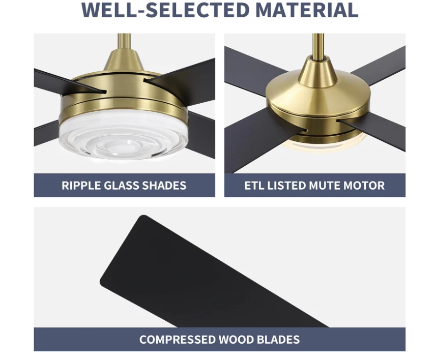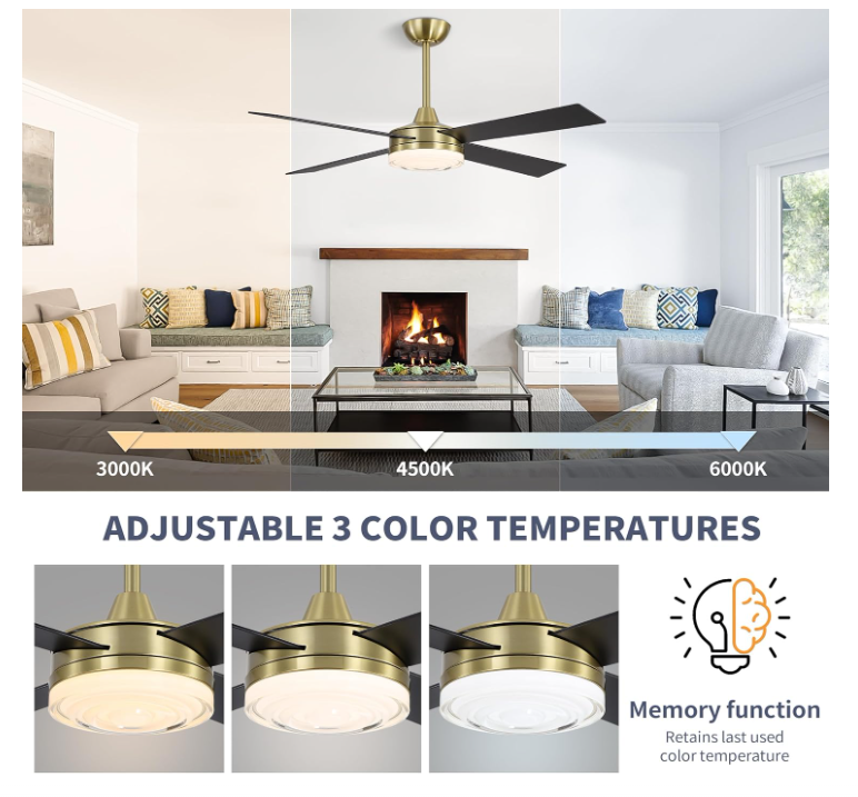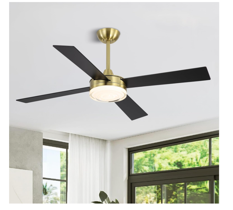 $ 52.844" Ultra Quiet Flush Mount Ceiling Fan with Remote, 6-Speed, Brass Finish