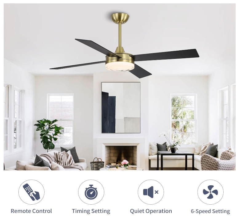 Ceiling Fan with LED Light and Remote – 3 Blades, 6 Speeds, Timer