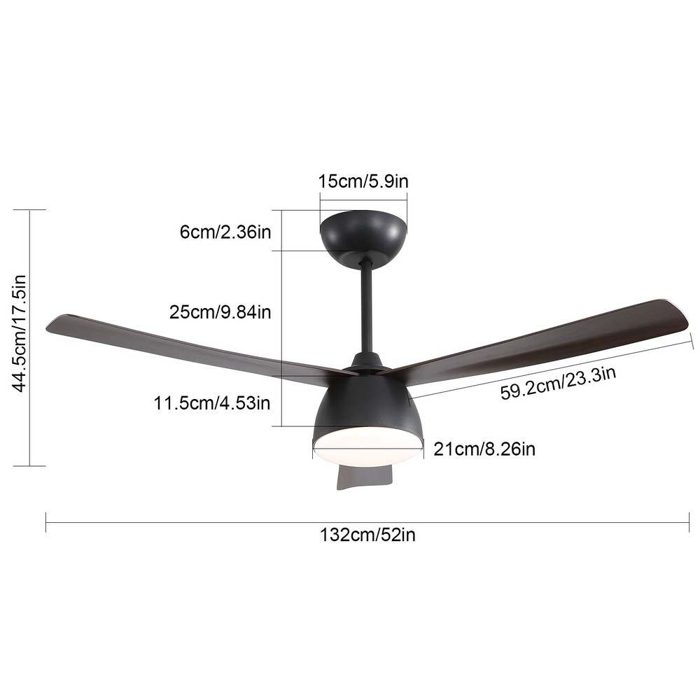 52" LED Ceiling Fan Light w/ Remote Control 6 Speeds Settings Timing Option ♥♥ Welcome to our store ♥♥ Ceiling Fans: Outdoor patio ceiling fans consist of 3 antique blades - matte finish and aged walnut finish with a moisture resistance rating, they can be hung indoors or in covered outdoor spaces such as patios, farmhouses, bedrooms, Living room, industry, porch, garage, etc. As well as hanging on standard down rod brackets or for sloping ceilings up to 15 degrees. Adjustable LED Lights: 52 inch ceiling fan with lights, 2 2 watt LED lights,Press the light controlbutton on the remote control continuously to change the color temperature from cool white (6000K) to warm white (3000K) to natural light (4500K). Multifunctional Remote Control: Ceiling fan with remote control, dimmable LED, 6-speed fan speed control, timer function (1/3/6 hours) and light control (on/off). Quiet Reversible Motor: DC ceiling fan, 120V/60HZ, helps to rotate warm air and reduce energy costs. 3835 CFM airflow, 60CFM/W airflow efficiency. Summer/Winter Mode and Smart Compatibility, enjoy super strong airflow without unnecessary noise. ✔ Tropical Outdoor Ceiling Fan: 52" Outdoor Ceiling Fan Lighted Ceiling for Patio with Solid Wood Walnut Blades and Matte Metal Shell, Ceiling Fan is designed for patio, farmhouse, living room, bedroom, kitchen, garden or common area. ✔ Ceiling Fan with Light: 1800 Lumens, 22 W, Three Color Temperature Choices, Warm (3000K) - Warm White (4500K) - White (6000K). Long-lasting bulbs have a longer lifespan than traditional bulbs. ✔ Modern Ceiling Fan with Remote Control: Ceiling Fan with Light and Remote Control You can use the remote control buttons to change the running direction of the fan, light, 6-speed wind speed adjustment, and timing remote control (1/3/6H). ✔ Reversible Quiet Motor: DC powered outdoor ceiling fan that cools your room in summer and helps rotate warm air and reduce energy costs in winter by holding down the reversible button. The effective area is about 100~250 square feet. ✔ Easy to Insall: The extension rod (4.8"/9.8") included with the industrial ceiling fan light is suitable for low or high ceilings. And wood ceiling fans can be installed on ceilings with a maximum slope of 13 degrees. Voltage: DC110-120V Light source type: LED Fan has 6 speed settings (Low-Mid-High) Timing options(1/3/6H) Mount Type: Down pole installation , 2 downrod of 4.8 and 9.8inch (included) Applicable Place: living room/ bedroom /office and restaurant Easy to install: surface mounted. Products include English manuals, remote control and installation instructions, with the provided bracket, providing easier installation and Specficationed installation instructions. Installation Instruction ① For your safety, Please turn off the power before installation ② Please check parts against the packing list to see if the accessories are available. ③ We provide install instructions for you. please referred to install manual or have a professional electrician. If need any help, please contact us. What you get: ceiling fan x 1 Screws sets x 1 Down rods x 2 (12CM & 25CM) Remote control x 1 Instruction Manual x 1 ✦ Suggestion: 1. For a safe and secure installation, please ensure that the electrical box to which this fixture will be mounted is properly attached to a structural member of the building. 2. All wires are connected. When unpacking, be careful not to pull with wires as a bad connection may result. 3. Do not connect electricity until your fixture is fully assembled. Dear Customer, Thank you very much for your orders. I'mpleased that you entrusted us as your supplier foryour project and am grateful that you continue toput your faith in our services. I hope our productsmet your expectations. As always, we are happy to support you with anyfuture projects you may undertake. I wish you thebest with your current project and look forward toseeing the outcome. Thank you again, and I lookforward to working with you in the future . Best regards. Payment Delivery details Terms of sales About us Contact us Payment We accept ebay payment 。 Fees such as import duties, taxes are not included in the item price or shipping costs. These charges are the buyer's responsibility. Delivery details Shipping: 2-9 working days to: USA Terms of sales We maintain high standards of excellence and strive for hundred percent customer satisfaction. Feedback is very important to us. We hope that you contact us immediately before you give neutral or negative feedback, so that we can address your concerns. It is impossible to address issues if we do not know about them! About us Your satis faction is our ultimate goal. We work hard to earn your trust and future business. Our certified technicians have tested each item before shipping. The unit comes with 1 year limited warranty on all manufacturing defects. a) If you receive a defective item, you may return it or ask for a discount. Please contact us within 14 days after you receive the package. b) What you returned must be intact and in its original packaging as re? u. Customer is responsible for shipping costs of the returned item. c) We will cover the cost of shipping back t with the shipping rate indicated in the registration page. We will send you a new unit or refund the full payment you paid. Thank you. Contact us Business Hour Business Hour: Monday To Friday: 8:30 AM to 5:00 PM (Beijing China time) Due to time zones, our reply to your questions may not be immediately. But within above working time, we will reply your email within 24 hours. If it's non-workdays, please kindly be patient and wait till Monday. Please contact us with ebay message. Please feel free to contact us if you have any questions. Monday To Friday: 8:30 AM to 5:00 PM (Beijing China time) Due to time zones, our reply to your questions may not be immediately. But within above working time, we will reply your email within 24 hours. If it's non-workdays, please kindly be patie
