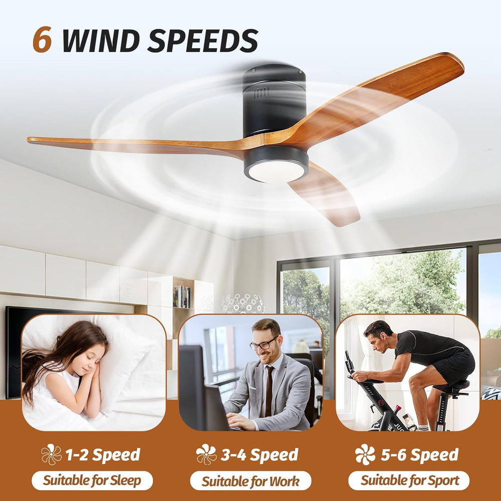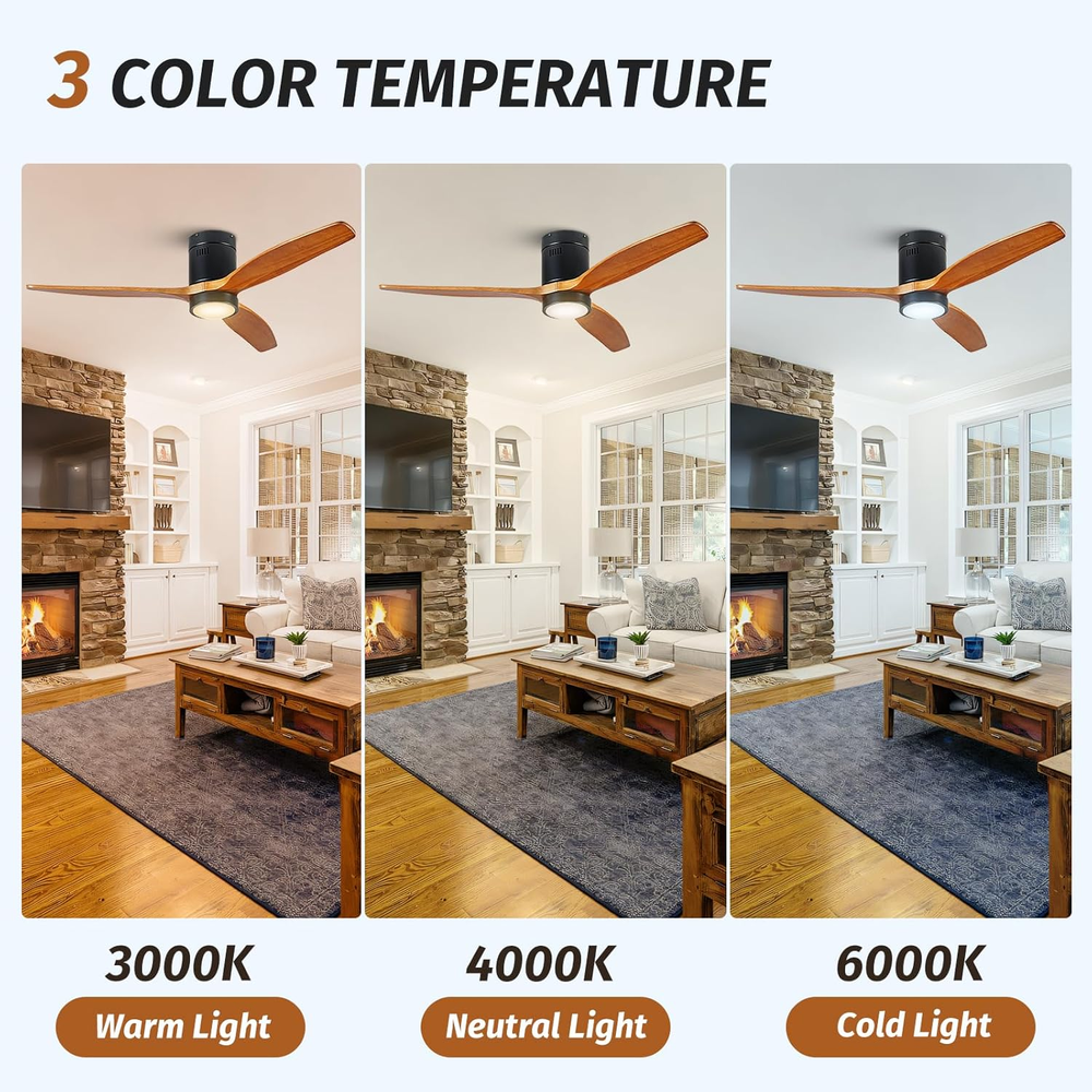 This ceiling fan is a game-changer! The sleek walnut and black design adds a modern rustic touch to any room, while the powerful yet quiet DC motor keeps the air flowing smoothly. Love the remote control with 6 speeds and 8-hour timer—super convenient. The LED light is bright yet warm, perfect for any setting. Ideal for indoor or covered outdoor spaces—highly recommend!