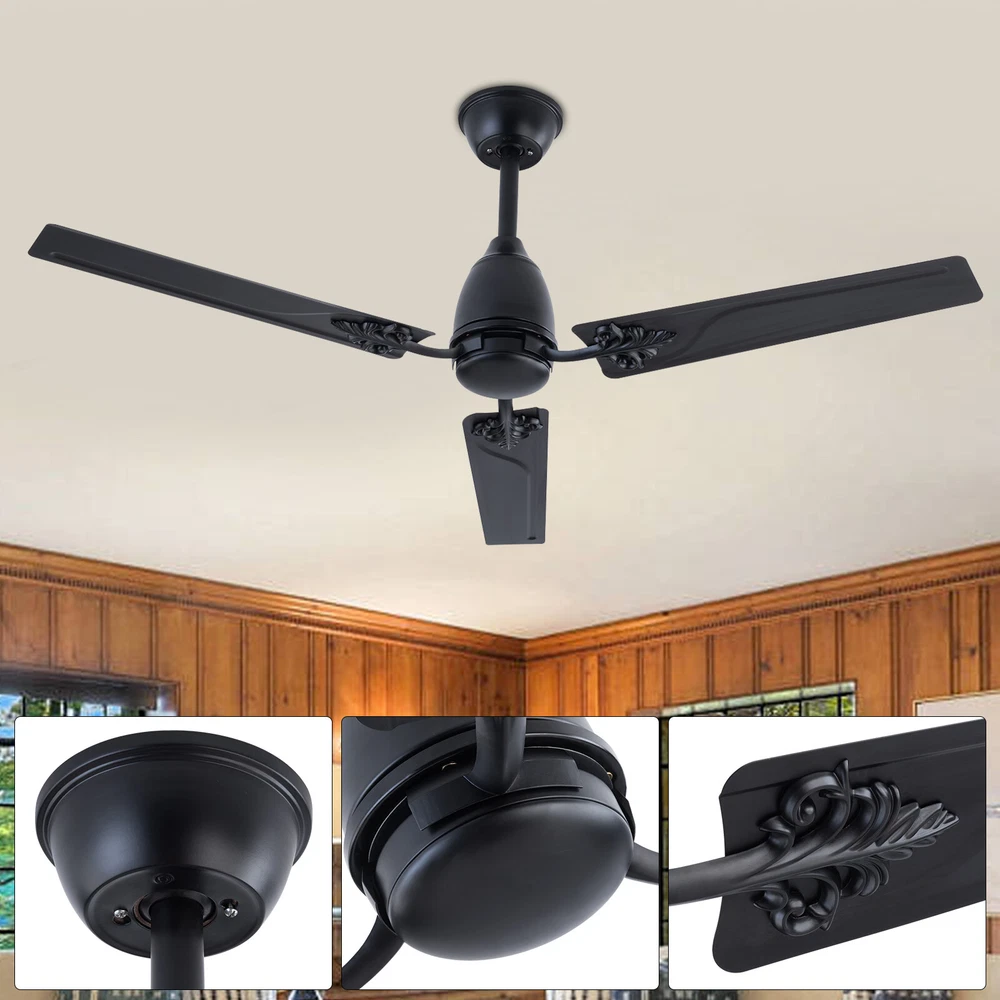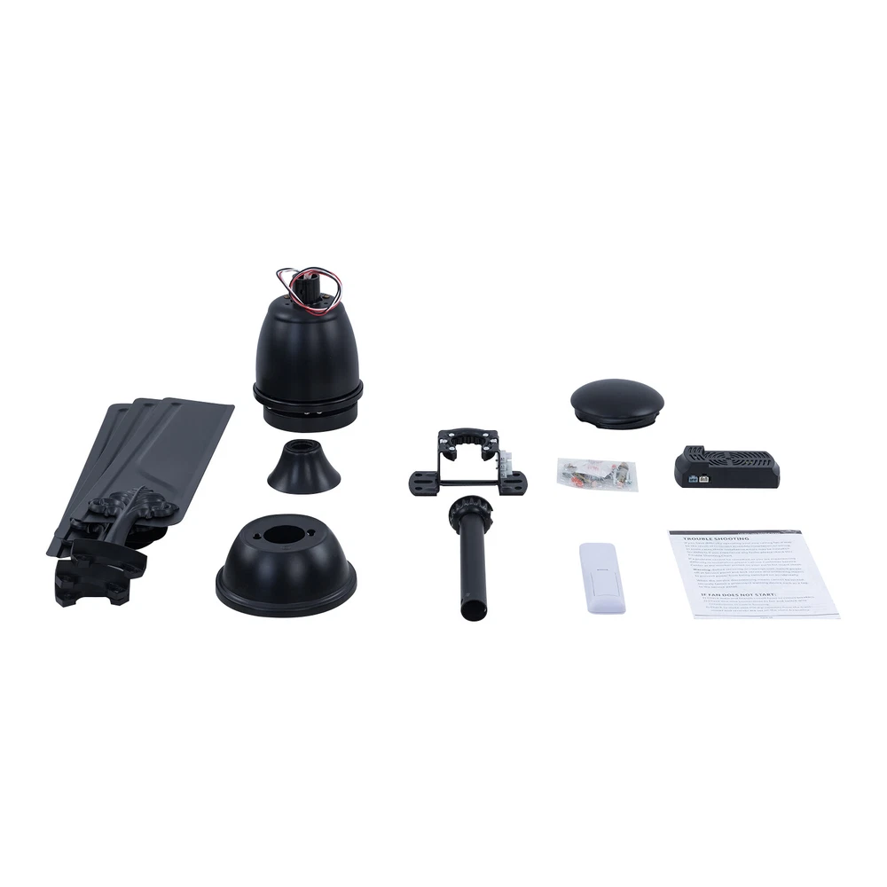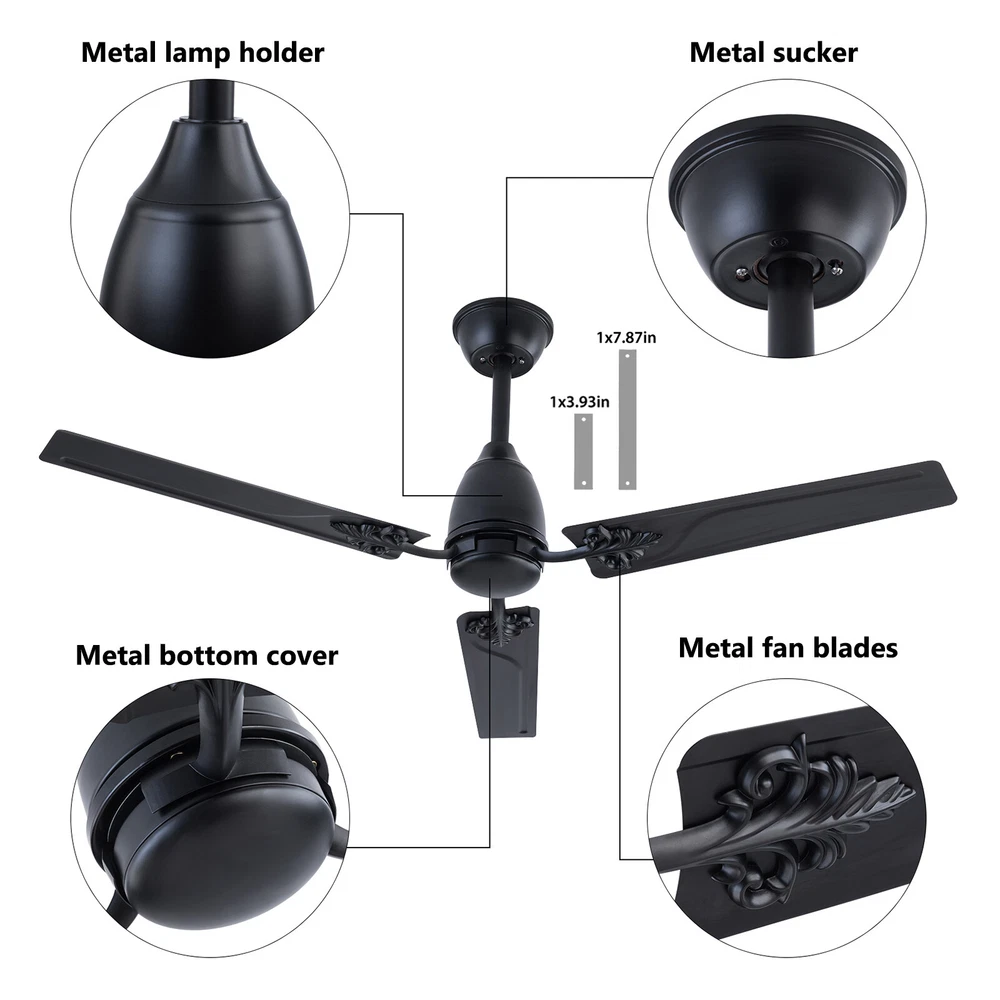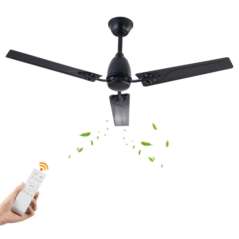 Description When a light breeze meets in your living room or bedroom, every ordinary moment of daily life becomes extraordinary. This ceiling fan ensures strong wind coverage and the wind dances with rotation, adding a flowing artistic beauty to the space. It is not only a choice for home appliances, but also a symbol of your pursuit of quality of life. Let it help you explore new dimensions of elegance, making every strand of wind a warm and artistic presence in your home. Specification Material: Iron Style: Modern Color: Black Control Method: Remote Mounting Type: Ceiling Mount Motor: DC Pure Copper Motor Remote Control Battery: 2*AAA Batteries (Included) Waterproof Level: IP44 Wattage: 22W Air Volume: 7230CFM Time Setting: 1/4/8H Noise Level: <30dB Voltage: 85-265V Ceiling Fan - 52 inch Ceiling Fan with Remote Control for Indoor Patio Bedroom Description When a light breeze meets in your living room or bedroom, every ordinary moment of daily life becomes extraordinary. This ceiling fan ensures strong wind coverage and the wind dances with rotation, adding a flowing artistic beauty to the space. It is not only a choice for home appliances, but also a symbol of your pursuit of quality of life. Let it help you explore new dimensions of elegance, making every strand of wind a warm and artistic presence in your home. Key Features Easy to Install: This ceiling fan is easy to install. You only need to follow the simple steps shown in the instructions and install it patiently. It can be put into use soon. Easy to Clean: Due to its metal material, the surface is smooth and easy to clean. You just need to wipe the stains with a cloth to keep it clean and hyg ienic. Excellent Motor: It adopts a DC pure copper motor with silent bearings ( < 30dB), providing a quiet resting environment. Compared with traditional AC motors, it features stable operation, high efficiency, and energy conservation . Built to Last: Its blade is designed with high-quality iron with an IP44 waterproof level, which is sturdy and durable. It has great anti-corrosion capability guaranteeing a long service life. Easy to Operate: It is equipped with a remote control, which can adjust the fan speed (six gears), and has timing and memory functions, making it easy to operate. Efficient Fanning: Its 3 blades and 52in diameter can generate 7230CFM air volume, allowing airflow to cover larger spaces. It can rotate in a forward/reverse direction, allowing you to enjoy a cool natural breeze or make indoor airflow smooth. You can flexibly adjust it according to seasonal changes to improve indoor comfort. Protective Packaging: We use protective foam to avoid damage to the machine during transportation, maximizing its safe arrival. Satisfaction Guarantee: No matter what problem you encounter or have any questions, please contact us. We will reply and solve the problem for you as soon as possible. Details Blade Pattern: The combination of metal blade and pattern design adds a personalized artistic atmosphere to your home space. Two Downrods: The package includes two sizes of downrods (3.93in/7.87in), allowin g for use on both high and low floors. Application It is suitable for installation in living rooms, bedrooms, kitchens, courtyards, offices, restaurants, shops, factories, barns, and other places . Specification Material: Iron Style: Modern Color: Black Control Method: Remote Mounting Type: Ceiling Mount Motor: DC Pure Copper Motor Remote Control Battery: 2*AAA Batteries (Included) Waterproof Level: IP44 Wattage: 22W Air Volume: 7230CFM Time Setting: 1/4/8H Noise Level: <30dB Voltage: 85-265V Wind Speed: 6 Gears Number of Blades: 3 Fan Diameter: 132cm/52in Blade Length: 60cm/23.62in Short Downrod Length: 10cm/3.93in Long Downrod Length: 20cm/7.87in Suspended Ceiling Diameter: 15cm/5.9in Product Height: 25cm/9.84in (with Short Downrod); 35cm/13.77in (with Long Downrod) Package Included 1* Ceiling Fan 1* Remote Control 1* Short Downrod 1* Long Downrod 1* English Manual Other Accessories for Installation Notes Please note that it can only be installed on the ceiling. If inclined installation is required, the inclination angle cannot exceed 15°. Please allow the slight color difference caused by the shooting light and 1-3cm error due to manual measurement, and make sure you do not mind before ordering. Payment Delivery details Terms of sales About us Contact us Payment We accept ebay payment 。 Fees such as import duties, taxes are not included in the item price or shipping costs. These charges are the buyer's responsibility. Delivery details Shipping: 2-9 working days to: USA Terms of sales We maintain high standards of excellence and strive for hundred percent customer satisfaction. Feedback is very important to us. We hope that you contact us immediately before you give neutral or negative feedback, so that we can address your concerns. It is impossible to address issues if we do not know about them! About us Your satis faction is our ultimate goal. We work hard to earn your trust and future business. Our certified technicians have tested each item before shipping. The unit comes with 1 year limited warranty on all manufacturing defects. a) If you receive a defective item, you may return it or ask for a discount. Please contact us within 14 days after you receive the package. b) What you returned must be intact and in its original packaging as re? u. Customer is responsible for shipping costs of the returned item. c) We will cover the cost of shipping back t with the shipping rate indicated in the registration page. We will send you a new unit or refund the full payment you paid. Thank you. Contact us Business Hour Business Hour: Monday To Friday: 8:30 AM to 5:00 PM (Beijing China time) Due to time zones, our reply to your questions may not be immediately. But within above working time, we will reply your email within 24 hours. If it's non-workdays, please kindly be patient and wait till Monday. Please contact us with ebay message. P