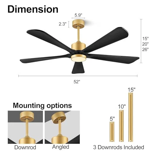 Menu 1. We require immediate payment. 2. We currently accept payment via eBay managed payments only. 3. Once payment is cleared, we will dispatch your shipment within 1-3 business days. Please refer to the "Shipping" tab for more information regarding shipping speed to your destination. Ceiling Fan with Lights, 52 Inch, DC Motor, 6 Speeds, Remote Control, 5 Reversible Solid Wood Blades, Black, Modern Design, Indoor-Outdoor, QF-8727 Product description 5 BLADE MODERN STYLE: This 52 inch outdoor indoor ceiling fan with lights has 5 powerful blades to make your home more comfortable; It offers a sleek, minimalistic design that blends into any modern environment. With shapely, carved wood blades, this large ceiling fan offers an ideal blend of style and function. SOLID WOOD BLADES: This sleek smart ceiling fan has a blade sweep diameter of 60”. Crafted from solid wood that helps ensure highly efficient and quiet air delivery. The wood blades coupled with a minimalist, high-performance DC motor for whisper-quiet and energy-efficient cooling. 6 SPEEDS DUAL-DIRECTION FAN: The powerful ceiling fan with remote operates on 6 forward and reverse speeds (easy to adjust with the included handheld remote). Its quiet, reversible motor allows it to turn your room into an oasis in summer as well as warming you up during winter. LED LIGHT KIT & DC MOTOR: An integrated LED light source is included (3000K/4500K/6000K). Our upgraded low profile ceiling fan with lights features an energy-efficient DC motor for cost efficiency savings and has convenient wall holder for remote storage. Utilising the latest advances in DC motor technology to provide amazing performance coupled with exceptional energy efficiency. MADE FOR ANY SPACE: The 52-inch blade span makes this 5 blade ceiling fan perfect for spaces like living rooms, bedrooms or larger bathrooms (suitable for damp places). 3 down rods (5” and 10” and 15" long) are included to match different ceiling heights. PLEASE MESSAGE US IF YOU HAVE ANY OTHER QUESTIONS, AND MANY THANKS FOR READING ALL OF THIS. Copyright ©#. All Rights Reserved.