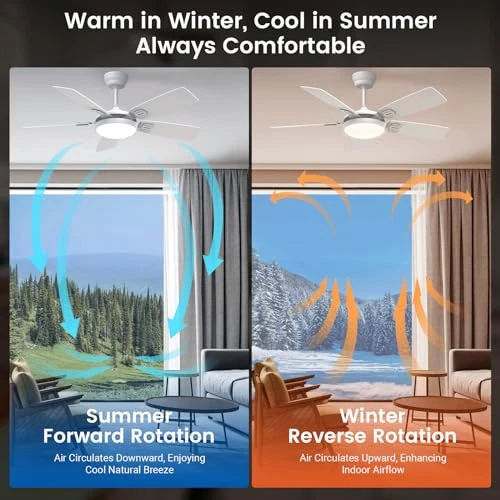 This ceiling fan is a game-changer! The sleek 52" flush mount design fits perfectly in my bedroom, and the quiet reversible motor keeps the air flowing without any noise. Love the convenience of controlling it via the app or remote—adjusting speeds, dimming the lights, and setting timers is effortless. The memory function is a nice touch, and the three color options let me set the perfect mood. Installation was straightforward, and it looks modern yet timeless. Highly recommend for anyone wanting style, comfort, and smart functionality!