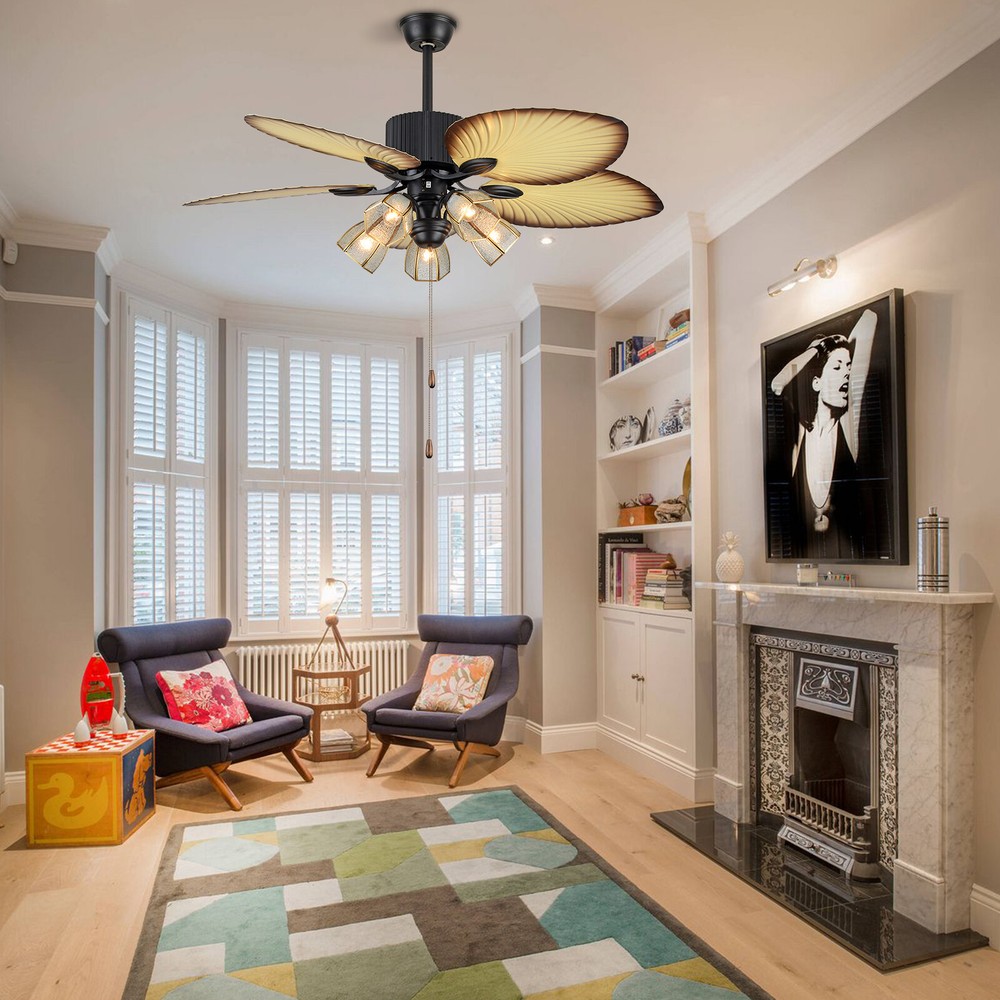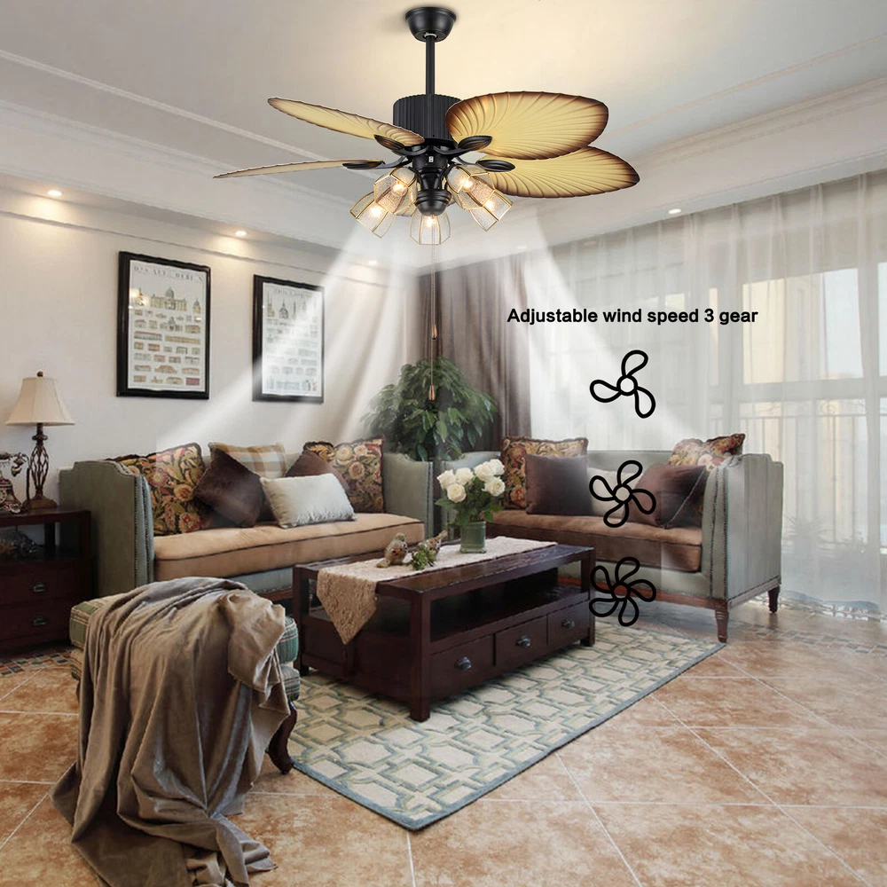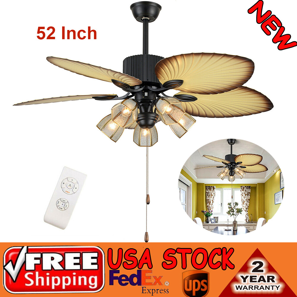 The Feature of Product Specification: 52inch Control Method:remote control (included) Blade Material: wood leaves lampshade Material:glass Light Kit: E26light bulbs *5 (not included。Edison bulb/LED/CFL/incandescent lamp is required, 20-60W is recommended,。) Downrod Length: 2 downrod of3.97 and 7.87inch (included) remote battery: 12V 23A (Included) Applicable Space:107-312square feet Applicable Place: living room/ bedroom /office and restaurant Installation Instruction ①For your safety, Please turn off the power before installation ② Please check parts against the packing list to see if the accessories are available. ③We provide install instructions for you. please referred to install manual or have a professional electrician. If need any help, please contact us. Ceiling Fan with Light Remote Control Reversible 5 Palm Tropical Blades 52 inch **Description of yybshop02** 52 Inch Palm Ceiling Fan Lights 3 Speed Remote Premium Light Fixtures 5 Lights 5 Palm Blades Tropical Ceiling Fan Decorations for Living Room Chandelier Fan Description Premium Material : A unique metal round arched lampshade is used, bright crystal decoration is placed on the outside. simple but elegant, 5 wood blade for great air movement. 2 downrod provide Great Looking: 3 speed sets, E26*5 light bulb, completely silent, fantastic air circulation, great looking, It adds so much to the room without being over the top Reverse Function : 3 speed choosing, reversible ceiling fan can change the direction of the fan from updraft mode during the summer to the downdraft mode during the winter WhisperWind Motorsilver ceiling fan with shiny metal body is designed the imported silicon steel sheet and imported premium bearings, It can extend longer life and smooth operation The Feature of Product Detail: 52inch Control Method:remote control (included) Blade Material: wood leaves lampshade Materialglass Light Kit: E26light bulbs *5 (not includedEdison bulb/LED/CFL/incandescent lamp is required, 20-60W is recommended,) Downrod Length: 2 downrod of3.97 and 7.87inch (included) remote battery: 12V 23A (Included) Applicable Space:107-312square feet Applicable Place: living room/ bedroom /office and restaurant Installation Instruction For your safety, Please turn off the power before installation Please check parts against the packing list to see if the accessories are available. We provide install instructions for you. please referred to install manual or have a professional electrician. If need any help, please contact us. What will you get: ceiling fan x 1 Screws sets x 1 Down rods x 2 (10CM & 20CM) Remote control x 1 Instruction Manual x 1 **Description of yybshop02** If you have any question , please contact us , and we will reply you as soon as possible. Description Welcome to Saletyyy111 ~ Payment Delivery details Terms of sales About us Contact us Payment We accept ebay payment 。 Fees such as import duties, taxes are not included in the item price or shipping costs. These charges are the buyer's responsibility. Delivery details Shipping: 2-9 working days to: USA Terms of sales We maintain high standards of excellence and strive for hundred percent customer satisfaction. Feedback is very important to us. We hope that you contact us immediately before you give neutral or negative feedback, so that we can address your concerns. It is impossible to address issues if we do not know about them! About us Your satis faction is our ultimate goal. We work hard to earn your trust and future business. Our certified technicians have tested each item before shipping. The unit comes with 1 year limited warranty on all manufacturing defects. a) If you receive a defective item, you may return it or ask for a discount. Please contact us within 14 days after you receive the package. b) What you returned must be intact and in its original packaging as re? u. Customer is responsible for shipping costs of the returned item. c) We will cover the cost of shipping back t with the shipping rate indicated in the registration page. We will send you a new unit or refund the full payment you paid. Thank you. Contact us Business Hour Business Hour: Monday To Friday: 8:30 AM to 5:00 PM (Beijing China time) Due to time zones, our reply to your questions may not be immediately. But within above working time, we will reply your email within 24 hours. If it's non-workdays, please kindly be patient and wait till Monday. Please contact us with ebay message. Please feel free to contact us if you have any questions. Monday To Friday: 8:30 AM to 5:00 PM (Beijing China time) Due to time zones, our reply to your questions may not be immediately. But within above working time, we will reply your email within 24 hours. If it's non-workdays, please kindly be patient and wait till Monday. Please contact us with ebay message. Please feel free to contact us if you have any questions.