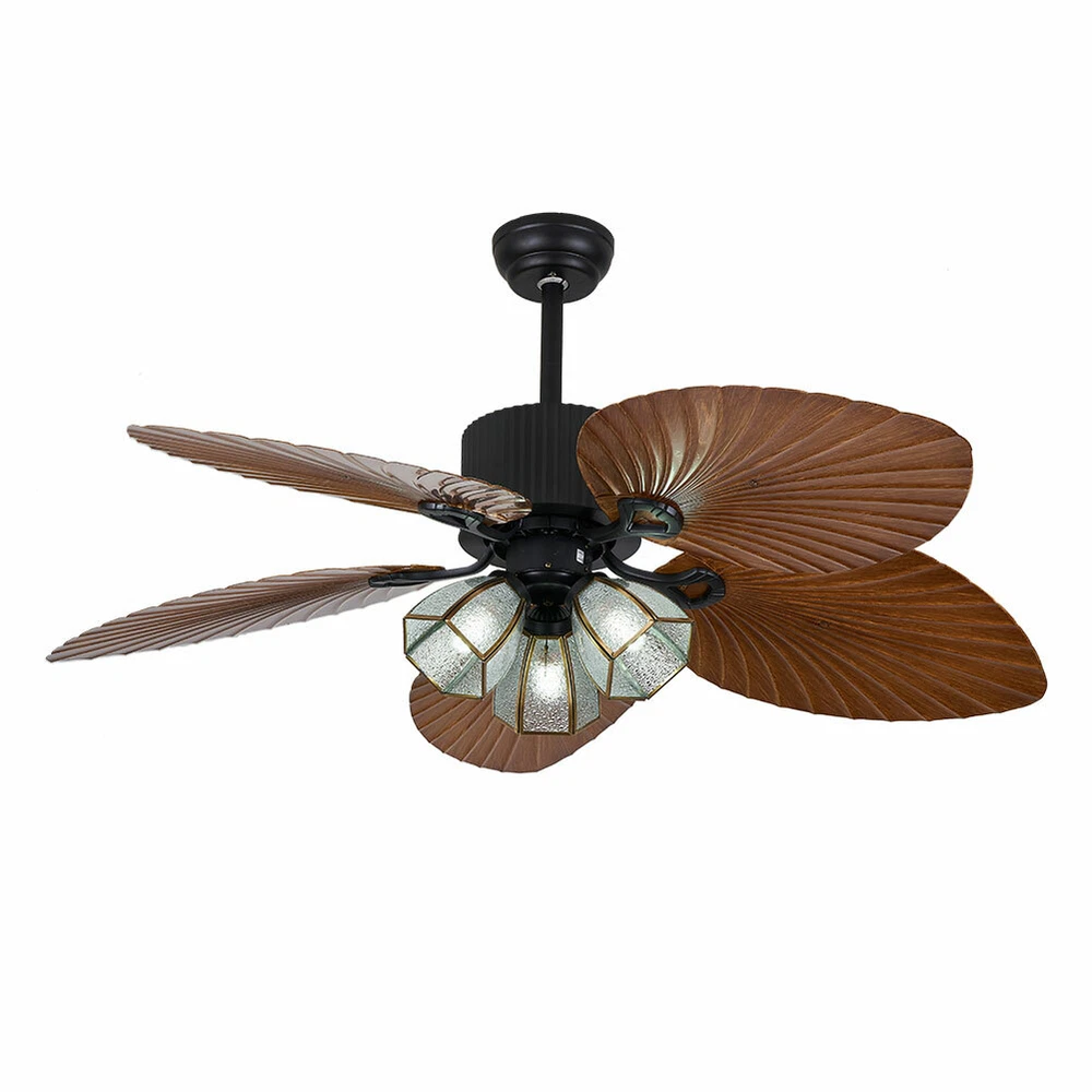 This tropical ceiling fan is an absolute game-changer for any room! The sleek electroplated design adds a modern touch, while the three reversible blades keep airflow smooth and quiet (only 35dB!). Love the remote control with timer settings—super convenient. The included acrylic lights give a soft glow, though you'll need your own bulbs. Easy to assemble and powerful for medium-sized spaces. Perfect blend of style and function—highly recommended for a cozy, breezy upgrade!