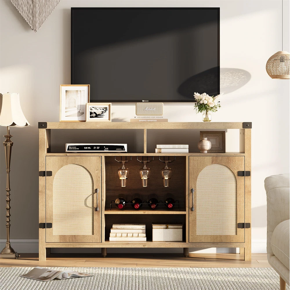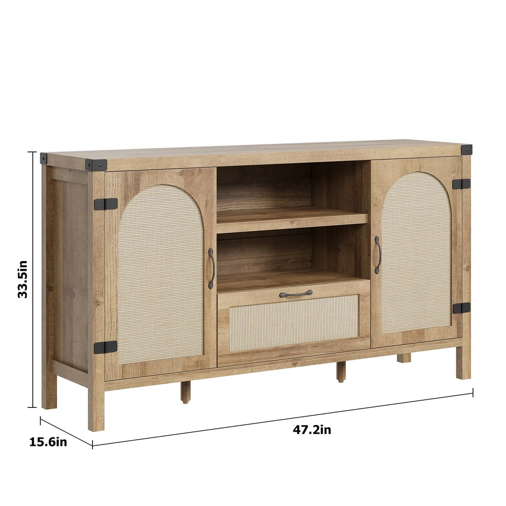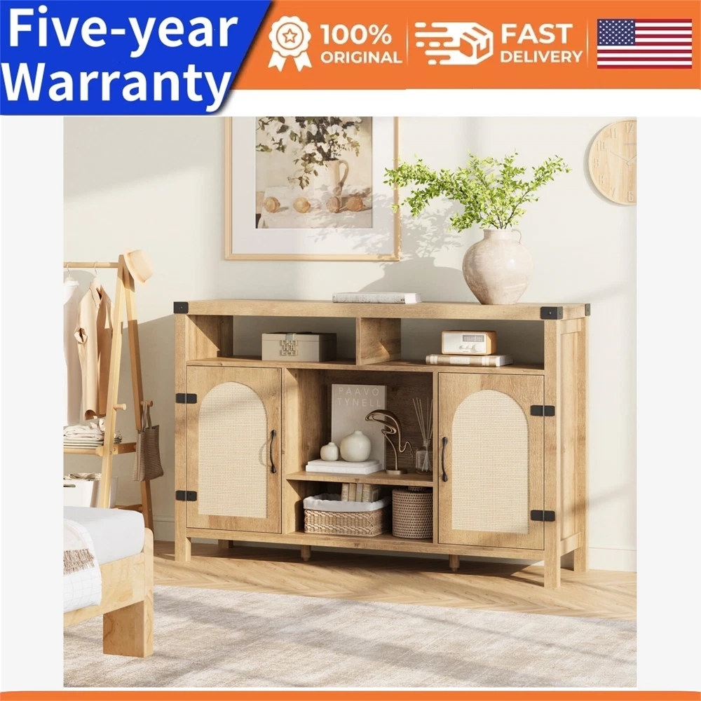 Rattan Sideboard Buffet Cabinet: Natural wooden kitchen sideboard with open shelves that has both space for displaying and storing things. The attention to detail gives the sideboard buffet cabinet a distinct elegance, boho style adds natural to the home. Put something nice on the wide top to complete the look and enjoy a solid, practical storage solution. Sideboard Buffet Cabinet with Storage: Sideboard with drawers gives you plenty of space to store things and a surface to create an attractive display, and adjustable shelves behind rattan doors. Add cutlery trays and storage boxes to your sideboard, and hide items that tend to clutter in the drawers or behind doors to make it easier to keep your dining area organized. Solid Farmhouse Buffet Cabinet: A thickened top panel provides higher load capacity, ideal for setting the serving dishes. The integrated design of wooden support legs and cabinets side ensures structural stability and resists shaking.Two metal feet at the bottom to provide center support. Coffee Bar Buffet Cabinet: From a buffet storage cabinet ideal for storing and displaying dishware in the dining room to a sleek coffee bar cabinet in the living room, Open shelves and drawers combination allows the buffet cabinet to achieve more usage scenarios. Easy Assembly, Customer Support: Delivered with all necessary parts, tools, and a detailed instruction manual, this buffet cabinet is easy to assemble, and Garveehome offers responsive customer support to address any queries within 24 hours. Payment Delivery details Terms of sales About us Contact us Payment We accept payment either via PayPal or any of the following credit cards; Visa, MasterCard, Discover, and American Express. Wishing you a happy life! Delivery details We will provide you with the tracking number on the same day or the next day, and transport your package through UPS, DHL, FedEx and other courier methods. If you have any questions, please feel free to contact me and I will do my best to help you solve the problem. Wishing you a happy life! Terms of sales We offer a one month free return and exchange service, and you don't have to bear any losses. We will provide multiple solutions for you to choose from. If you have any questions, please feel free to contact me and I will do my best to help you solve them. We offer a two-year warranty period. If you have any quality issues with the product you purchased within two years, please feel free to contact me. I will provide you with a free replacement service. If you have any questions, please feel free to contact me. I will do my best to help you solve the problem. Wishing you a happy life! About us We are committed to becoming the best eBay seller, with high-quality suppliers, providing the most sincere service, including pre-sales and after-sales service, to give you a satisfactory shopping experience. If you have any questions, please feel free to contact me, and I will do my best to help you solve the problem. Wishing you a happy life! Contact us If you encounter any problems, please contact me by email at the first time, I will provide you with a solution as fast as possible so that I can give you a satisfactory shopping experience, wish you a happy life! Brand grvee Item Height 10"H Item Length 56.3"D Item Width 16.42"W Type Cupboard Material Wood Mounting Free Standing Features Wine Racks, Drawer Room Dining Room Style Boho Item Weight 84.99 Pounds