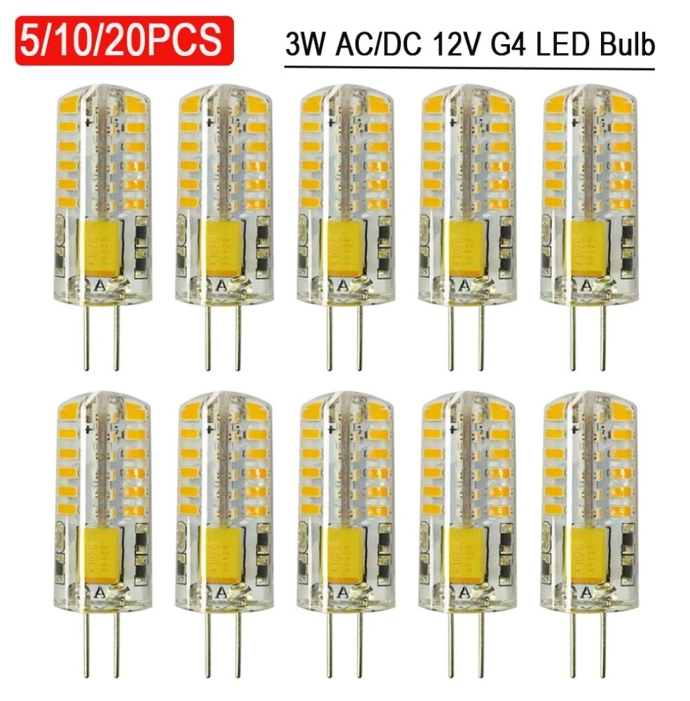 Brand: Unbranded Features: Wide Beam, Heat Resistant Type: Lamp Bulb Lighting Technology: LED LED Chip Code: 3014 Labels & Certifications: CE Marking EC Range: A+++ - G Bulb Shape Code: G4 Bulb Wattage: 3 W Model: G4 LED Corn Light Bulb Bulb Life Hours: 20,000 hrs Material: metal, silicone Voltage: AC/DC 12V Lumens: 220-260 lm Connectors: 2 Pin Color Temperature: 2500 - 3000K Warm,3500 - 4500K Neutral,5500 - 6000K Cool Beam Angle: 360° Custom Bundle: No Indoor/Outdoor: Indoor & Outdoor MPN: Does Not Apply Bulb Shape: Corn Bulb Number of Bulbs: 5/10/20 Manufacturer Warranty: 1 Year