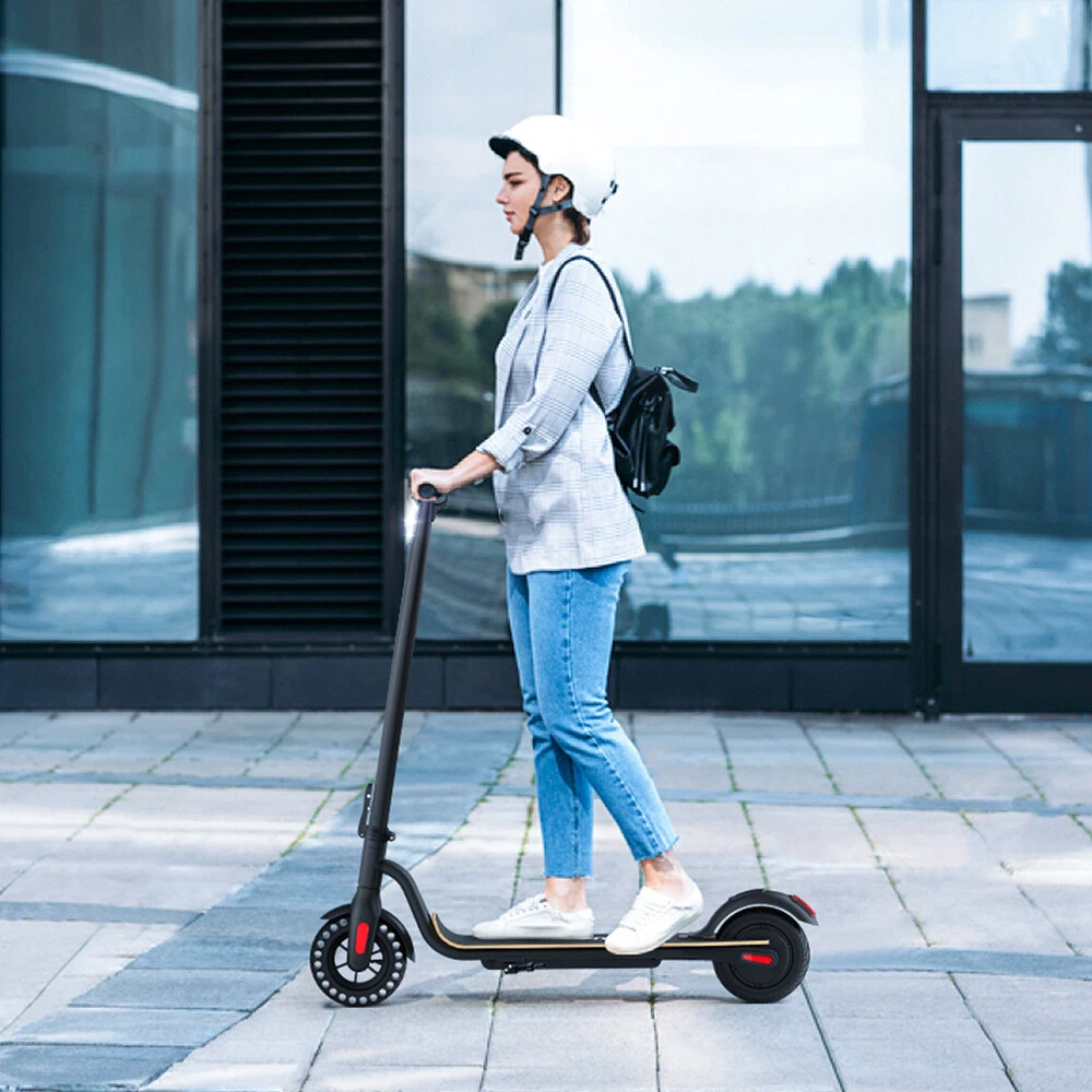 Main features: LONG RANGE BATTERY LIFE - Powerful 250W motor and 5.2 Ah/36V lithium battery pack that supports a speed of up to 15.5 Mph with a range up to 7 Miles. Updated large-capacity battery life, designed for commuters and longer distances. 8.0" HONEYCOMB & SOLID TIRES - Shock-absorbing rubber tires offer a smooth ride even over bumpy surfaces. PORTABLE FOLDING DESIGN - Electric scooter can be folded easily in 3 seconds with quick folding latch for easy carrying and storage. BATTERY INDICATOR AND LIGHTS - Battery indicator keeps to track battery life. Ultra bright LED headlight and taillight. Fast recharging about 5 hours. GEAR SHIFT SETTING - 1st gear for a 7.5 Mph comfortable ride or 3rd gear to get the 15.5 Mph fast experience. Extremely fun to ride and end boring commutes. Specification: Brand: Megawheels Model: S10 Dimension: Unfolding 105 x 43 x 118 cm; Folding: 105 x 43 x 48 cm Net Weight: 11.9kg Color: Black Frame Material: Aluminium Tires: 8.0" Honeycomb Front Tire & Solid Rear Tire Max Load: 100kg Max speed: 25KM/h Speed level: Gear 1--Max 10km/h ; Gear 2--Max 20km/h; Gear 3--Max 25km/h Mileage: 8-12km Grade Ability: 20 degree slope Working Temperature: -15°C-50°C Storage Temperature: -20°C-25°C Mode Type of Motor: Brushless hub motor Battery Type: High quality lithium battery Battery Capacitiy: 5.2 Ah Battery Voltage: 36V Charger Input Voltage: 100V-240V Charger Frequent: 50Hz/60Hz Charging time: 4 hours Package Contents: 1 * Folding Electric Scooter 1 * Battery Charger 1 * User's Manual Riding Skills: -Put your foot in the front of the scooter and the other foot on the floor before riding. -Make sure that the riding route is smooth. -Slide forward with the food standing on the floor before starting (like riding the scooter without power). -Immediately press the acceleration button and lean forward to avoid falling over backward due to inertia, so that the electric scooter will enter the working status. -Avoid pressing the handle with your body in the acceleration and deceleration process. Put one foot ahead and the other behind (like on the sliding plate/surfboard, put one foot ahead and the other behind by 70-90 for better comfort). -Turning – The turning principle of the electric scooter is the same with that of surfboard/sliding plate/skis. The handle shall be balanced with the body. Observe and make sure that turning is safe before turning. Tips: Before riding the scooter, please put one foot on the scooter deck and the other foot on floor and push the scooter forward by kicking the floor for some distance, in this way, the scooter will get some impulse to run forward. Note: This products have been certified under UL2272 safety standards.