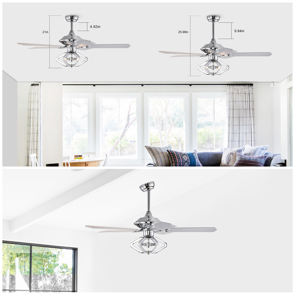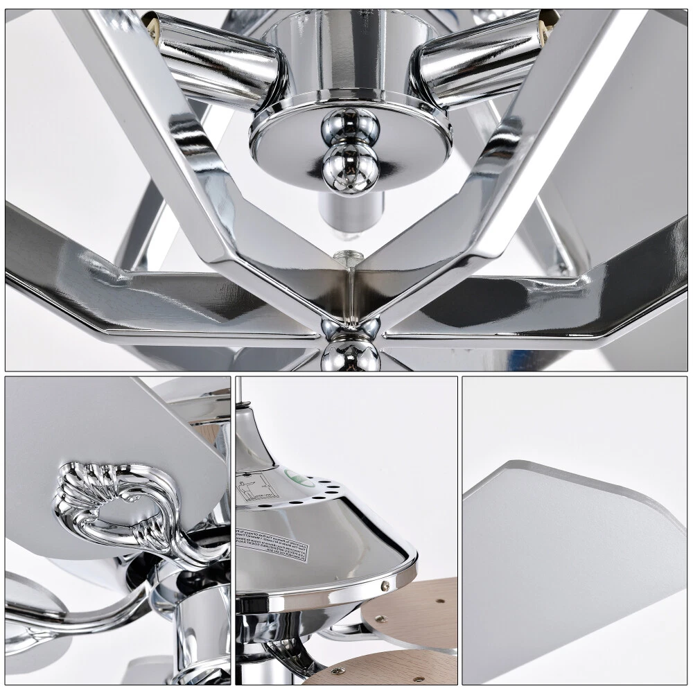 52 Inch ABS Ceiling Fan with Light Kit, Remote Control, 6 Speed Settings, Modern Design