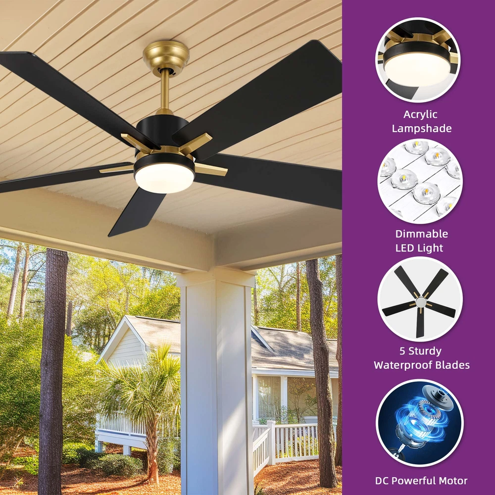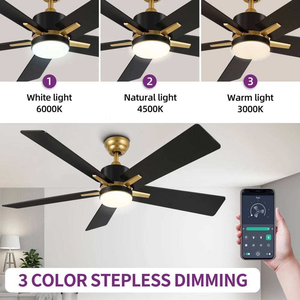 Product Description Specifications: Color:Black & Gold; White & Gold Product Dimensions: 52"L x 52"W x 15"H Numbers of Blades: 5 Numbers of Speeds: 6 Material: Metal Sound Level: 35 dB Item Weight: 16.5 pounds Control Method: Remote Control & APP Control Mounting Type: Ceiling Mount Assembly Required:Yes Package Included: 1 x Ceiling Fan 1 x Remote Control (Battery Not Included) 1 x Instructions Manual Product Details Shipping 1.The shipping rates listed are only for residential or commercial destinations in the continental 48 United States. All international sales will go through eBay Global Shipping Program.please ask us if there are any questions. 2.We only ship the item to the address that is sent to us at the time of checkout. Please verify the correct shipping address in your PayPal account before making your payment. If we ship your item to an old or invalid address and you are not able to locate the item, we are not responsible for shipping a replacement. 3.Currently, we do not ship to Hawaii, Alaska, Puerto Rico,APO/FPO/PO Boxes. 4.We use USPS, UPS & FedEx as shipping method. 5.Payments cleared before 12 PM PST, will be shipped on the same day. Payment 1.We accept PayPal and all forms of credit card. 2.We will only ship to the confirmed Paypal shipping address given with the payment. 3.We do not offer local pick up service. Return 1.30 days Money Back Guarantee. 2.If any package that needs to be returned, please contact our customer service first to receive a RMA form. 3.All return items MUST be in brand new condition. About Us 1.Specialized in aftermarket auto parts since 2012, we source and work directly with professional manufacturers to provide the highest quality parts at the most economical prices. 2.We also has over 5 years of shipping experience with FedEx and USPS . Our Packing Quality is Guaranteed , Item Ship-ping is timely! On Feb 13, 2025 at 03:50:45 PST, seller added the following information: