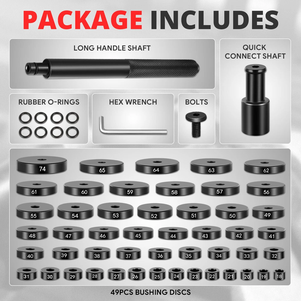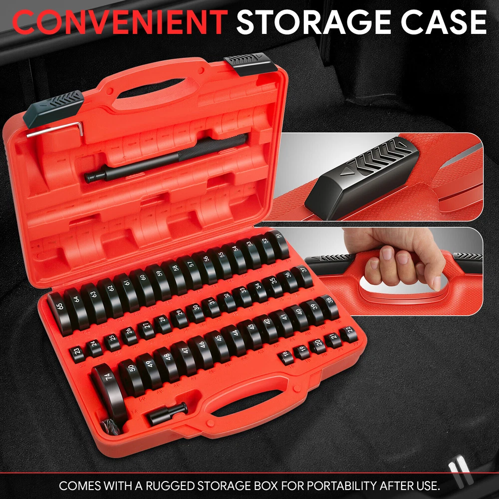Welcome to Speed Daddy Store Home About Us Feedback Add To Favorites New Arrivals Ending Soon Contact Us [52Pcs]Custom Bushing Bearing Driver Set Transmission Wheel Axle Seal Tool Kit Product Description Our Bushing Bearing / Seal Drivers Set can Help You Quickly and Effectively Disassemble and Install Wheel Bearings Bushingson Cars or Trucks; Replace The Bearing Seat Rings and Seals, Rubber Specifics and Features : Made of Heavy-Duty Carbon Steel and Having Corrosion Resistance and Rust Prevention Has 50 Interchangeable Discs(0.7 in/18MM-2.55 in/ 65MM and Specially Increased To 74MM/2.91 in For You;It can Build 2,450 Custom Bushing Driver Variations For Your Convenience, We Have Customized a Storage Bag For Them The 12mm Shaft and Screw Connecting the Brake Discs Can Be Rapidly Attached to the 180mm (7.08 Inch) Handle Bushings. Includes : Custom Bushing Driver Set 49 X Bushing Discs Long Handle Shaft Quick Connect Shaft Bolts Hex Wrench Rubber O-Rings Notes : 100% Brand New Professional Installation is Highly Recommended Installation Instruction is NOT Included Shipping Payment Returns Terms & Conditions Feedback Contact Us DOMESTIC LOWER 48 US STATES: FREE SALES TAX: CA ONLY VERY IMPORTANT: Double check shipping address. We are not responsible for incorrect or undeliverable addresses. Please use Shipping & Payments tab on top of page for shipping details for your location. Shipping to PR, HI, AK and PO Box addresses will be charged the same as shipping to Canada. GU, VI, SAIPAN will be charged the same as international shipping rate. For Canada shipping please select the lowest price. We do not offer expedited shipping. US Territories such as GU, VI, SAIPAN will be charged the same as CANADA shipping rate. Transaction will be held until a full shipping amount received. Some of the packages cannot be delivered to a PO Box. Customer is responsible to ensure PO Box address given is deliverable by the shipping company. Package will be held until a valid physical address is provided. Customer assumes shipping charges incurred in shipping to undeliverable address. International buyers are responsible for all customs duties, taxes, and other applicable fees incurred by the country's customs/border regulations. Please contact customs for more information. We ship 98% of all orders the same or next business day after payment received/cleared. Please understand that once orders are shipped, we cannot control the transit times thereafter. Most orders will ship via USPS First Class/Priority Mail or FedEx/UPS or the best suitable carrier for the specific size of the product. We are not responsible for any changes to address after item has been shipped. Item will be shipped out within 24 hours after payment cleared, except for weekends and holidays. PayPal e-check takes 3-7 business days to be processed. We will not ship until an e-check has been cleared. 30 Days Free Returns, please notify us within 30 days after you've received your order. Please email us or call us to obtain a RMA (Return Merchandise Authorization) number from us, and have the RMA number written on the return package. Items to be returned must be in resalable condition. All returns are for refund ONLY. No exchange accepted. For emissions related items, please check with your local jurisdiction for emission specific requirements before purchasing. All items do not come with installation instruction unless otherwise specified. If item is questionable, please consult your local professional/mechanic before making purchase. Shipping DOMESTIC LOWER 48 US STATES: FREE SALES TAX: CA ONLY VERY IMPORTANT: Double check shipping address. We are not responsible for incorrect or undeliverable addresses. Please use Shipping & Payments tab on top of page for shipping details for your location. Shipping to PR, HI, AK and PO Box addresses will be charged the same as shipping to Canada. GU, VI, SAIPAN will be charged the same as international shipping rate. For Canada shipping please select the lowest price. We do not offer expedited shipping. US Territories such as GU, VI, SAIPAN will be charged the same as CANADA shipping rate. Transaction will be held until a full shipping amount received. Some of the packages cannot be delivered to a PO Box. Customer is responsible to ensure PO Box address given is deliverable by the shipping company. Package will be held until a valid physical address is provided. Customer assumes shipping charges incurred in shipping to undeliverable address. International buyers are responsible for all customs duties, taxes, and other applicable fees incurred by the country's customs/border regulations. Please contact customs for more information. We ship 98% of all orders the same or next business day after payment received/cleared. Please understand that once orders are shipped, we cannot control the transit times thereafter. Most orders will ship via USPS First Class/Priority Mail or FedEx/UPS or the best suitable carrier for the specific size of the product. We are not responsible for any changes to address after item has been shipped. Payment Item will be shipped out within 24 hours after payment cleared, except for weekends and holidays. PayPal e-check takes 3-7 business days to be processed. We will not ship until an e-check has been cleared. Returns 30 Days money back, please notify us within 30 days after you've received your purchased item. All return requests must be submitted through your eBay account. You have to obtain a RMA (Return Merchandise Authorization) number from us, and have the RMA number written on the return package. Buyers pay for return shipping fee. Items to be returned must be in resalable condition. All returns are for refund ONLY. No exchange accepted. Returns for refund are subject to a 20% restocking fee. Terms & Conditions For emissions related items, please check with your local jurisdiction for emission specific requirements before purchasing. All items do not come with installation inst