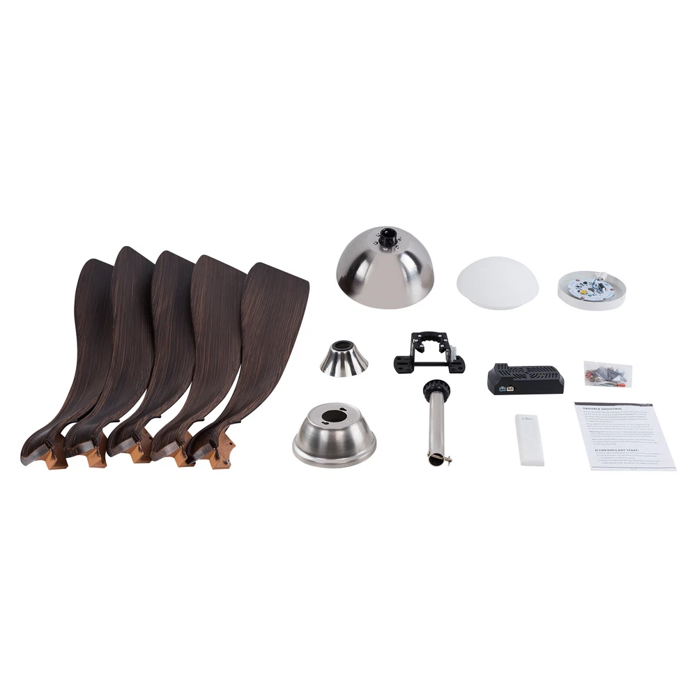 52in LED Ceiling Fan Light 3 Colors Ceiling Fan Lamp Bedroom w/ Remote Control Description This ceiling fan light allows you to feel the bright light and enjoy the coolness at the same time. It has six gears of wind speeds with a timing function to meet your daily usage needs, and y ou can also reverse the direction of the fan in winter. It can be integrated with different decoration styles and is ideal to create an excellent life and sleep environment to accompany you in all seasons. Key Features Sturdy and Durable: This product is made of iron, ABS and hardware with a painting process, with high hardness, high abrasion resistance , anti-corrosion , anti-rust to ensure your long-term use. Suitable for Winter and Summer: It has a forward and reverse function that the normal mode of the fan can bring coolness in summer, while the winter reverse mode can be combined with heating to press down the warm air and increase the air convection rate, creating a 360-degree ambient heating flow. Outstanding Lighting Effect: With the powerful light source, this product provides you with an excellent lighting effect within 86.11-161.46ft² , while protecting your eyes as the lighting will not flicker. Healthy and Energy-saving: The ceiling fan light provides more comprehensive air circulation and cooling, thereby reducing the frequency and time of air conditioning use, saving energy, and reducing expenses. It can avoid direct blowing and reduce the risk of air conditioning diseases. Adjustable Design: This product has three adjustable light colors (white, warm, and neutral ) and adjustable color temperature, so you can adjust it to meet your different needs. The fan's airspeed can be adjusted by 6 gears. In addition, you can control its working time in advance (1/2/4 hours) through the remote control (9.84-16.4ft), which will provide more convenience. Low Noise: I t uses a pure copper motor and runs with very little noise(35dB). Whether you're sleeping, working, or just trying to relax, it runs gently without disturbing others. High Applicability: A wide voltage range of 85-265V can be applied to most of the household's electricity needs. Fashionable Appearance: The ABS fan blades and simple brown color create a minimalist atmosphere that can be blended with different décor styles to add flair to your room. Easy to Clean: Thanks to the simple structure and smooth surface, you can easily wipe it clean with a rag (not included). Details Sturdy Base: This circular base increases the stress area, making the product more stable. Selectable Suspension Rods: The 4.72" and 7.87 " suspension rods provide you with the flexibility to install this ceiling fan according to your needs. Smooth Edges: The smooth and burr-free edges can effectively improve the safety of use. Application With an illumination area of 86.11-161.46ft² , it is suitable for a bedroom, living room, kitchen, dining room, corridor, aisle, balcony, study, reading room, living room, cafe, store, bar, office, lounge, library, club, hotel, kindergarten, and so on. It is not only suitable for indoor lighting but also can be used as a ceiling fan. Specifications Material: Hardware, Iron, ABS Process: Painting Color: Brown Efficiency: E Assembly Required: Yes Light Source: LED(Included) Motor Type: Pure Copper Motor Forward and Reverse Function: Yes Control: Remote(Included), Wall Switch(Not Included) Mount Type: Ceiling Mount Indoor/Outdoor Usage: Indoor Style: Modern Light Colors: White, Warm, Neutral Timing: 1/2/4H Wind Speed Gears: 6 Remote Control Battery Type: 2*AA Batteries(Included) Color Temperature: 3000-4500-6000K Luminous Flux: 2200LM Motor Power: 35W Light Source Power: 24W Voltage: 85-265V Noise: 35dB Remote Control Distance: 3-5m/9.84-16.4ft Irradiation Area: 8-15m²/86.11-161.46ft² Fan Suitable Area: 15-20m²/161.46-215.28ft² Gross Weight: 7.7kg/16.98lbs Net Weight: 6.5kg/14.33lbs Base Diameter: 15cm/5.91in Suspension Rods Height: 12cm/4.72in, 20cm/7.87in Overall Product Length: 132cm/52in Package Size: 80*33*29cm/31.5*12.99*11.42in Package Included 1* Ceiling Fan Light 1* Remote Control 1* English Manual All Accessories for Assembly Notes For a safe and secure installation, please ensure that the electrical box to which this fixture will be mounted is properly attached to a structural member of the building. Please make sure the power is cut off before installation. To ensure your safety, we recommend that two people install it together. Please install it by someone with an electrical license if necessary. Please wear electric insulation gloves (not included) and avoid scratching the surface of the item and the electric wire when installing. Please use it within the applicable voltage range and clean it regularly. Please cut off the power supply when you clean the item. Please wipe with a soft cotton cloth and do not use household cleaning agents. Please use it in a dry environment. It is not suitable for outdoors and bathrooms. Please keep flammable materials away from lit fixtures. Please read the operating manual completely before use. And pay particular attention to the safety instructions included. Please allow the slight color difference caused by the shooting light and 1-3cm error due to manual measurement, and make sure you do not mind before you order. Payment Delivery details Terms of sales About us Contact us Payment We accept ebay payment 。 Fees such as import duties, taxes are not included in the item price or shipping costs. These charges are the buyer's responsibility. Delivery details Shipping: 2-9 working days to: USA Terms of sales We maintain high standards of excellence and strive for hundred percent customer satisfaction. Feedback is very important to us. We hope that you contact us immediately before you give neutral or negative feedback, so that we can address your concerns. It is impossible to address issues if we do not know about them! About us Your satis faction is our ultimate goal. We work hard to e