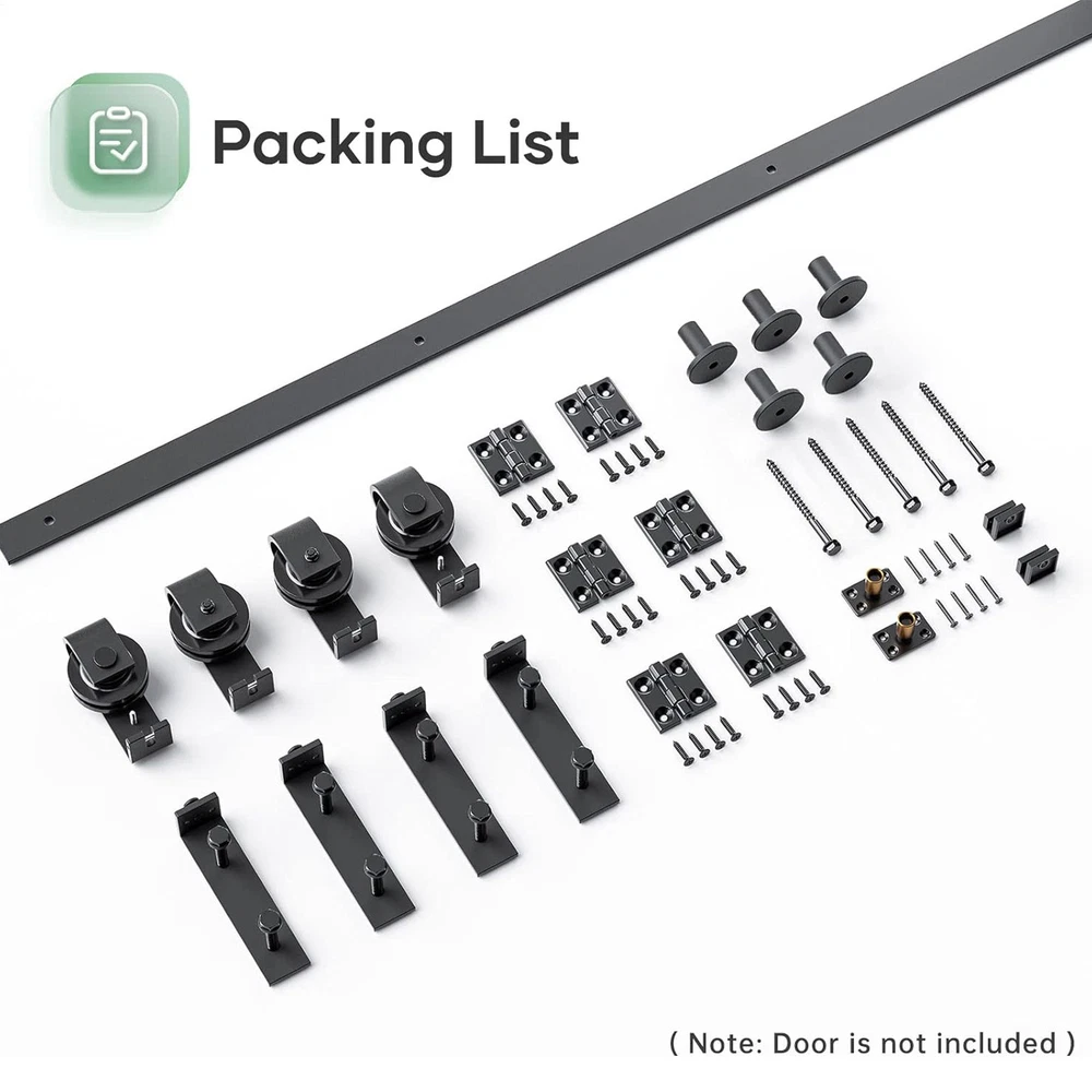Store category Sign Up Now ! You may also like Product Description Bullet Points: Strong Durability: Crafted from high-quality carbon steel, our sliding barn door hardware kit ensures a smooth, wear-resistant journey on 6mm thick tracks; its durable rollers, combining reliable bearings with nylon wheels, offer a robust, anti-rust movement. Effortless and Time-saving: Our barn door hardware kit is perfect for hassle-free installation and transforms your folding doors with ease. The perfect space-saving solution for any household to enhance their home's efficiency. Practical and Helpful: Enhance your home's functionality with our sliding barn door hardware kit, designed for doors 1-3/8 to 1-3/4 thick, ensuring smooth operation and daily convenience. Easy Installation: Our sliding barn door hardware kit allows for an easy installation process, thanks to instructions that offer clear explanations and visual aids including diagrams and pictures. Widely Suitable: With its versatility and style, this sliding barn door hardware kit is a perfect addition to your home, restaurant, or study area. Widely applicable and equally dynamic, it can improve any living space to a whole new level of adaptability. Upgrade your home with our strong sliding barn door hardware kit! Save space and bring convenience to your daily life. Widely used in a variety of living situations, this hardware will give your home a modern and stylish touch. Specifications: Colour: Black Material: carbon steel Product Size: Track size: about 52 inches (132CM) Track splicing method: 4 pieces Scope of application: Door panel thickness of about 0.5-50MM Packing List: 4x FT track 4x roller 4x roller swivel stand 2x roller holder 5x pipe clamps 6x hinge 2x ground guide fixings 2x sealing strip 1x screw pack 1x Manual Notes: 1. Due to the lighting effects and photographing angles, there is a color difference in the product, please understand. 2. Due to manual measurement, there is a tolerance in the product size. Payment Delivery details Terms of sales About us Feedback & DSRs Shipping 1. We only ship to United States 2. Delivery Time: Ship from US via FedEx Ground or FedEx Home Delivery 1-5 business days with tracking number. 3. We ship the item out in 24-72 hours after received the payment.(Mon-Fri) 4. If you want to chose another address, please leave us a message on ebay.Please check your shipping address carefully before checkout,it can't be changed if order completed. Seriously promise:Refund or resend will be offered if item still not arrive in 7-10 business days. Just send us an email,we will give you a satisfied solution as soon as possible. Payment 1. We accept PayPal only. 2. After you have won the auction, an email will be sent to your eBay registered email address. 3. If you are paying through Paypal using eCheck, note that your item can be shipped only after eCheck has cleared. 4. All payments are expected within 7 days after the last winning auction is closed. A non-payment dispute will be opened if full payment is not received. 5. We only ship the item to your Paypal address for fast and accurate shipment. If you want to change the address, please add a note when you make the payment. after you have paid. Return & Warranty 1. For your best shopping experience in our store and saving your time .Please Do Not click "Return this item" except that you just don't need it any more.Because no return request is our company's Service. Please click "Contact seller" via Ebay Message(protected by Ebay),that is the fastest way to solve any problem for you.You will get the replacement or refund through the communication between us. 2. We fully guarantee Customers benefit within 14 business days if item DOA (damage on arrival), and please contact us within 30 days from the delivery date to exchange or refund.No need return just contact us. Refunds will be given via paypal only. 3. For malfunction products under warranty period, please contact our customer service via EBay Message. Replacements will be sent once after we have a fully communication.No need return the original one after we have fully communication. 4. The buyer has an obligation to cooperate with seller to verify defective item. If you want return, please double check if the item does not work or you just don't need it any more. If the item defective or no work, no need return. 5. All NON-Seller Mistake returns for refund are subject to 20% re-stocking fee and buyer should pay for the return shipping fee and handle fee.(For example,you brought wrong item or cancelled order after item was shipped). 6. A Merchandise Authorization Number (RMA#) is required for all need returned packages(After we have a fully communication). Please contact us to get an "RMA" number before you ship your items back to us. Items returned without an "RMA" number would be ignored or delayed in processing.Returns/Exchanges will not be accepted unless authorization has been issued by our customer service. 7. All return products should be in original package with all accessories included. Contact US Dear buyers, Welcome to our store! Your satisfaction is our top goal,we appreciate your business. 1. If you have any questions, please feel free to contact with us by ebay Message during our business hours ( 9:30a.m. to 5:30 p.m.), or email us through eBay, we will try our best to help you to resolve it. 2. If you are satisfied with our service, please rate the details of the transaction (Detailed Seller Ratings) on eBay and We will do the same for you. 3. If you are not satisfied with the product or service ,please contact us before leave negative or natural feedback, we will try our best to solve the issue to your satisfaction, thanks. Thanks for your patronizing, good luck !!