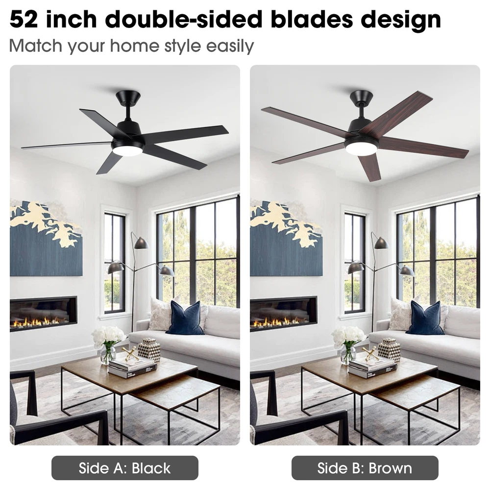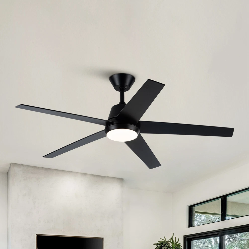 Introduce a touch of modern elegance into your home with the 52-inch Modern Black 5-blade Ceiling Fan. Featuring a stunning black finish, this 6-speed DC motor fan is a perfect addition to any contemporary decor. One of the key highlights of this ceiling fan is its 18-watt integrated LED light. With three optional color temperatures (3000K, 4000K, and 6000K), you can easily adjust the lighting to create the perfect ambiance in your room. With the reverse switch on the included remote control, you can effortlessly change the direction of the fan's rotation, providing cool air in the summer and distributing warm air in the winter.Features: Modern-style ceiling fan with light 3 color temperatures optional(3000K/4000K/6000K) Made from metal, MDF and acrylic 18 watts integrated LED included Free Shipping Over $49.99* Details 52-inch Modern Black 5-blade Ceiling Fan with Light and Remote Control Product Description: Introduce a touch of modern elegance into your home with the 52-inch Modern Black 5-blade Ceiling Fan. Featuring a stunning black finish, this 6-speed DC motor fan is a perfect addition to any contemporary decor. One of the key highlights of this ceiling fan is its 18-watt integrated LED light. With three optional color temperatures (3000K, 4000K, and 6000K), you can easily adjust the lighting to create the perfect ambiance in your room. With the reverse switch on the included remote control, you can effortlessly change the direction of the fan's rotation, providing cool air in the summer and distributing warm air in the winter. Features: Modern-style ceiling fan with light 3 color temperatures optional(3000K/4000K/6000K) Made from metal, MDF and acrylic 18 watts integrated LED included 6-speed DC motor with reverse switch on remote Includes 5 black finish MDF blades 6-inch down rods included Downrod-Mount mounting Lifetime motor limited warranty Sloped ceiling mounting up to 15 degrees Dimensions: Overall Size52 inches diameter x 15.5 inches high Down rods6 inches long Canopy size5.9 inches diameter x 2.4 inches high