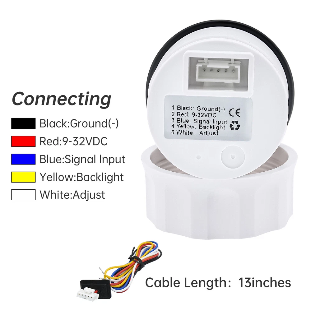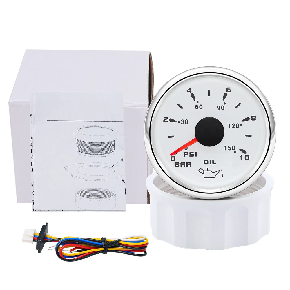 52mm 4 Gauge Set Fuel Level Oil Pressure Water Temp Volt For Car Truck Boat US 4 Gauge Set 52mm Fuel Water Temp Volt Oil Pressure For Car Truck Boat 7Colors LED Warmly tips: If any problem after buying, such as some when you install or the parcel received or un-received, please do not open a case and do not hesitate to contact us. We would do our best to give you the best solution Feature: High-brightness LED backlight. 316 stainless steel for long-term use even in acid-base, humid environment. IP67 waterproof and dust-proof grade. With curved glass( with anti-fog function). Suitable for all kinds of vehicle modification. Using stepper motor drive pointer, accurate display of the engine speed, and with the LCD display clear display mileage. Gauges have many kinds backlight color (red,yellow,orange,green,blue,purple,white),customers can adjust any color that you like Fuel Level Gauge Sizes: 52 mm (2-1/16") Measuring Range: Empty - Full Resistance: 240 (E) - 33 (F) ohms NOTES: 240-33ohms fuel level sensor only fit for 240-33ohms fuel gauge Backlight: 7 Colors Volt Gauge Sizes: 52 mm (2-1/16") Measuring Range: 8 - 16 (V) Backlight: 7 Colors Water Temperature Gauge Install diameter: Φ52mm Indication range: 0~120℃/30-250℉ Input signal: 287.4~22.4 ohms Storage temperature: -40~+85℃ Backlight: 7 Colors Oil Pressure Gauge Install diameter:Φ52mm or 2-1/16" Indication range:0~10bar / 0-150 PSI Input signal: 10-184 ohms Operating temperature:-30~+75℃ Storage temperature:-40~+85℃ Backlight: 7 Colors Package Includes: 1X 52MM Fuel Level Gauge 1X 52MM Voltmeter 1X 52MM Water temp gauge 1X 52MM Oil pressure gauge 4X Installation Instruction 4X Cable