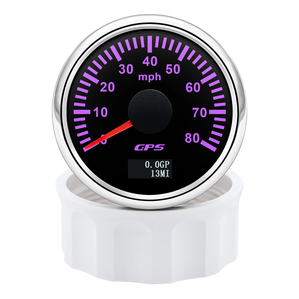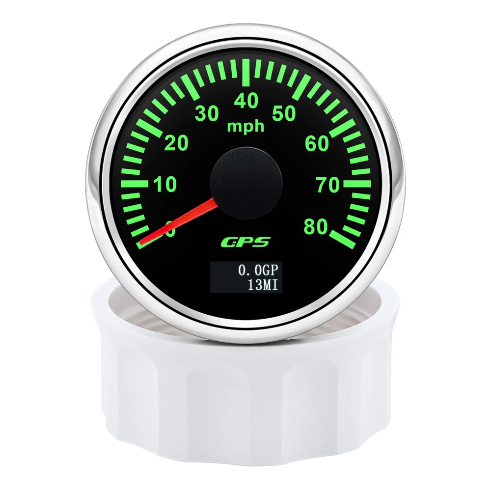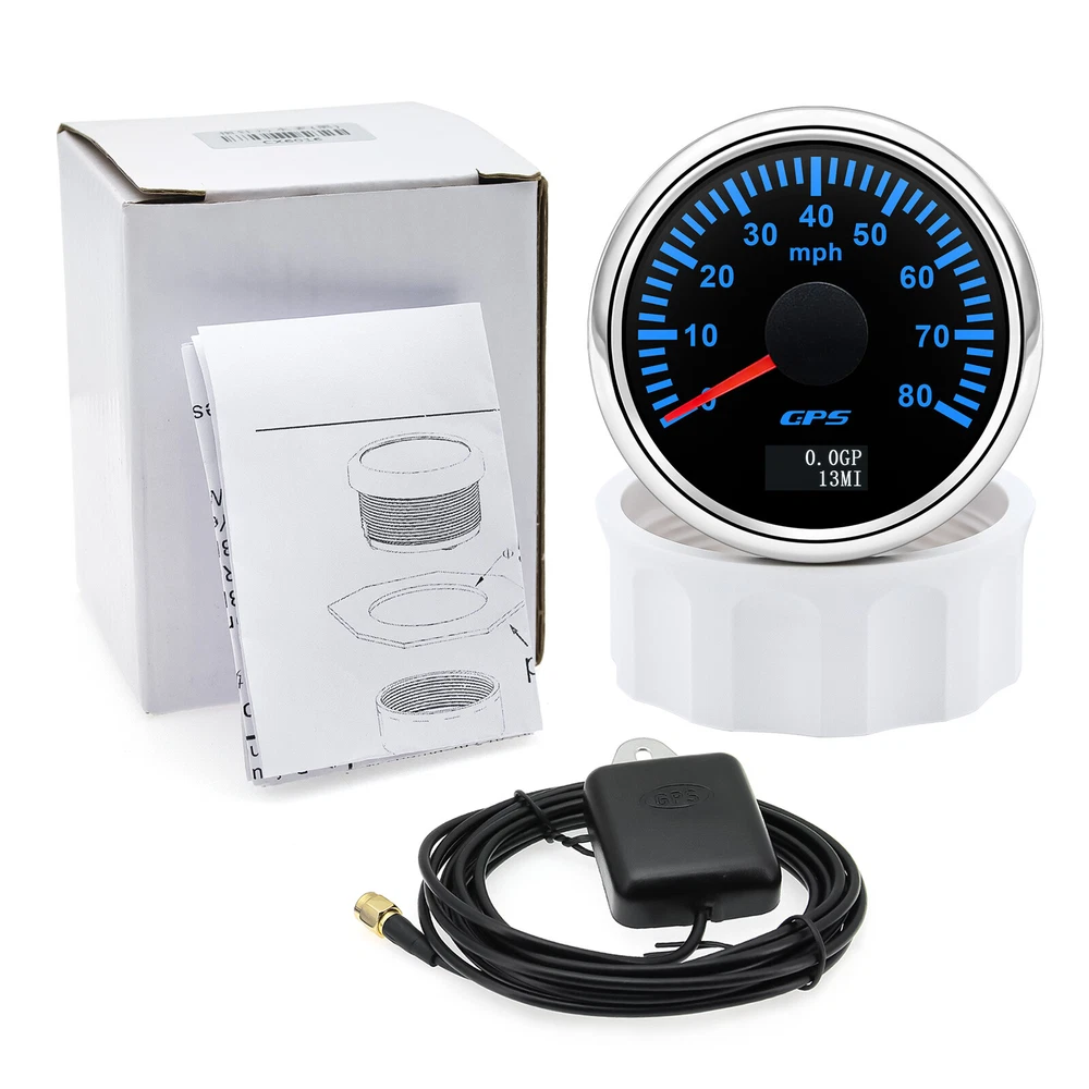 52mm Waterproof GPS Speedometer 0-80MPH Odometer Gauge for Marine Boat Car Truck 85mm GPS Speedometer Gauge 80 MPH Speed Stainless Waterproof for Car Boat Truck Specifications: Name: GPS Speedometer Odometer Material: PVC+Stainless steel+Glass Panel Color:Black Backlight Color: 7Colors LED Fixing Dimension: 85mm(3-3/8") Working Voltage:9~32VDC Working Current: ≤100mA Operating Temperature: -30°~75° Storage Temperature:-40°~85° Levels Of Protection: IP67 Indicating Range: 0-80MPH Suitable for car truck boats off-roadvehicles boats Features: -Protection grade is IP67. -100% brand new and high quality -With polarity reverse protection function. -The durability is good, and the seismic performance is good. -Thesignal comes directly from the satellite signal receiver(GPS Speed Sensor) -The gauge has the advantages of high precision,quick location confirmation and short start up time. -With ultra-wide working voltage design(long-term operating voltage: 9~32V,Maximum up to:36V(≤ 1 min) Installation instructions: 1.Opening a hole in the panel (your cabin board and dashboard) with a diameter of 85mm,Insert meter into the hole,The panel corresponding to the instrument panel is marked with a convex table,and open a small notch in this location,To ensure that there is at least 85mm of the instrument panel at the back of the instrument. 2.After the instrument is mounted in the panel,Screw down with a fixed ring.Opening a hole in the panel (your cabin board and dashboard) with a diameter of 85mm,Insert meter into the hole,The panel corresponding to the instrument panel is marked with a convex table,and open a small notch in this location,To ensure that there is at least 85mm of the instrument panel at the back of the instrument. 3.Connect the wire,the instrument housing is directly connected to the 9~36V power supply. 4.Insert wire harness,Firmly locked in the table. Package List: 1 x GPS Speedometer 1 x Standard Cables 1 x GPS Receiver 1 x Installation Instruction