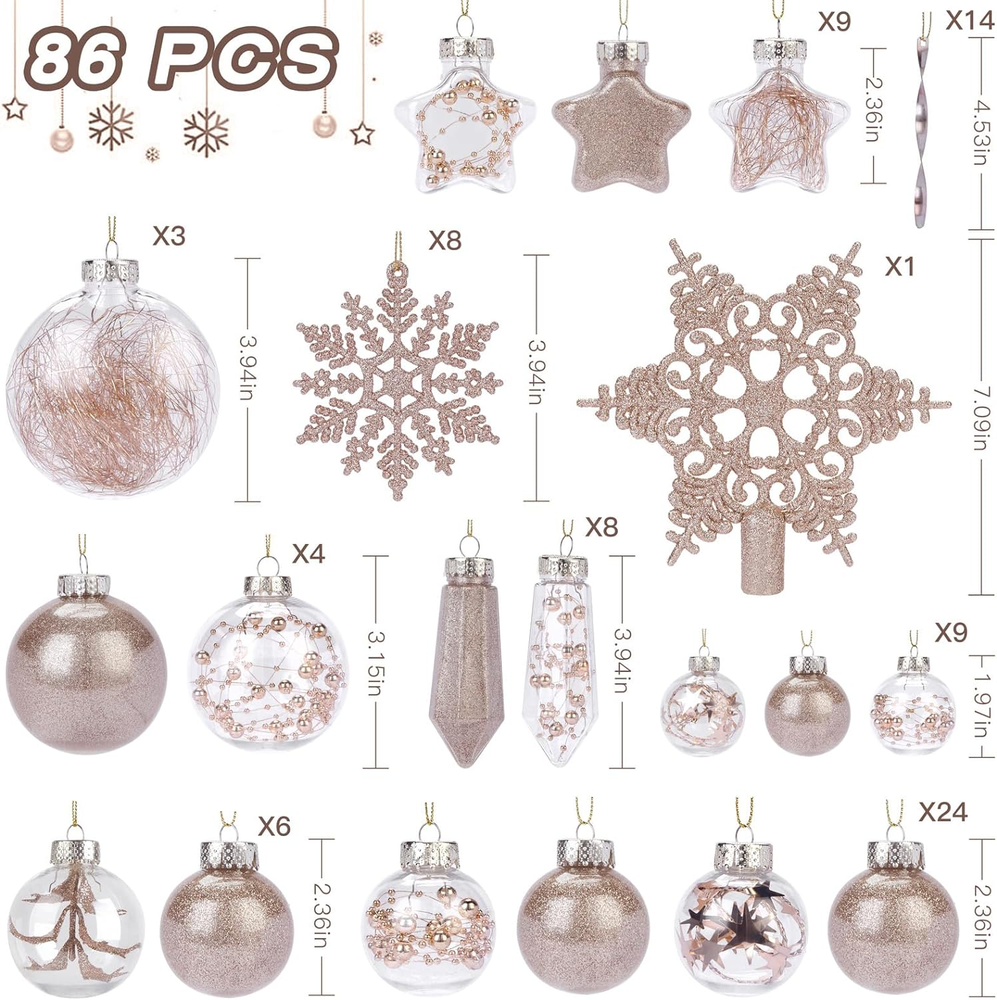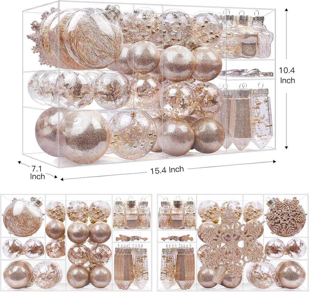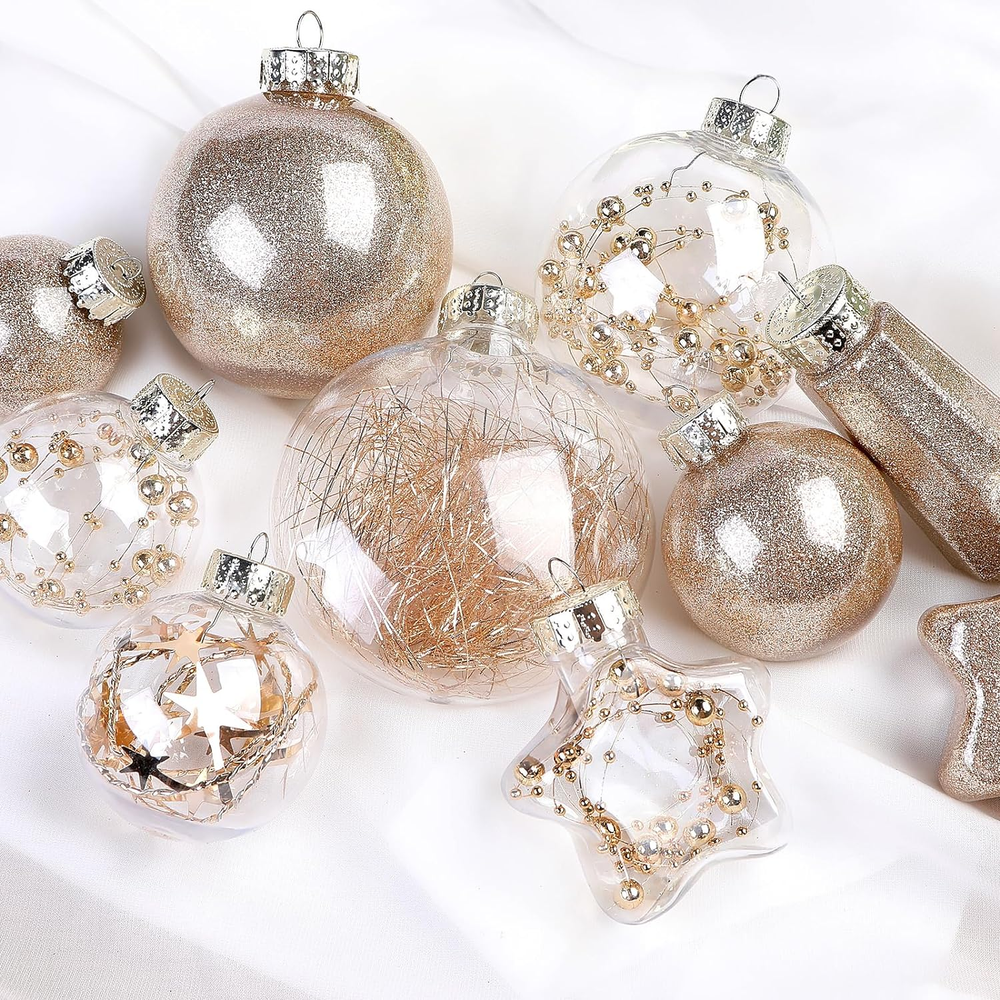 This set is perfect for adding festive sparkle to any tree! The clear plastic balls are lightweight yet durable, and the variety of sizes creates a beautiful layered look. They reflect light beautifully and feel high-quality—no cheap plastic here. Easy to hang and store, these ornaments make decorating effortless. Love that they’re shatterproof, so no worries if they take a tumble. Great value for the price!