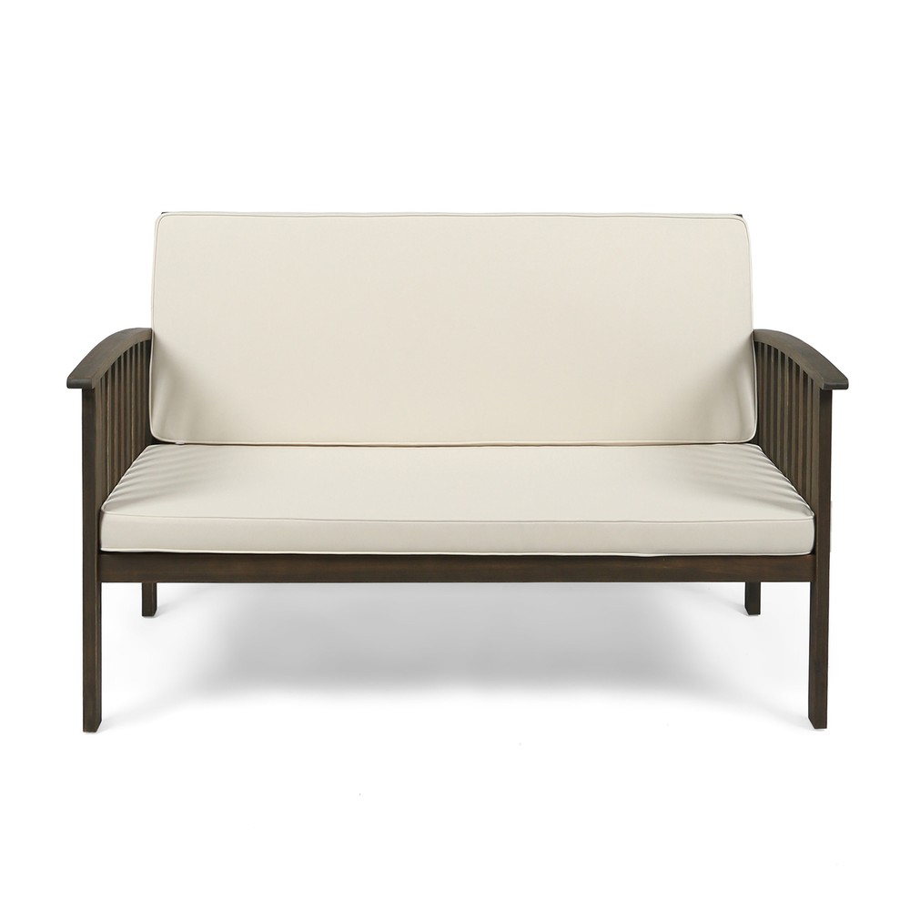 53 Inch Outdoor Garden Bench with Armrests and Cushion for Patio or Porch