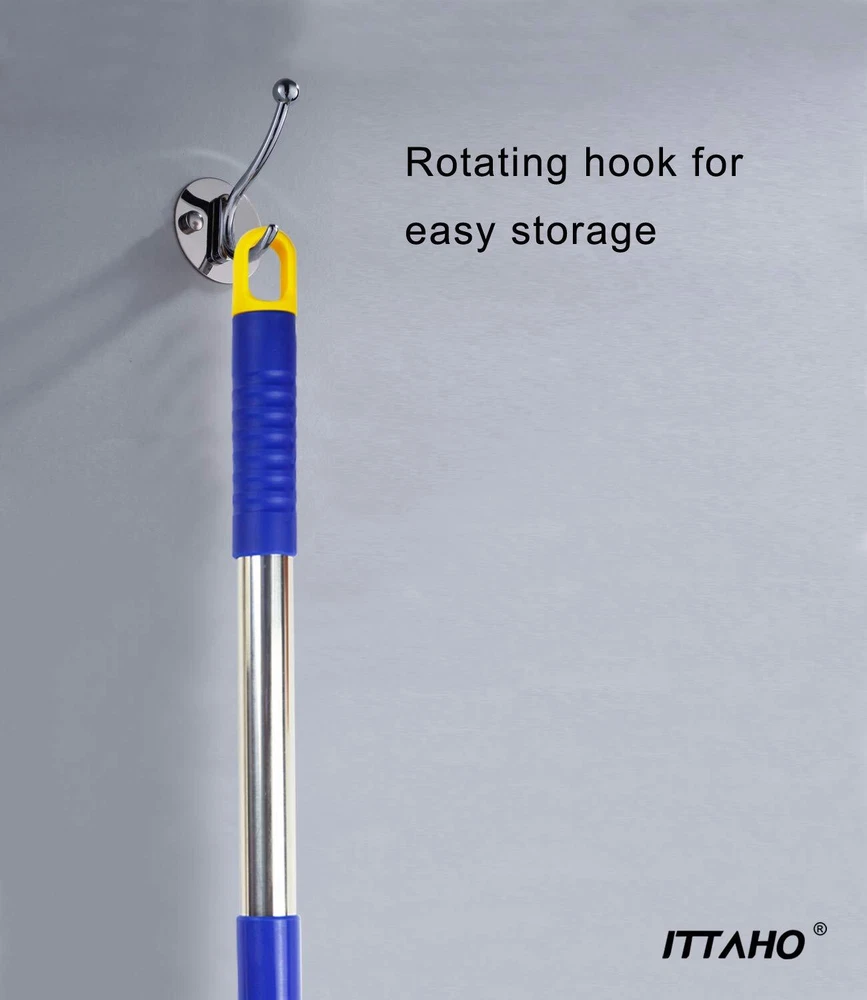 All-In-1 Window Cleaner Tool:Include 12 Inch window squeegee and 11 Inch microfiber scrubber in one unit with long handle.Natural rubber blade and special artwork of rubber provide you streak-free and squeak-free.The squeegee will effortlessly wipe away dirt and grime when combining with clean water and window cleaner.Thanks to 2-in-1 window squeegee,washing spot and wiping water,dont need to change the squeegee head. Desired for high windows, car windshield,shower glass doors Creative Swivel Design: What is the advantage of swivel design ? Not only for wide spaces, but also for narrow spaces. Press the yellow button to change the position of squeegee head,long handle squeegee enabling you to clean right up to width of the glass and the curved edge.A desired Spring cleaning tool for odd-shaped windows and narrow spaces.One outdoor window squeegee solve all window questions 53 Inch Long Sturdy Extenion Pole: Desired household window cleaning kit with 3 section of extension poles, you can adjust the length according to your needs.Easy to use Screw-on connection of pole. The stainless steel of pole is 30% studier than competitors. Not flimsy when cleaning high windows. All purpose squeegee window cleaner for auto,car windshield glass,household high window cleaning,indoor and outdoor,commercial and office cleaning Easy To Storage: Window squeegee with extension pole ,extension pole comes with rotating hook for convenient storage after finishing cleaning work. Re-usable microfiber scrubber support machine washable Easy To Storage: Window squeegee with extension pole ,extension pole comes with rotating hook for convenient storage after finishing cleaning work. Re-usable microfiber scrubber support machine washable