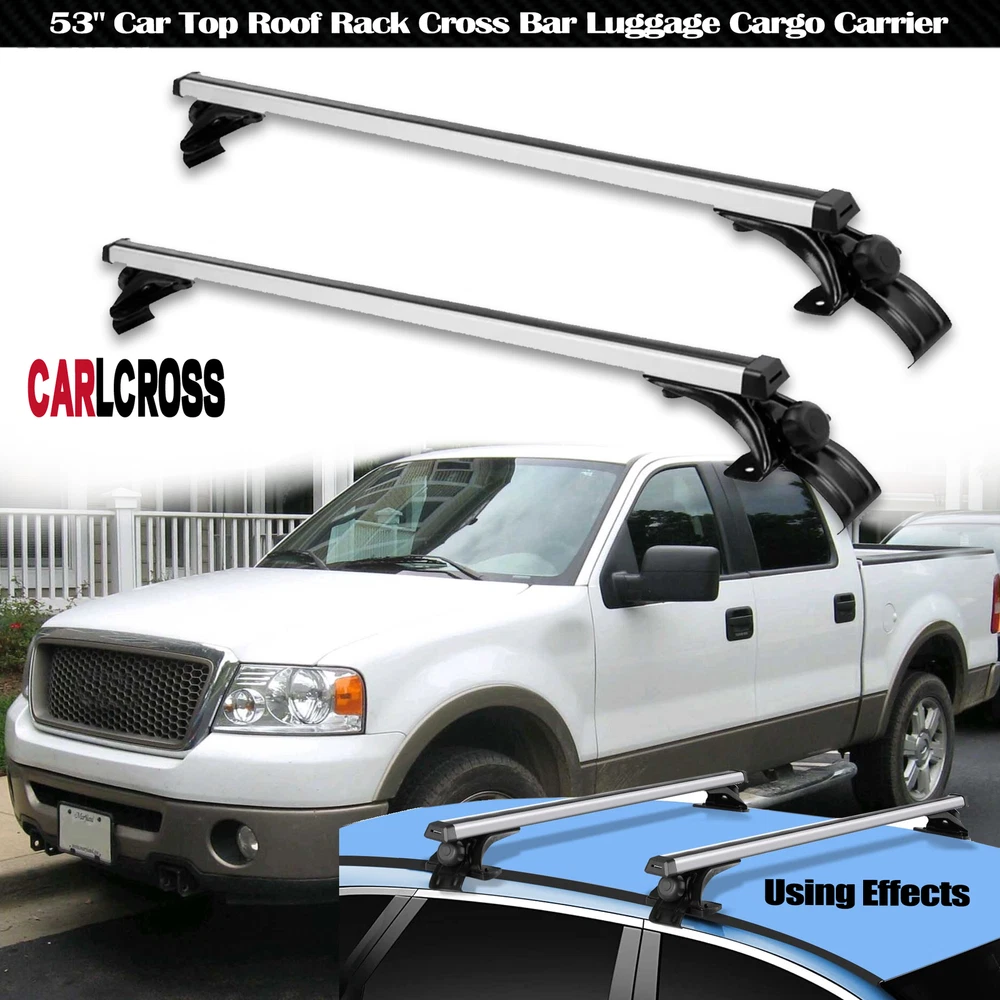 52" Universal Top Roof Rack Cross Bars For Car SUV w/Raised Rails Max.load 150LB 【FITMENT】-- Universal fit most vehicles without any type of side rails, apply to any vehicles with car roof width less than 1370mm(54") . The cross bars provide a perfect foundation for the installation of bike carriers, cargo boxes and other rooftop accessories. 【SAFETY】-- 3 Pair padded clips protect your vehicle from damage and scratches. Hook on car window frames,with skidproof rubber strap. 【HIGH QUALITY】-- Made of premium aluminum, light weight and durable. Load capacity 150lbs when load is evenly distributed. Provide plenty of space to your gear. 【EASY TO INSTALL】-- no drilling/cutting required, no side rails needed. Come with necessary installation tools, and easy to assemble and disassemble in a few minutes. Specific: Condition: New Color: Silver & Black Material: Aluminum Surface Finish: Smooth Aluminum Finish Rail: 53" In Length/ 135cm Weight Capacity: 150LB (68KG). Function: Perfect tool to hold the things when your are on holiday,Such as Cargo bags, Snowboards, Skis, Kayaks, Canoes, Bikes, luggages Package Included: a pair of cross bars, 4X mounting towers, 3 pair of mounting brackets Please check your car roof to make sure these cross bars fit your vehicle before you purchase. Warming Note: Apply to any Vehicles with Car Roof Length Less Than 137cm(54'') Professional installation is highly recommended if you don't know how to handle "Roof Top Rail Tower" is not required for this cross bars, please check above pictures for more details On Jan 16, 2025 at 11:53:13 PST, seller added the following information: