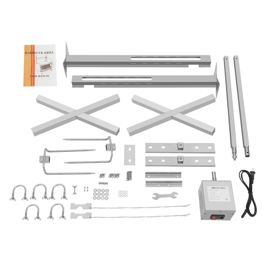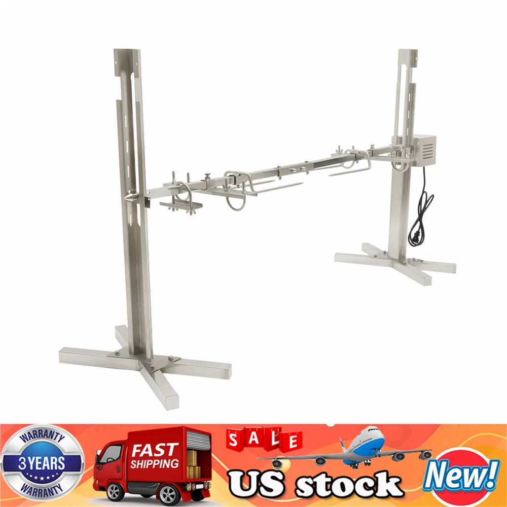 Note: Big torque of motor is 50-70Kgf.cm, it is not net weight,please understand it. Normally,the acutal weight is about 30kgs. Features: Wide range of applications: family, resort, barbecue bar, restaurant, Camping Voltage: 110V Material: Stainless Steel Max Load: 30kg Power: 15W Torque: 50-70KGF.CM Package Included: 1* motor 1* stainless steel grilling rod 2* special tools 2* stainless steel support rod 2* motor support piece 2* stainless steel grilled fork 2* stainless steel support feet 2* barbecue fixing bracket 8* screw nut Notes: When grilling, please keep the fire away from the grill motor. Please do not allow water to come into contact with the motor during use. 53 inch Large Spit Roaster Rotisserie Chicken Electric BBQ Grill Pig Lamb Roast! Description An electric rotisserie grill is a good helper in any party. It offers endless culinary possibilities, from succulent grilled fish to savory grilled chicken wings, providing the convenience and satisfaction of cooking on the go. The 360-degree rotation design sets your hands free and makes the food evenly heated. The matching accessories also can fix the food firmly. Such an excellent electric rotisserie grill can provide a wonderful and unforgettable outdoor cooking experience. Key Features Durable & Sturdy: This electric rotisserie grill is made of stainless steel with a polishing process, offering durability, sturdiness, hot resistance , and anti-friction for this product. Adjustable Height: The height of the electric rotisserie grill's rod can freely be adjusted (five holes on each side), which makes it easy for you to control the distance between food and fire source to more accurately grasp the softness and crispness of the food. Rotation Design: The rod of the electric rotisserie grill can rotate 360° when plugged in, and it not only can save labor but also can make food more evenly heated. High Load-bearing Capacity: The tough stainless steel material and 0.82-inch external diameter ma ke it have a maximum load-bearing capacity of 88.18 lbs, which can meet any party's needs. Easy to Clean: The detachable design and smooth surface make it simple to clean. When it is dirty, you can use a wet towel or rinse with water directly. Simple Installation: This electric rotisserie grill can be assembled easily by using screws, and the detailed installation instructions can help you quickly complete the installation. Safe to Use: The electric rotisserie grill is equipped with a fuse, which can automatically stop in case of overload and short circuit, offering high safety. Protective Packaging: This product comes in a custom sponge that resists common compression and falls to prevent product damage in transit. Details Power Switch: A red power switch can help you to turn on/off the electric rotisserie grill easily when you use it or not. Cooling Holes: The cooling holes on the surface of the motor have effective heat dissipation and provide good long-term performance. X-shaped Base: The base adopts the X-shaped bracket, which can enhance the stability and balance of the product and prevent it from flipping over. U-shaped Hooks: The U-shaped hooks allow food to be placed on the grill's rod stably and make the food grilled more thoroughly. Application The electric rotisserie grill can be used for grilling food such as fish, chicken, lamb, etc. in camping, birthday parties, weddings, etc Specifications Material: Stainless Steel Surface Treatment: Polishing Process Color: Silver Voltage: 110V Power: 25W Plug: US Standard Rotating Speed: 2.5r/min Grill's Rod External Diameter: 20.93mm/0.82inch Grill's Rod Adjustment Height: 38-60.5cm/14.96-23.81inch Overall Max Bearing Capacity: About 40kg/88.18lbs Gross Weight: 8.2 kg/18.07lbs Net Weight: 7.55 kg/16.64lbs Product Size: 136*39*75cm/53.54*15.35*29.52inch Package Size: 85*23*16cm/33.46*9.05*6.29inch Package Included 1*Electric Rotisserie Grill 1*English Manual All Accessories for Assembly Notes Please don't get too close to the fire to prevent the electric rotisserie grill's damage from high temperatures. Please don't get the motor wet when washing the electric rotisserie grill. Please allow the slight color difference caused by the shooting light and 1-3cm error due to manual measurement, and make sure you do not mind before you order. Payment Delivery details Terms of sales About us Contact us Payment We accept ebay payment 。 Fees such as import duties, taxes are not included in the item price or shipping costs. These charges are the buyer's responsibility. Delivery details Shipping: 2-9 working days to: USA Terms of sales We maintain high standards of excellence and strive for hundred percent customer satisfaction. Feedback is very important to us. We hope that you contact us immediately before you give neutral or negative feedback, so that we can address your concerns. It is impossible to address issues if we do not know about them! About us Your satis faction is our ultimate goal. We work hard to earn your trust and future business. Our certified technicians have tested each item before shipping. The unit comes with 1 year limited warranty on all manufacturing defects. a) If you receive a defective item, you may return it or ask for a discount. Please contact us within 14 days after you receive the package. b) What you returned must be intact and in its original packaging as re? u. Customer is responsible for shipping costs of the returned item. c) We will cover the cost of shipping back t with the shipping rate indicated in the registration page. We will send you a new unit or refund the full payment you paid. Thank you. Contact us Business Hour Business Hour: Monday To Friday: 8:30 AM to 5:00 PM (Beijing China time) Due to time zones, our reply to your questions may not be immediately. But within above working time, we will reply your email within 24 hours. If it's non-workdays, please kindly be patient and wait till Monday. Please contact us with ebay message. Please feel free to c