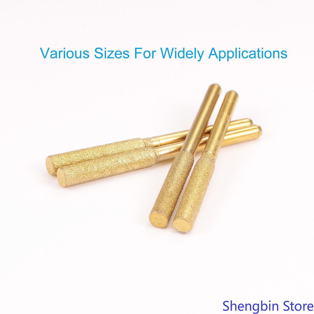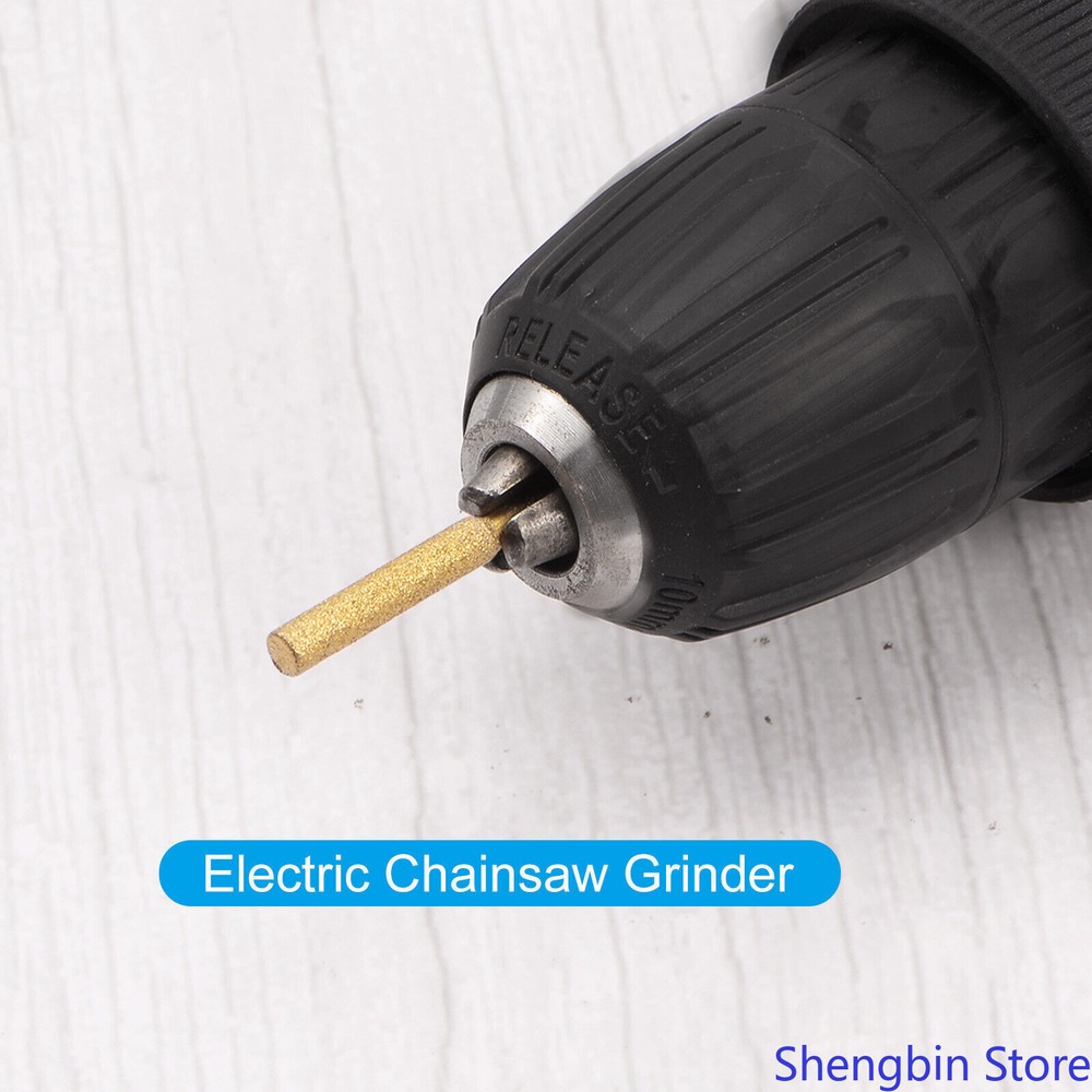 5/32" Diamond Chainsaw Sharpener Sharpening Stone Grinding File Gold 21pcs This stone file is suitable for surface graining, polishing, etc. of various materials such as metal, stainless steel, steel, copper, wood, and plastic. These diamond chainsaw sharpeners are widely used for grinding saw teeth, glass, jade, models, bearings, machinery, and metal rust removal. Specification Material: Hard Carbon Diamond Grinding Head Diameter: 4mm / 0.16 inch Grinding Head Length: 20mm / 0.79 inch Shank Diameter: 3mm / 0.12 inch Total Length: 50mm / 2 inch Packing List: 21 x Sharpening Stones Advantage 1. These chain saw sharpeners are forged with diamonds, they adhere tightly to the surface and are not easy to fall off. The particles are full and evenly distributed, which ensures the stable and efficient grinding of the chainsaw, and is hard and not easy to wear. 2. Wheel grinder replacement is easy to install and can be sanded without removing the chain. The grinding tool accessories save time and effort, and can effectively improve work efficiency, allowing you to complete grinding as soon as possible. Instruction Hold the handle and place the grinding head on the surface to be sanded and rub it back and forth. NOTE: Please check the size carefully before purchasing.