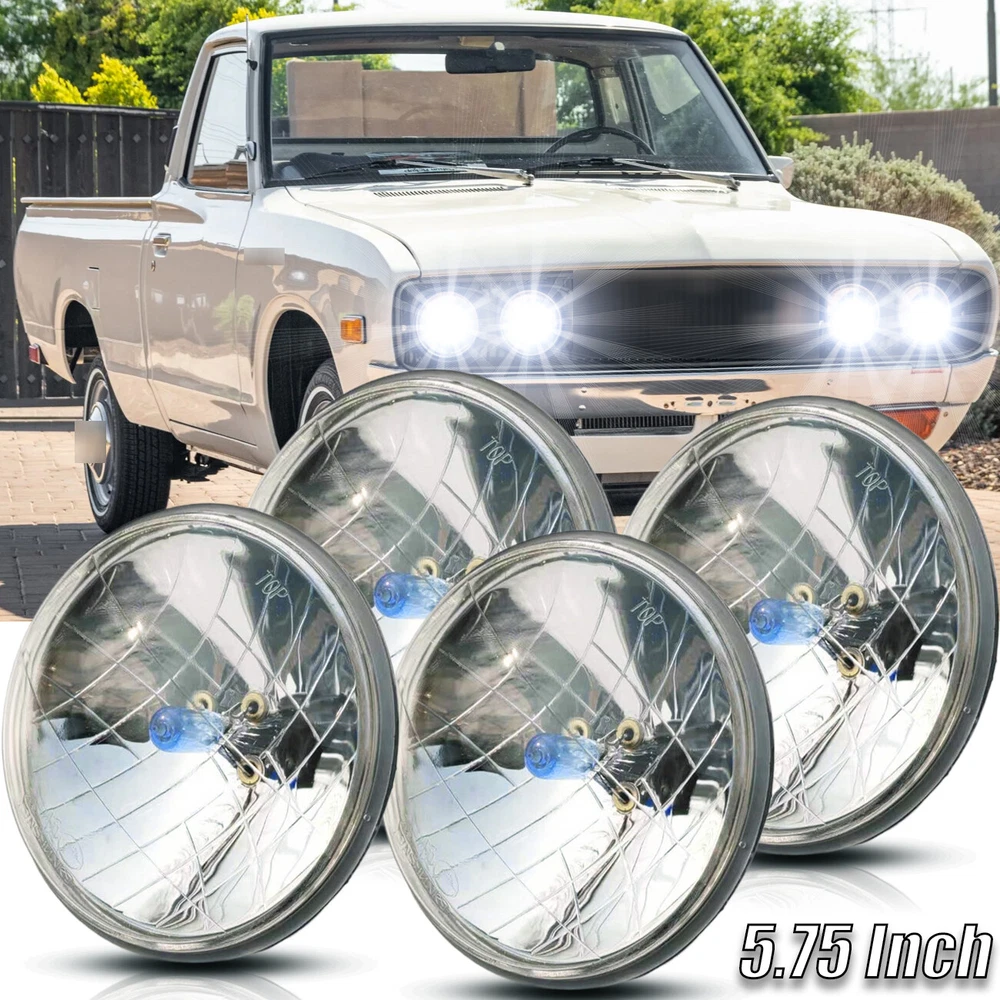 THESE ARE HALOGEN SEMI-SEALED BEAM STOCK STYLE GLASS FACED HEADLIGHTS WITH METAL BACKSIDES! REPLACEABLE SUPER WHITE 100/130 W HALOGEN H4 BULBS INCLUDED! Stock Style H4 Replacement Upgrade Headlights Pair - High Beam Headlight Pair 100/130W Dual Beam Super White Halogen Bulbs Glass Lens / Metal Backside DOT SAE Approved This listing is for 4 pcs new 5-3/4" stock style glass faced halogen H4 conversion headlight bulbs. These halogen semi-sealed beam headlights look almost the same as the original headlights your vehicle came with when it was new, except these light up 200% brighter then the stock style incandescent bulbs and take a replaceable 100/130W super white H4 bulbs. These have the original shaped prongs on the back so they will plug right into your original wiring harness plugs. These have the correct locating tabs on the backside to clock properly into the high beam headlight buckets. These are correct for any car or truck that has 4 round glass headlights. Each bulb is 5 3/4 inches in diameter. DOT SAE approved. Notes: 1. 100% Brand New in the box with manufacturer packaging, never been installed before. 2. Factory bolt-on OE fitment, no vehicle modifications are required; or replacement for the stock unit. 3. No installation guide or instruction included, professional installation recommended. 4. We Provide 60 day manufacturer warranty after you received this Item. Product Features: 1. Great upgrade for your vehicles exterior looks. 2. Direct replacement of the original lights, no modification needed,A great upgrade for your vehicle. 3. Precision optics offers a highly controlled concentration of light to enhance visibility. 4. Enhance visibility during night time, heavy rain, snow, or dense fog. 5. High quality OE grade materials to withstand the most rigorous weather conditions. 6. The Halogen bulbs are included. H4 bulb is compatible with the headlight. Package Includes: 4x Headlight (Pair Passenger and Driver Side) with Halogen Bulbs On Dec 16, 2024 at 17:48:31 PST, seller added the following information: