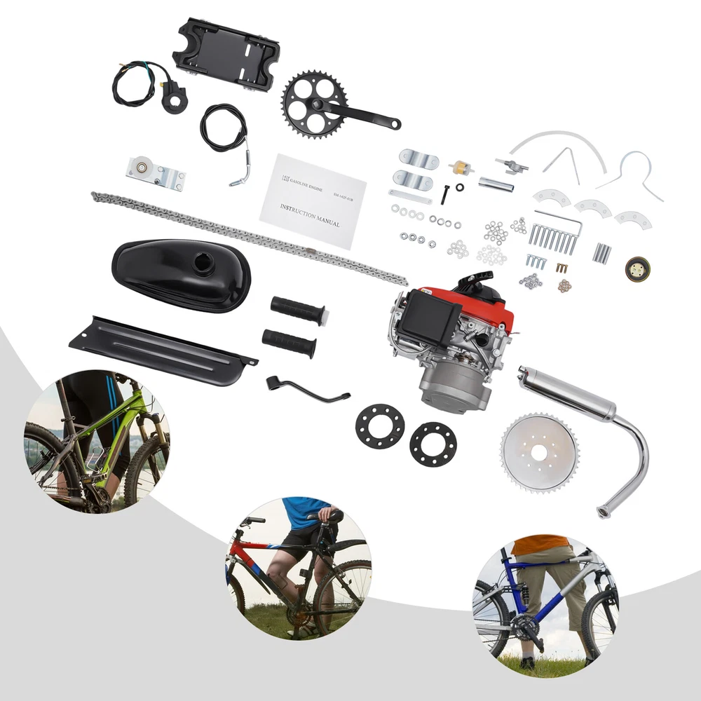 Package Includes: 1x 53cc 4 Stroke Engine 1x Gas Tank,Plastic Gasoline Fuel Line,Fuel Value 1x Adjustable Chain Idler 1x 44 Tooth 9 Hole Sprocket 1x Chain Guard 1x Extra Wide Crank/Sprocket 1x Fiber Sprocket Mounting Rings, 9 Sprocket Bolts, 3 Metal Retaining Segments 1x Engine Mounting Plate with Universal Mounting Brackets 1x Spark Plug Wrench 1x Misc.mounting Bolts with Nuts 1x Heavy Duty #415 Chain 1x Twist Grip Throttle with Built-in Kill Switch 1x Adjustable Throttle Cable 53CC 4-Stroke GAS MOTORIZED BICYCLE Bike Engine MOTOR KIT Chain Drive Air-cooled Bicycle Motorized 53cc 4-Stroke Gas Petrol Bike Engine Motor Kit Chain Scooter This 53cc 4 Stroke Pull Start Petrol Conversion Kit Is Used to Upgrade the Regular Bike to a Motorized Bike. After Converting Your Bike, You Can Enjoying Riding at a Faster Speed, Which Can Reach 38km/H. It Almost Runs As Fast As a Motorcycle or Scooter, Making Your Outdoor Trip More Convenient. This Engine Kit Fits Most 26" or 28" Bikes with V-frame. Features: This Engine Is a 4-Stroke Motor Engine Kits, Includes Everything a Motor Needs at a Economic Price This 4-Stroke Motor Is More Stable, More Reliable and Quieter than the 2 Stroke Rivals With Powerful Motor and 44 Tooth 9 Hole Sprocket, This Motor Is with Speed 27-32 Mph / or 43-51 Kph With 41.8 X 36 Mm Bore Stroke,49 Cm3 Displacement, Oil Tank Capacity 2.5l Fits Normal 28" V Frame Bike and 26" Atv Bike , Both with 28-40mm Frame Tube With This Bicycle Engine Kit, You Can Change a Bicycle into a Motorized Bicycle You Can Enjoy the Thrill of the Road Without Spending Money on a Motorcycle or Scooter Amplify Your Pedaling Power, Ride Farther and Faster or Simply Feel the Wind in Your Hair As You Zip Along at Super-speeds Specification: Engine Model: 142f Engine Type: Air-cooled, 4-Stroke, Ohv, Single Cylinder Bore X Stroke: 41.8 X 36 Mm (1.65 X 1.42 in) Displacement: 49 Cm3 (2.99 Cu in) Compression Ratio: 8.0 : 1 Net Horse Power Output: 1.6kw (2.1hp) at 7,000 Rpm Net Torque: 2.7 Nm (2.0 Lbs Ft) at 4,500 Rpm Pto Shaft Rotation: Counterclockwise (from Pto Shaft Side) Ignition System: Transistorized Magneto Ignition Starting System: Recoil Starter Carburetor Float Type Lubrication System: Forced Splash Governor System: Centrifugal Mechanical Air Cleaner Semi-dry Type Oil Capacity(for Luburati Oil): 0.25l (0.26 Us Qt, 0.22 Imp Qt) Fuel Tank Capacity: 0.77l (0.81 Us Qt) Fit: Fits Normal 28" V Frame Bike and 26" Atv Bike , Both with 28-40mm Frame Tube Note: The Motor Is Equipped with Two Chains. One Is Inside and the Other Is Outside. If Your Bike Has One Piece Cranks You Will Need a European Bottom Bracket Adapter for the Wide Cranks to Be Installed. Package Includes: 1x 53cc 4 Stroke Engine 1x Gas Tank,Plastic Gasoline Fuel Line,Fuel Value 1x Adjustable Chain Idler 1x 44 Tooth 9 Hole Sprocket 1x Chain Guard 1x Extra Wide Crank/Sprocket 1x Fiber Sprocket Mounting Rings, 9 Sprocket Bolts, 3 Metal Retaining Segments 1x Engine Mounting Plate with Universal Mounting Brackets 1x Spark Plug Wrench 1x Misc.mounting Bolts with Nuts 1x Heavy Duty #415 Chain 1x Twist Grip Throttle with Built-in Kill Switch 1x Adjustable Throttle Cable Payment Delivery details Terms of sales About us Contact us Payment We accept ebay payment 。 Fees such as import duties, taxes are not included in the item price or shipping costs. These charges are the buyer's responsibility. Delivery details Shipping: 2-9 working days to: USA Terms of sales We maintain high standards of excellence and strive for hundred percent customer satisfaction. Feedback is very important to us. We hope that you contact us immediately before you give neutral or negative feedback, so that we can address your concerns. It is impossible to address issues if we do not know about them! About us Your satis faction is our ultimate goal. We work hard to earn your trust and future business. Our certified technicians have tested each item before shipping. The unit comes with 1 year limited warranty on all manufacturing defects. a) If you receive a defective item, you may return it or ask for a discount. Please contact us within 14 days after you receive the package. b) What you returned must be intact and in its original packaging as re? u. Customer is responsible for shipping costs of the returned item. c) We will cover the cost of shipping back t with the shipping rate indicated in the registration page. We will send you a new unit or refund the full payment you paid. Thank you. Contact us Business Hour Business Hour: Monday To Friday: 8:30 AM to 5:00 PM (Beijing China time) Due to time zones, our reply to your questions may not be immediately. But within above working time, we will reply your email within 24 hours. If it's non-workdays, please kindly be patient and wait till Monday. Please contact us with ebay message. Please feel free to contact us if you have any questions. Monday To Friday: 8:30 AM to 5:00 PM (Beijing China time) Due to time zones, our reply to your questions may not be immediately. But within above working time, we will reply your email within 24 hours. If it's non-workdays, please kindly be patient and wait till Monday. Please contact us with ebay message. Please feel free to contact us if you have any questions. Feature stable performance,Safe to Use Features Easy installation,Compact Design Manufacturer Warranty 3 Years Engine Size (L*W*H) 40*32*35.5cm/15.7*12.6*13.97inch Max. Torque 2.0Nm/4500rpm Bore&Stroke 41.8*35.8mm/1.65*1.4inch Engine Type OHV, Single Cylinder Assembly Required Yes Model 142F-1-G Stroke Type Four-Stroke Max. No-load Speed 7500rpm Engine Idle Speed 1800±152rpm Fuel Consumption 480g/kw Hour Rotational Speed 6800rpm Engine Cooling Forced Air Starting System Hand-pull Start Fuel Tank Capacity 2L/67.6oz Engine PTO Rotation CCW Crankcase Oil Volume 0.25L/8.45oz Displacement 49cc Governor System Fuel Gate Speed Control Power 1.4kw Compression Ratio 7:4 Fuel Type Gasoline(#92/95) Ignition System TCI Material Steel, Aluminum Alloy