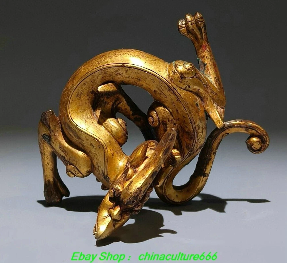 Region of Origin: China Seller Notes: “5.3"Old Chinese Han Dynasty Bronze Ware Gold Dragon Loong Statue Sculpture” Primary Material: Bronze Ware Maker: Size: Height 3.5 Long 13.5 Breadth 4.0 ( inch)