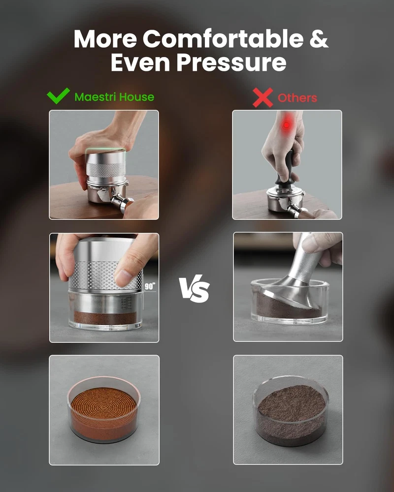 Precision Fit: 53mm stainless steel tamper, tailored to Breville's 54mm portafilter baskets, compatible with Barista Express, Pro, Touch, Bambino Plus, Infuser, and Duo-Temp Pro 30lb Spring Loaded: Built-in dual springs provide 30lb of pressure for more effortless use, non-slip texture, frosted texture, great experience for baristas. More Comfortable & Even Pressure: Revolutionize tamping with our ergonomic, handle-free tamper. Its cylindrical shape offers auto-leveling for an even press, reducing RSI risks. Enjoy a more comfortable coffee making process. Consistent Extraction: Ensure uniform grounds distribution and pressure, empowering you to effortlessly craft the perfect shot at home. High-quality for Baristas: Master Your Brew with the 53mm Coffee Tamper! Its stainless steel design and threaded base optimize extraction, giving you even, flavorful shots every time. Elevate your home barista game and explore a world of coffee perfection. Pro Tips: Fill your portafilter basket with coffee grinds for optimal tamping pressure, yielding a tighter pack and richer flavor. Groom the basket's top with a finger or flat edge before leveling and tamping. Brew with premium filtered water for the best results.