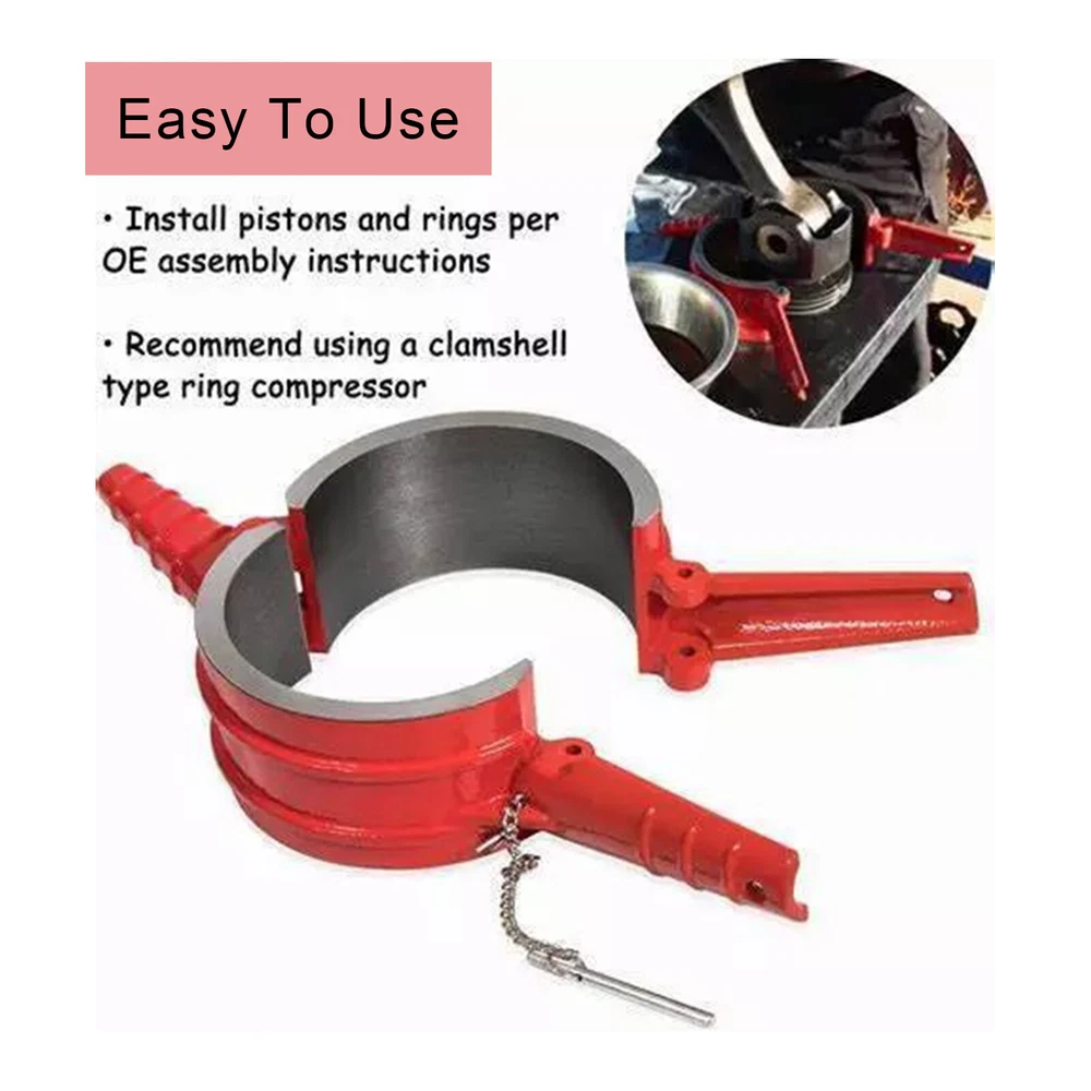 This piston ring compressor is a must-have for Cummins ISX and Caterpillar 3400 series engines! The sturdy cast steel construction ensures durability and corrosion resistance, making installation smooth and safe. Perfect fit for 5.4" bore engines, it prevents broken rings and simplifies piston assembly. A reliable alternative to PT-7040—highly recommended for hassle-free engine maintenance!