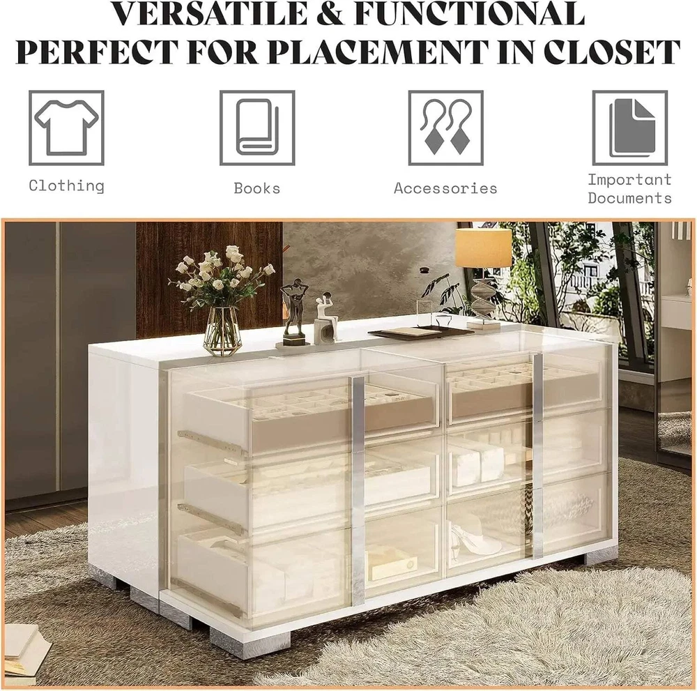 54 Inch High Gloss 6 Drawer Dresser Modern Chest for Bedroom Storage