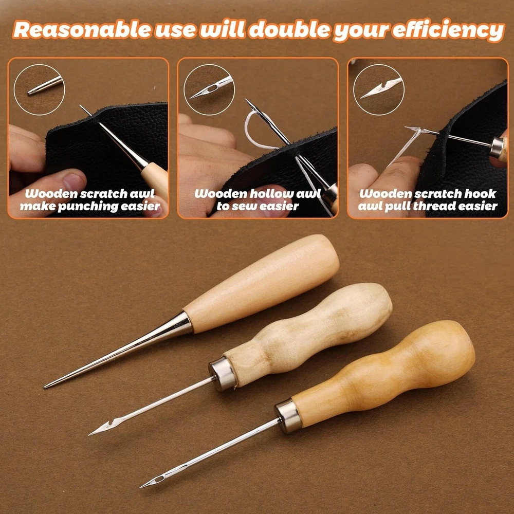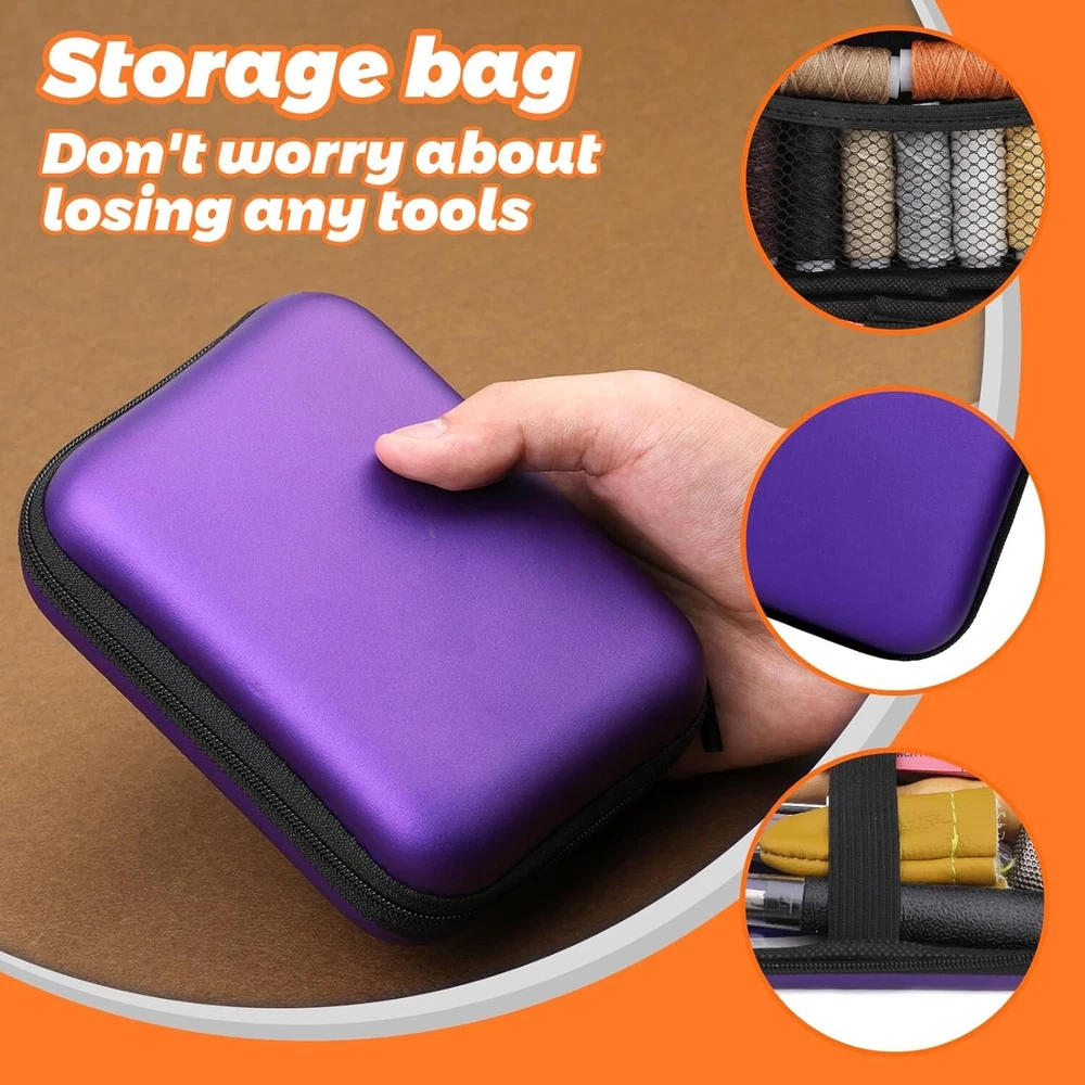 Tikjiua 54Pcs Upholstery Repair Sewing Kit, 8Pcs Waxed Thread, Leather Sewing Needles, Stitching Awl, Thimble, Heavy Duty Upholstery Repair Kit for Carseat Backpack Carpet Boots Shoes Canvas Sofa Product Description: Upholstery Repair Kit Includes: The leather stitching kit contains 34pcs upholstery needles for hand sewing, needle threaders, seam rippers, tape measure, thimble, 8 pcs commonly used upholstery thread, leather stitching awl, scissors, fingercots, sewing kit storage bag and etc. Compact leather sewing tools come in a full range of sizes to meet your basic leather sewing needs. Leather Needles for Hand Sewing--A wonderful upholstery leather sewing kit with the necessities you'll need for starting repairs of leather. High-quality leather needles for hand stitching, curved needles, thread, scissors, a thimble, etc. If you'd rather make repair yourself to replace items with minor damage, this is the heavy-duty sewing kit for you. Plus you will get a satisfying feeling of satisfaction when it's done! Heavy Duty Leather Sewing Kit--Great leather sewing repair kit for DIY leather sewing projects. This is a great leather needle and thread kit for beginners or those with basic needs. It has a curved needle which is very helpful as well as metal thimbles which are essential when working with leather. If you use the sewing repair kit through super thick denim and fleece fabric and it will work great too! Upholstery Needle and Thread--Used for repairing leather truck seats, the leather sofa, couches, canvas, shoes, leather gloves, and stitching up a backpack shoulder strap that was coming undone, worked perfectly to add more life to a very good gloves backpack! Leather Stitching Kit--This little heavy-duty leather sewing kit is great and will meet your needs nicely. if you repair the leather recliner arm where the seam had come apart, many colors of thread in the kit are a perfect match. Suitable for car leather seat repair, leather sheaths and holsters, leather purses,s and leather handles of bags.Can also be used for leather jewelry making. Tikjiua Heavy Duty Leather Sewing Kit A wonderful upholstery leather sewing kit with the necessities you'll need for starting repairs of leather. High-quality leather needles for hand stitching, curved needles, thread, scissors, a thimble, etc.This upholstery repair sewing kit comes in a full range of sizes to meet your basic leather making needs. About Tikjiua Our brand is committed to providing high-quality DIY crafting tools, such as needle felting tools, leather working tools, elastic threads, floral making tools, crochet yarn and hooks sets, etc. Tikjiua, DIY Crafts Tools Brand Shop Tikjiua - Upholstery Needle and Thread Durable and Easy to Use Compact leather needles and thread kit is used for repairing leather truck seats, the leather sofa, couches, canvas, shoes, leather gloves, and stitching up a backpack shoulder strap that was coming undone, worked perfectly to add more life to a very good gloves backpack! This is a great leather sewing kit for beginners or those with basic needs. It has a curved needle which is very helpful as well as metal thimbles which are essential when working with leather. Widely Used in Leather Sewing This heavy-duty leather sewing kit is great and will meet your needs nicely. if you repair the leather recliner arm where the seam had come apart, many colors of thread in the kit are a perfect match. Suitable for car leather seat repair, leather sheaths and holsters, leather purses,s and leather handles of bags.Can also be used for leather jewelry making. Great Leather Sewing Kit for Beginners This leather sewing kit is used for reparing leather truck seats, leather sofa, leather gloves and to stitch up a backpack shoulder strap that was coming undone,worked perfectly to add more life to a very good gloves backpack! It is ideal as a good kit for family and friends!