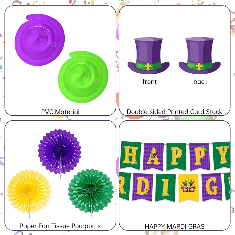 Store New Arrivals Add to Favorite View Feedback Contact 54 Pieces Mardi Gras Party Decorations and Supplies Set, Purple Green and Gold Party Decorations for New Orleans Mardi Gras,Fat Tuesday Decorations Description Item model number hz2212311514 Unit Count 38.0 Count Color Mardi Gras Pattern Mardi Gras Material Paper Country of Origin China Item Weight 13.4 ounces Theme Mardi Gras Manufacturer recommended age 14 years and up Occasion Birthday Package Dimensions 7.68 x 6.3 x 2.09 inches Included Components function(f) {var _np=(window.P._namespace("DetailPageProductOverviewTemplatesJava"));if(_np.guardFatal){_np.guardFatal(f)(_np);}else{f(_np);}}(function(P) { P.when('A').execute(function(A){ A.on('a:truncate:po-attribute-truncate-2:updated', function(data) { var isTruncated = !data.truncateInstance.getIfTextFits(); var seeMoreElement = document.getElementById('po-attribute-see-more-id-2'); if(seeMoreElement) { seeMoreElement.style.display = isTruncated ? '' : 'none'; } }) }); })); Carnival Banner Decoration, Double-sided Cardstock, Hanging Swirls, Letter Cards, Paper Lanterns, Installation Accessories See more Mardi Gras party decoration kit: You will receive 1 piece of carnival banner decoration, 12 piece double-sided cardstock in 6 designs, 12 piece of Mardi Gras hanging swirls in 2 color, 17 piece letter cards, 12 piece of paper lanterns in 3 colors, and other iinstallation accessories. Premium material: These Mardi Gras party ceiling decorations are made of metallic foil and premium card stock, which is not fragile and not easy to bend. The masquerade dancing background hanging swirls and strings can be used many times on different occasions. Attractive design: Mardi Gras decorations feature purple, gold and green, which are the classic colors of the carnival. Add crown, fleurs-de-lis, drum, top hat and other patterns to help create a party atmosphere. Compared with others, our package includes garlands, cards, banner, pompoms, hanging swirls and other ornaments to meet your needs. Easy to assemble: Each kind of decoration has its own packaging, with its own small tools for installation such as strings, double-sided tape, clips, etc. Almost all ornaments have holes for you to install. Wide application: Mardi Gras carnival masquerade dancing background is applicable to carnival, Fat Tuesday themed celebration, birthday, baby shower, wedding, anniversary, masquerade party and various indoor or outdoor parties with Mardi Gras theme. Package include: Mardi Gras party ceiling decorations* 54 pieces Size: As picture shown Material: Paper + PVC Color: Green, purple, gold Occasion: Mardi Gras, Fat Tuesday Notice: The colors of these compressed facial sponges may exist slight difference due to different screens. ABOUT US We offer the best prices around on high quality products. Our E-store includes media such as books, movies, music and games while offering electronics, toys, sporting apparel, clothing, tools, general home, garden items and more. SHIPPING We are always working hard to ensure your package arrives as soon as possible. Please understand that some factors like weather, high postal traffic, and the performance of shipping companies are outside of our control. We offer free shipping to the lower 48 states and ship within 2 business days of payment, usually sooner. We do not accept P.O. Boxes. Please provide a physical address. For shipping outside of the continental USA, we only use eBay's Global Shipping Program.The item is shipped to KY and then sent to the rest of the world. International customers are responsible for all duties and taxes. Continue to check out in order to calculate costs for shipping the item to your country. Messages regarding eBay's Global Shipping Program MUST be directed at eBay EXCLUSIVELY. RETURNS We offer a 30-Day Return Policy on items which you are not completely satisfied with. You have the option for a full-refund or an exchange of the item. No returns are available on items shipped outside of the USA. PAYMENT We accept PayPal. CONTACT US This page content is yet to come Please ad us to your favorite seller and visit again later Thank You CUSTOMER SATISFACTION We try our very best to make sure every customer is completely satisfied. If there's a problem, message us! We're happy to help. WE ACCEPT Copyright © 2021 AutoDS. | All Rights Reserved