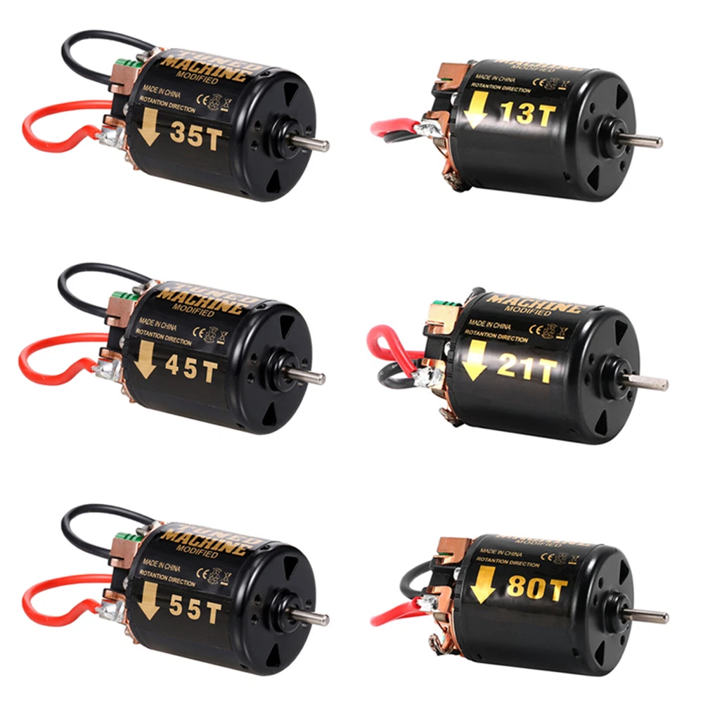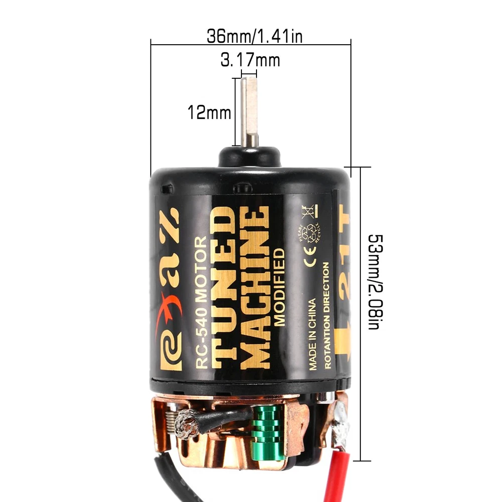 You may also like Universal Front/Rear CVD Drive Shaft For 1/10 ECX 2WD Circuit Ruckus Torment RC 19.59 USD 20.62 USD Free shipping 5% off 10PCS M3 CNC Round Aluminum Alloy Flat Spacer Washer Screw Gasket For RC 5.72 USD 6.02 USD Free shipping 5% off 10~100Pcs M3 Color Aluminum Column Round Alloy Lightweight Standoff Spacer Stud 10.23 USD 10.77 USD Free shipping 5% off Metal Upgrades Parts Kit for WLtoys 144001 124018 124019 Toy Rc car Replacement 27.29 USD 28.73 USD Free shipping 5% off 40-42mm Motor Heatsink with Dual Cooling Fan for 4268 4274 1/8 1/10 RC Motor 18.72 USD 19.7 USD Free shipping 5% off For Axial SCX6 1/6 RC Crawler Truck Adjustable Metal Tow Trailer Hitch Bracket 24.93 USD 26.24 USD Free shipping 5% off RC Motor Fan Cooling Heatsink for 540 550 3650 3660 Brushless Motor 8.4V New 14.55 USD 15.32 USD Free shipping 5% off Aluminum Front Rear Chassis Brace Tower 9520 9521 For 1/8 Traxxas SLEDGE 95076 57.73 USD 60.77 USD Free shipping 5% off 2x Metal Rear Suspension Arm Link Fit For RC 1/12 WLtoys 12428 12423 FY-03 Car 11.64 USD 12.25 USD Free shipping 5% off Front + Rear Diff GearBox for Traxxas 1/10 Rustler Hoss Slash Stampede 4x4 VXL 25.87 USD 27.23 USD Free shipping 5% off 4Pcs RC Car Wrench 3/3.2/3.5/3.7/4/5/5.5/6mm Turnbuckle Ball End Joint Remover 17.83 USD 18.77 USD Free shipping 5% off Full Set Aluminum Alloy RC Upgrades Parts For LOSI 1/10 LASERNUT ULTRA4 U4 16.19 USD Free shipping Feature: 100% brand new 540 3-Slot Brushed Waterproof Motor Rebuildable with an easily accessible commutator and brushes and springs High strength magnets for unmatched brush-motor performance Specifically designed for R/C vehicles that require precise movement control Excellent torque and long-run times Direct-Solder Wiring Tabs for flexible soldering options Dual-ball Bearings Design Suit for 1/10 RC Crawler Axial SCX10 AXI03007 90046 Traxxas TRX4 D90 MST Specifications: Motor diameter: 36mm Motor shaft length: 12mm Shaft diameter: 3.17mm Use voltage: 7.4V Weight: 184g Package List (Optional): 1 x 13T Motor OR 1 x 21T Motor OR 1 x 35T Motor OR 1 x 45T Motor OR 1 x 55T Motor OR 1 x 80T Motor