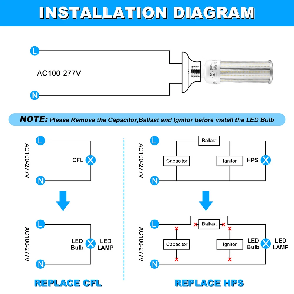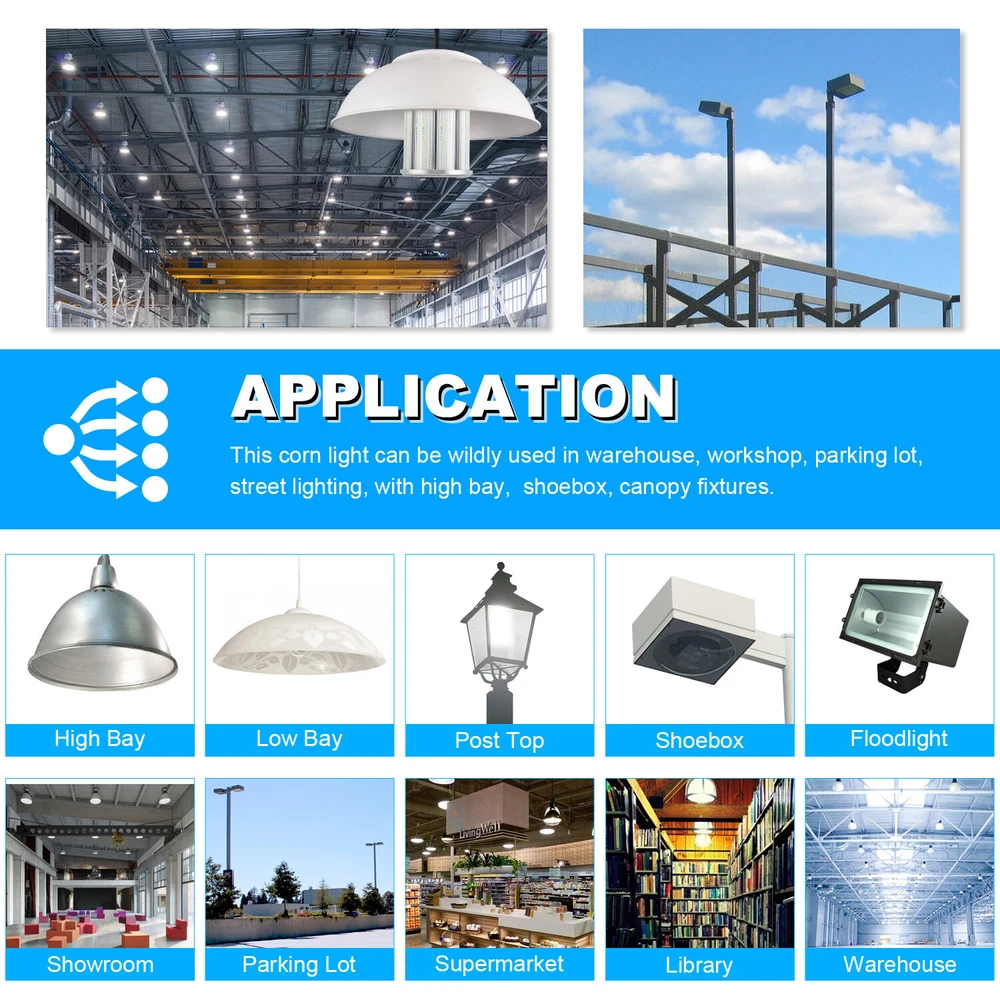 Product Description 54W LED Corn Light Bulb 5000K Daylight Warehouse Workshop High Bay Lamp E39 Base Specification Rated Power: 54W Base Code : E39 Light Bulb Base Type : Medium/Mogul Power Factor: >90% Input Voltage: AC100-277V 50/60Hz LED Type:SMD2835 LED chips with 130-150Lm/W Luminous Flux(lm): 7,830Lm Color Temperature: 5,000K Color Rendering Index (RA) : >80 PFC: >90% Materials: Aluminum+ASA Certification: cUL&DLC Not dimmable High Lumens Output With a lumen output of 7,830 Lumens and Lumen Efficacy of 145 Lumens/Watt, Our LED retrofit corn light bulb will bring in more brightness than any traditional MH light. 10 Years lifespan With a lifespan of 50,000 hours which means it can work for more than 10 years if it works 13 hours a day. this premium LED bulb will have your back for years. Save up to 80% on Your Energy Bill A replacement to 100-200 Watt Metal Halide bulb, the LED retrofit corn bulb helps save up to 80% on your energy bill. Low Maintenance cUL listed ensure the bulb quality. Our support cover any defects or quality control issues and will keep you on the safe side. It will reduce maintenance costs too. cUL Listed Our LED retrofit corn bulbs are all commercial and industrial grade. Compare with the other cheaper LED bulb, ours have successful won cUL listed. High Quality LED Driver LEDs have long lifetimes if powered by a quality driver. Constructed of fully sealed driver, 6000K high voltage surge tested ensure the LEDS safety. Die-casting Heat Sink Die-casting heat sink increases thermal transmission. Our LED corn bulbs don't have fans but still can use in enclosed fixtures. No fan, No Noise. E26/E39 Base Easy "upgrade" to an existing light fixture with E26/E39 Base. About Us Payment Shipping Terms Returns Contact Us 1. 10 Years LED Light Manufacturer 2. Certified Safety LED Light Products 3. US Warehouse Fast & Convenient Delivery 30,000 sq.ft production area &100 employees professional team. UL,cUL,cETL,ETL,DLC approved products standard produce by certified request. 6 separately production line strictly control quality & speed production Professional Aging test machine&SMT Machine&IES test system&Reflow oven 1. We only accept payment by PayPal . Your ebay address must match your paypal address. PO BOX can not delivered. 2. Please make payment within 7 days. If you don't need it, please inform us to cancel it, for eBay will open UNPAID dispute automatically in eighth day. 3. Paypal allows you to complete your purchase quickly and securely. It offers a variety of payment options including all the major card carriers. ★★★ ★ ★ USA Warehouse! 2-5days Fast shipping! 1. We will ONLY ship item to eBay physical Paypal address. Your eBay address must match Paypal address. 2. We ship daily Monday - Friday . All orders will be shipped within one working day after payment. 3. Tracking number will be upload on ebay within 24 hours after shipment. 4. Shipping Time: 2-5 working days for US buyers. ★ ★ ★ All of our products are shipped from our 3 different warehouses in the US.(KY/OH/TX) 1. Please kindly CONTACT US via eBay message if there is any problem, instead of Open Case or Return Requests, We will always try our best to solve the problem for you. 2. We provide a 30 days satisfaction or return guarantee for exchange or refund. 3. The package must be in its original packaging and include all of the original accessories or items that came with it when returning an item. The item and package should be in original and perfect condition. 1. Sellers pay return shipping costs. Sellers pay for return, replacement or exchange shipping if there's a problem with the item. For example, if the item a. Doesn't match listing description b. Damaged or defective when received c. Missing spare parts d. Counterfeit or imitation goods 2. Buyers need to pay return shipping costs. If the buyer changes mind about a purchase and wants to return an item, there may need to pay return shipping costs. For example a. Chose the wrong size or feel that the product is not suitable for buyers himself b. No need this product after received c. Find a more suitable price elsewhere than choose a return. 1.Office Time: 9:30 - 18:30, Monday - Saturday (UTC+8) 2.Please contact us with eBay Messa ge . 3.We will respond you within 24 hours on business day. Your feedback is very important to us, please leave us a Positive Feedback with all 5-star for the Detailed Selling Rating when you received the item. If there is some problem about the product, please take communication with us before leaving neutral/negative feedback or opening ebay/paypal case, we will do our best to resolve your problem. We try our best to reply to your emails as soon as possible, however, due to high volume of daily incoming emails and time zone difference; we may not be able to reply your emails immediately. Please allow 24 business hours for us to response. About Us 1. 10 Years LED Light Manufacturer 2. Certified Safety LED Light Products 3. US Warehouse Fast & Convenient Delivery 30,000 sq.ft production area &100 employees professional team. UL,cUL,cETL,ETL,DLC approved products standard produce by certified request. 6 separately production line strictly control quality & speed production Professional Aging test machine&SMT Machine&IES test system&Reflow oven Payment 1. We only accept payment by PayPal . Your ebay address must match your paypal address. PO BOX can not delivered. 2. Please make payment within 7 days. If you don't need it, please inform us to cancel it, for eBay will open UNPAID dispute automatically in eighth day. 3. Paypal allows you to complete your purchase quickly and securely. It offers a variety of payment options including all the major card carriers. Shipping ★★★ ★ ★ USA Warehouse! 2-5days Fast shipping! 1. We will ONLY ship item to eBay physical Paypal address. Your eBay address must match Paypal address. 2. We ship daily Monday - Friday . All orders will be shipped within one working day aft
