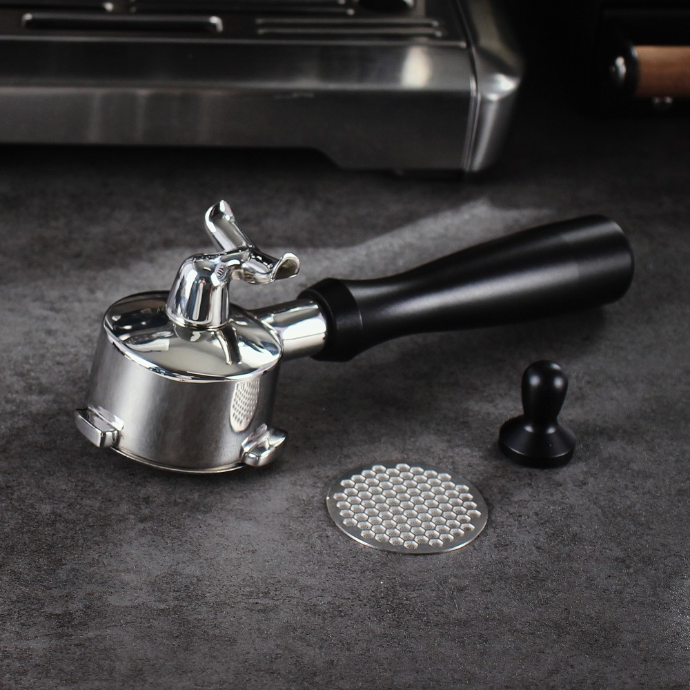 54mm Double Spouts Portafilter For Breville BES870XL BES840BS BES810BSS BES880 Descriptions: --High Quality: Made of food-grade 304 stainless steel its exceptional resistance to oxidation, corrosion, and rust, which ensures that your coffee stays free from any unwanted impurities. --Filter Basket & Puck Screen: Includes two removable filter basket with the capacity of 16g and a puck screen. The basket can be swapped for different sizes, while the puck screen reduces splashing and prevents coffee grounds from contacting the group head, keeping it clean. --Ergonomic Design: The handle is made of aluminum alloy which provide a natural grip, ergonomic design also ensure that it remains stable extracting process. --Detachable Espresso Portafilter: The filter basket and aluminum handle of this portafilter can be disassemble, convenience to clean. --Supplied with Puck Screen magnet: Easy to remove the puck screen. Specifications: Condition: Brand New Type: Double Spout Portafilter Material: Stainless Steel + Aluminum Size: 54mm Color: Chrome + Black Fitment: Compatible with Breville BES810BSS, BES840BS, BES840CB, BES840CRN, BES870XL, Barista Express BES870, Fresca BES860, The Barista Express BES870BSS, The Infuser BES840, BES880, BES878, BES876, BES890 Package Includes: 1 x Portafilter 1 x Double Shot Basket 1 x Puck Screen 1 x Puck Screen Magnetic Removal Tool