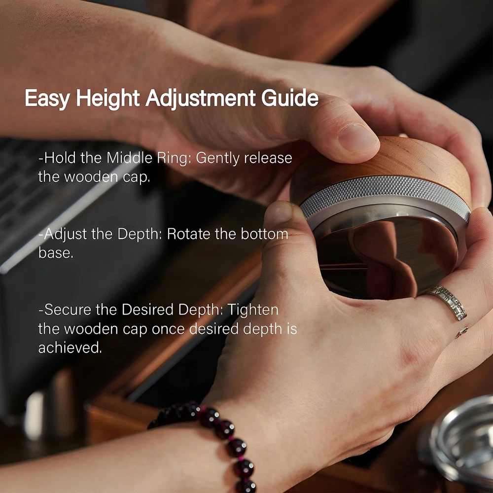 Perfect Fit for Breville: Designed with precision, this 53.3mm adjustable distributor is optimized for 54mm Breville portafilters, ensuring a superior fit and even coffee distribution compared to standard 53mm distributors Precision Coffee Leveling: Achieve barista-quality shots with this distributor's adjustable depth and innovative base design, which effortlessly flattens coffee without pressure, optimally preparing it for tamping Elegant Ergonomic Design: Our coffee bed equalizer distribution tool a beautifully crafted ergonomic rosewood handle that combines aesthetic appeal with a comfortable grip, making coffee leveling a pleasurable experience. Perfect Gift for Breville Owners: This espresso leveling tool is an essential addition to any Breville espresso machine owner's tool kit, making it an exceptional gift for coffee enthusiasts. Complete Your Espresso Kit Setup: Pair this 54mm espresso grounds flattener with other top-notch espresso tools for the ultimate coffee-making experience. Perfectly compatible with coffee tamper, tamping station, portafilter, bean cellar, knock box, and WDT tool.