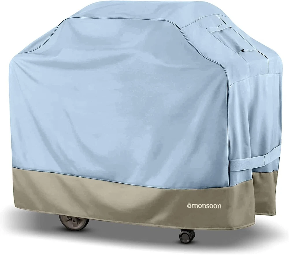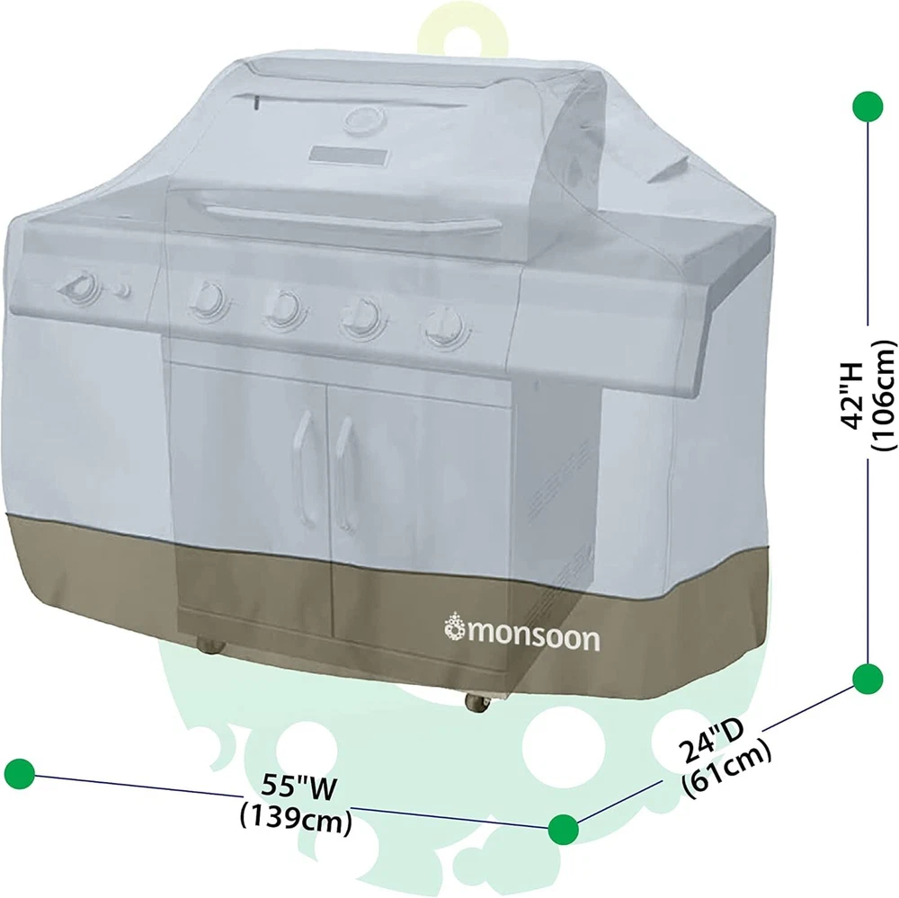 55" Grill Cover For Royal Gourmet CD1224A & Weber Spirit E310, E315, E320, E330 OXFORD 600D with PVC Backing, UV Treated - Non-Fading, Waterproof, Heavy Duty, High strength fabric for durability, Keeps furniture bone dry. WEATHERPROOF AND WATER-RESISTANT - The eco-friendly fabric features an elegant water-repellent top with a protective water resistant laminated undercoating and a protective dark splash guard skirt. STAYS ON SECURELY - Click-close straps snap around legs to secure cover in the wind, and an elastic hem cord with toggle allows adjustment for a tight and custom-like fit. DUAL-TONE COLOR - The covers come in elegant dual tone colors - light green on the main body, and a darker shade on the bottom. Note that the color might seem darker for the first few days, before it lightens up a little with exposure to sunlight. Thank you for viewing our 55" Grill Cover For Royal Gourmet CD1224A & Weber Spirit E310, E315, E320, E330.