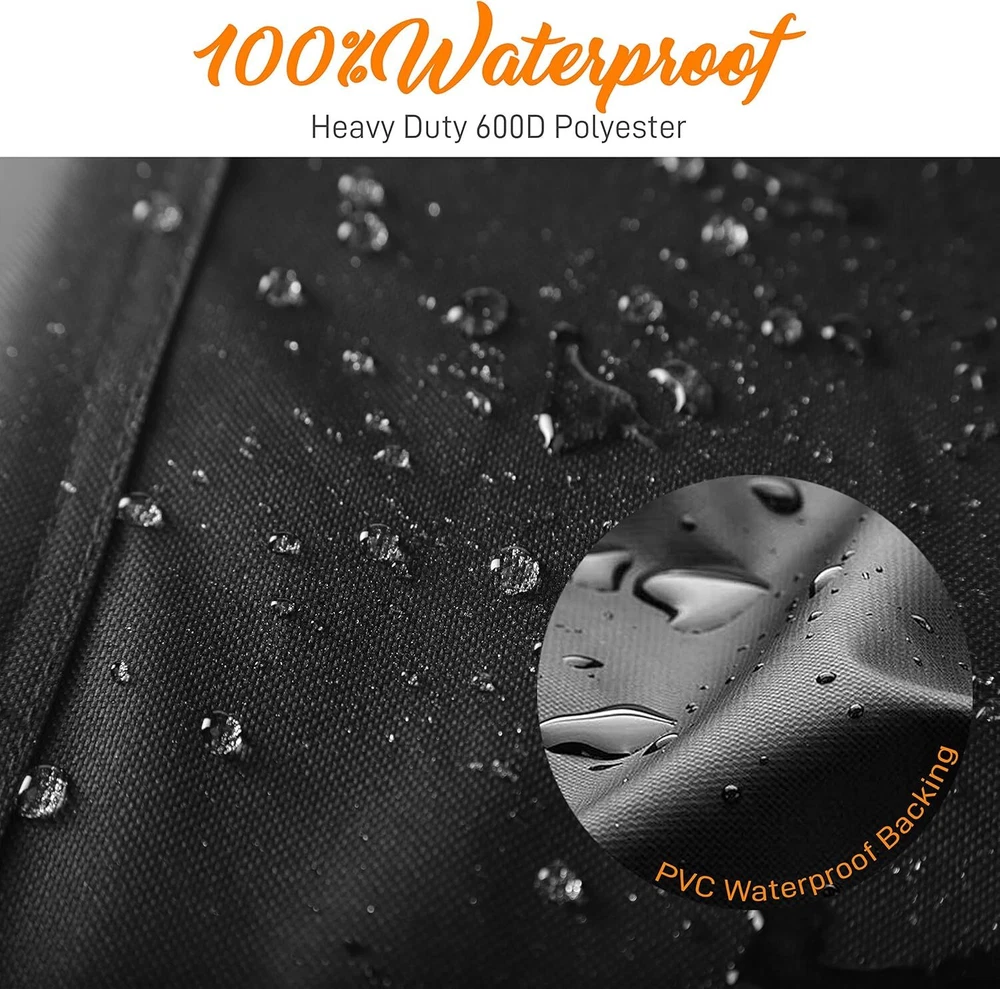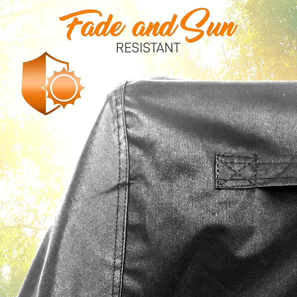 55" Heavy Duty BBQ Grill Cover Waterproof, UV Resistant, Durable Outdoor Cover Premium Construction Material : Made with heavy-duty 600D polyester and PVC backing, this grill cover is waterproof, UV-resistant, and tear-resistant, built to withstand daily use and harsh outdoor conditions. Wind-Resistant Design with Air Circulation : Features wide covered mesh vents on both sides for enhanced air circulation and fabric hook-and-loop straps for a secure, windproof fit. Durable Fabric Handles : Equipped with durable handles on both sides for easy fitting and removal in seconds. The handles also double as convenient hangers for storage. UV Protective & Fade-Resistant : The UV coating protects against sun damage and fading, ensuring the cover maintains its durability and appearance over time. Convenient Features : Includes double stitching for maximum strength, fastening Velcro straps for a snug fit, and a design that is both waterproof and weatherproof. Technical Specifications : Material : Heavy-duty 600D polyester with PVC backing. Dimensions : 55'' x 23'' x 42'' (L x W x H). What's Included : (1) Grill Cover Thank you for viewing our 55" Heavy Duty BBQ Grill Cover Waterproof, UV Resistant, Durable Outdoor Cover.