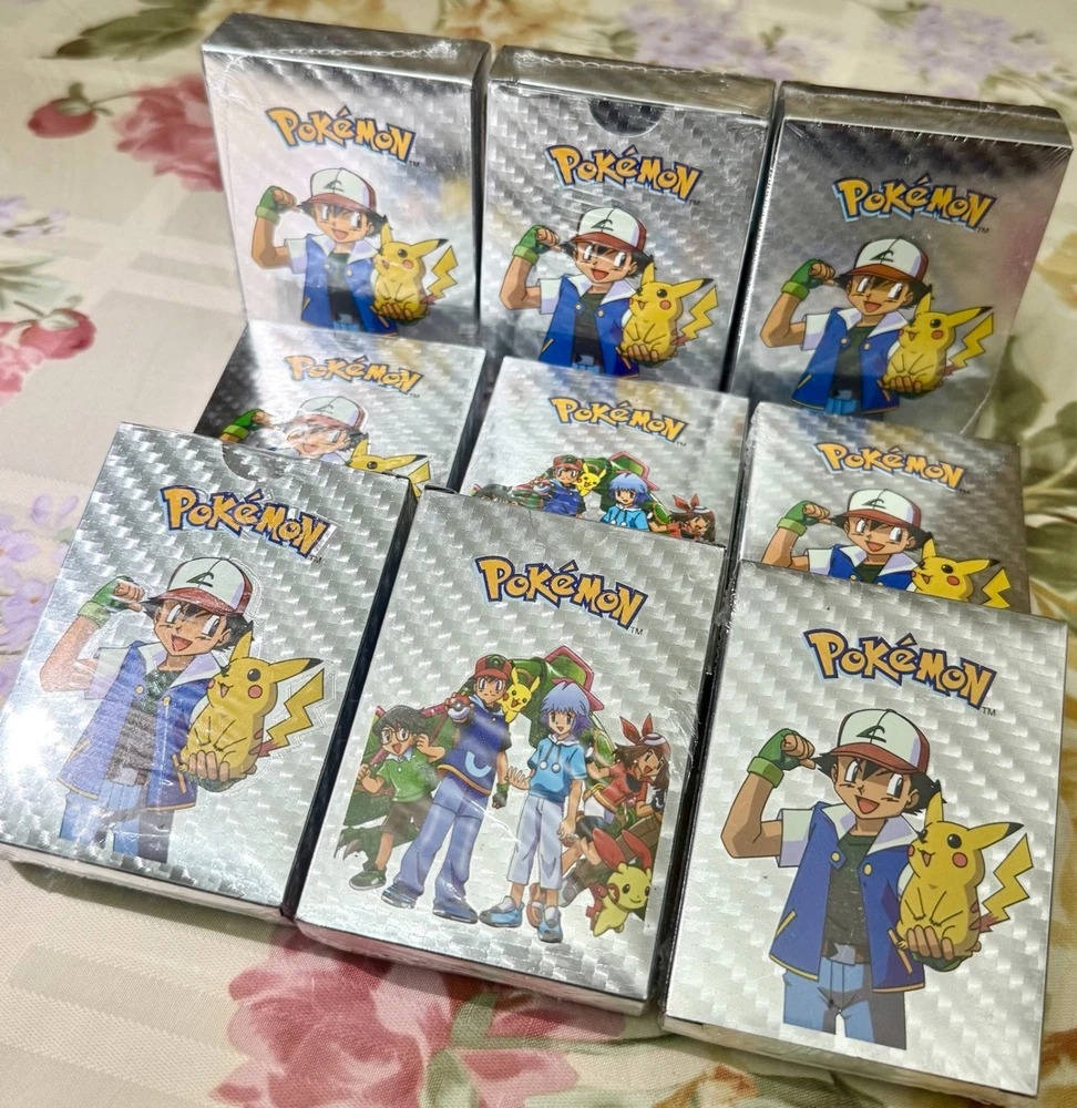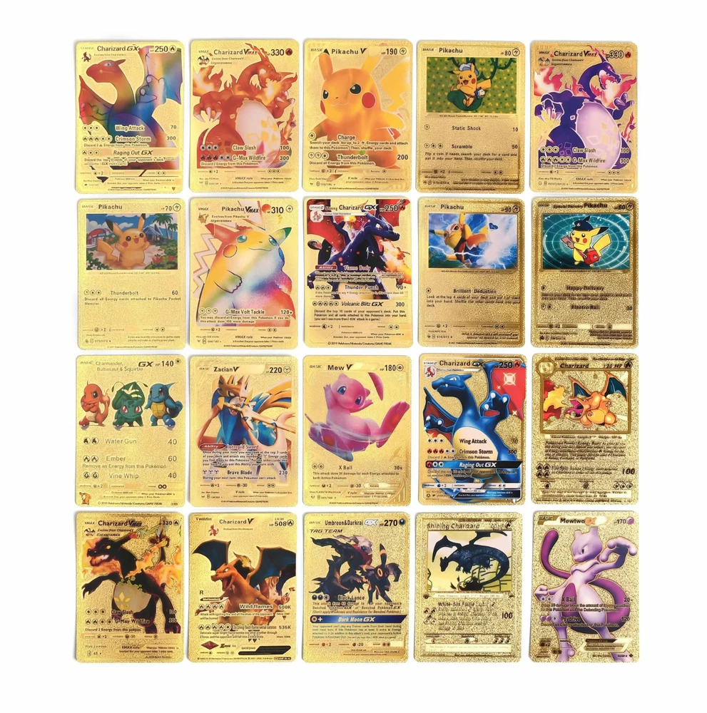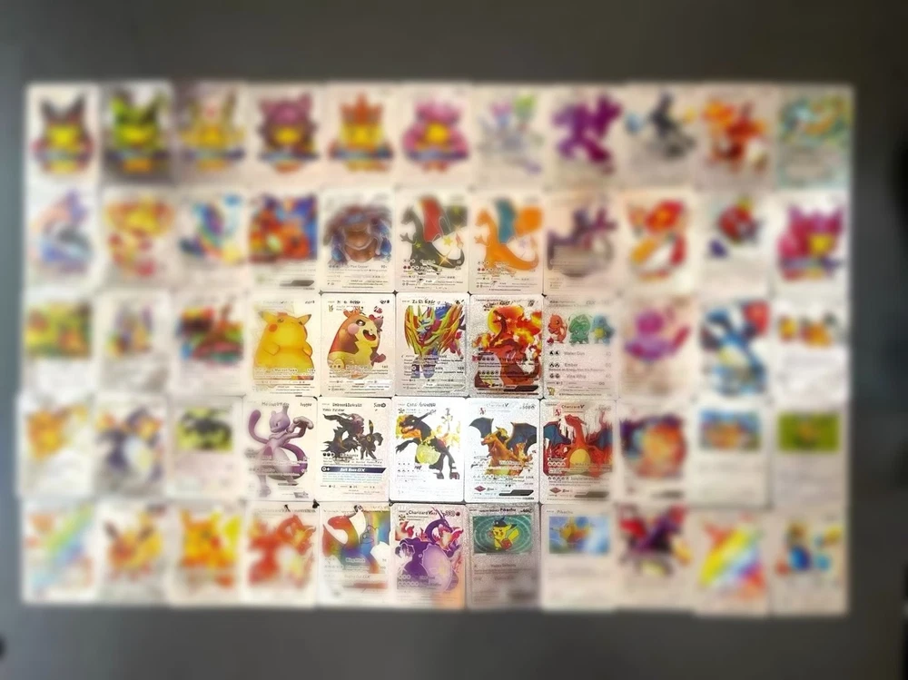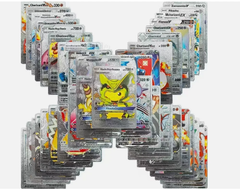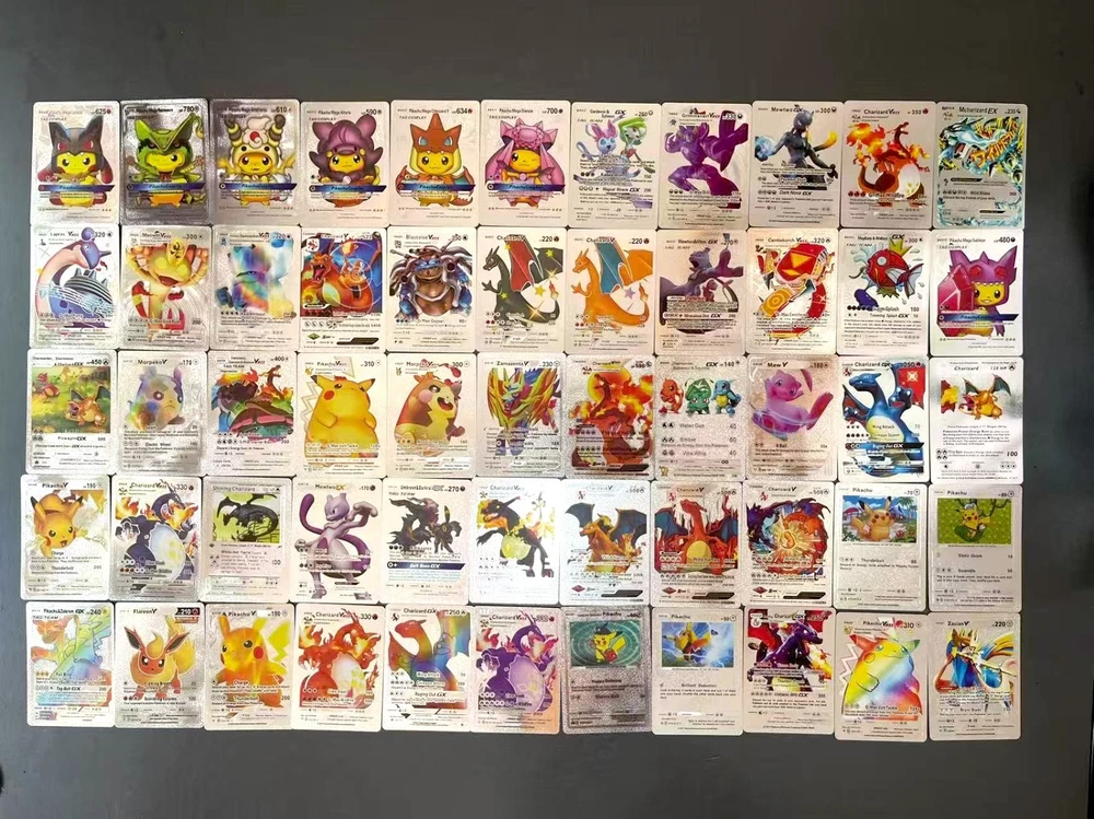 55 PCS Premium Gold Foil TCG Cards Set – VMAX, V, EX, GX Rare Trading Cards in Collector’s Deck Box – Uniquely Assorted Cards – Ideal for Kids, Fans & Collectors (Gold, Silver, Black Editions) Unleash your competitive edge or grow your trading card collection with this exclusive 55-card set crafted for collectors, casual players, and TCG enthusiasts. Each pack includes a powerful and visually stunning mix of VMAX, V Series, GX, EX, DX, and common cards—carefully selected to ensure every card is unique and no duplicates are included. Available in bold gold , sleek silver , and mysterious black-themed editions , this collection offers a perfect blend of strategy, creativity, and visual impact. Whether you're building a new deck or expanding your collection, this card set is a valuable and exciting addition to your trading card universe. ⚡ Complete 55-Card Assortment: Includes a wide range of VMAX, V Series, GX, EX, DX, and common cards with no repeated designs for a varied and exciting experience. 🎨 Three Unique Color Editions: Available in gold, silver, and black color themes, offering a premium aesthetic for display or gameplay. 🧠 Strategic & Imaginative Gameplay: Cards feature diverse characters and combat styles designed to spark creativity and enhance battle tactics. 🌟 Highly Collectible: An ideal mix of rare and standard cards makes this a standout addition to any card collection. 🎁 Gift-Ready Presentation: Comes in a beautifully designed collector’s deck box, making it a perfect gift for kids, fans, and trading card collectors alike. “All of our cards are brand new and carefully packaged, so you can buy with confidence. Though unofficial, they are highly collectible and designed to be both durable and fun—perfect for kids to play with and enjoy. Each pack comes randomized, adding an exciting surprise with every purchase!”
