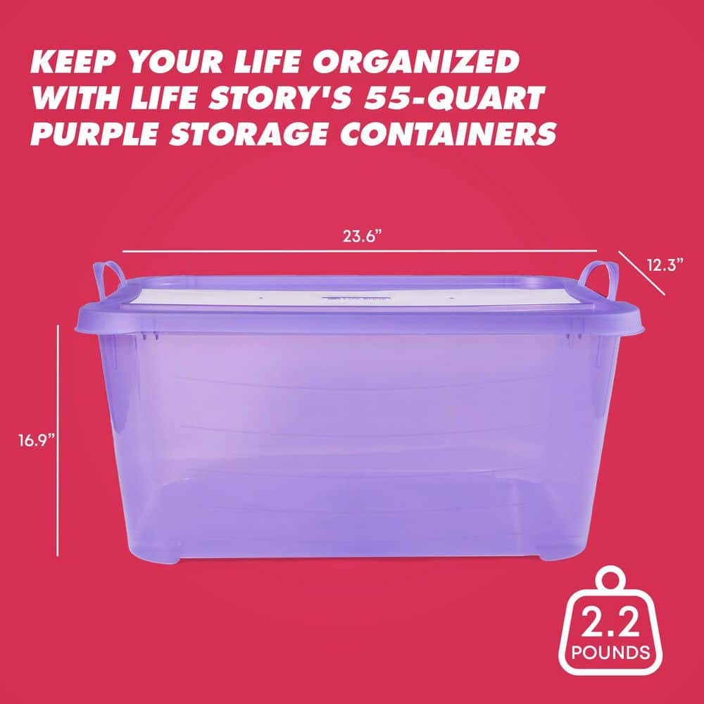 These storage bins are a game-changer for keeping my home organized! The 55-quart size is perfect for storing blankets, seasonal clothes, and holiday decorations without taking up too much space. I love how sturdy they are—the snap-locking lids keep everything secure, and the built-in handles make moving them around super easy. Plus, the stackable design saves so much room in my closet. The purple color is vibrant, and the durable plastic keeps dust out while protecting my belongings. Highly recommend for anyone needing extra storage!